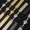 Correa de acero para reloj, correa de reloj para hombre, cadena de reloj para mujer, correa de acero de siete cuentas, hebilla de mariposa de acero inoxidable, interfaz de arco plana
