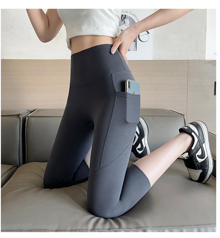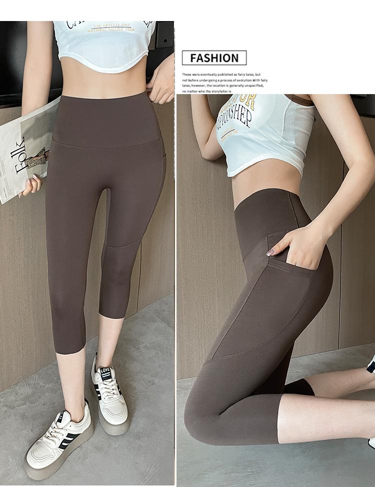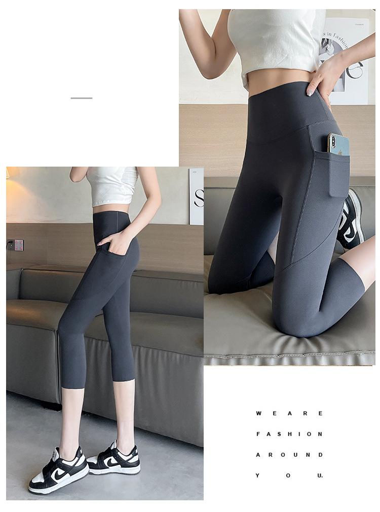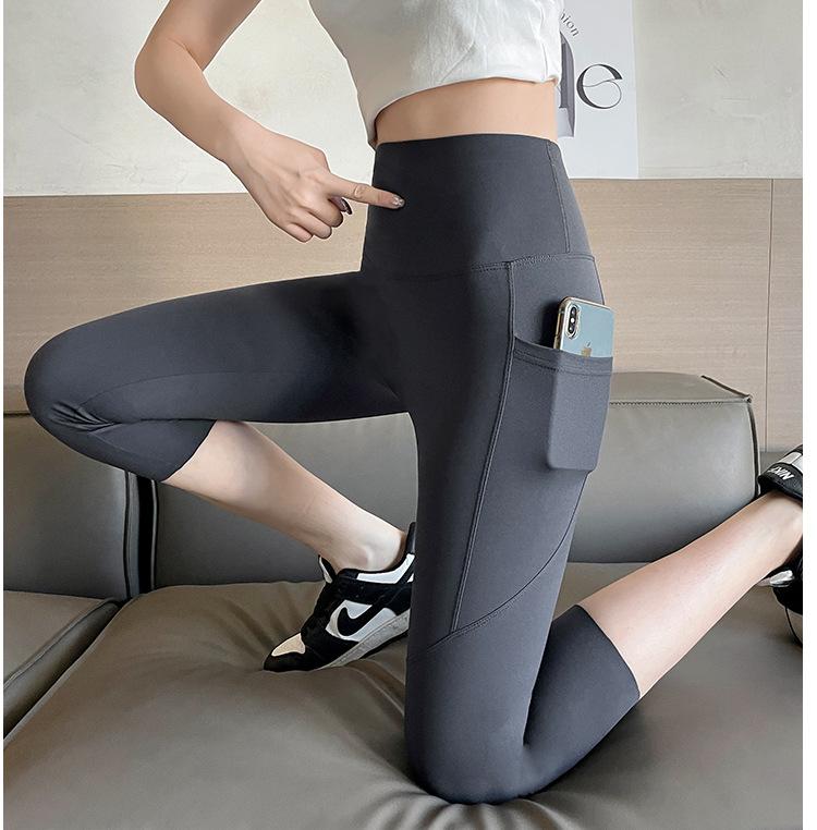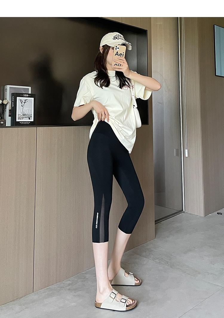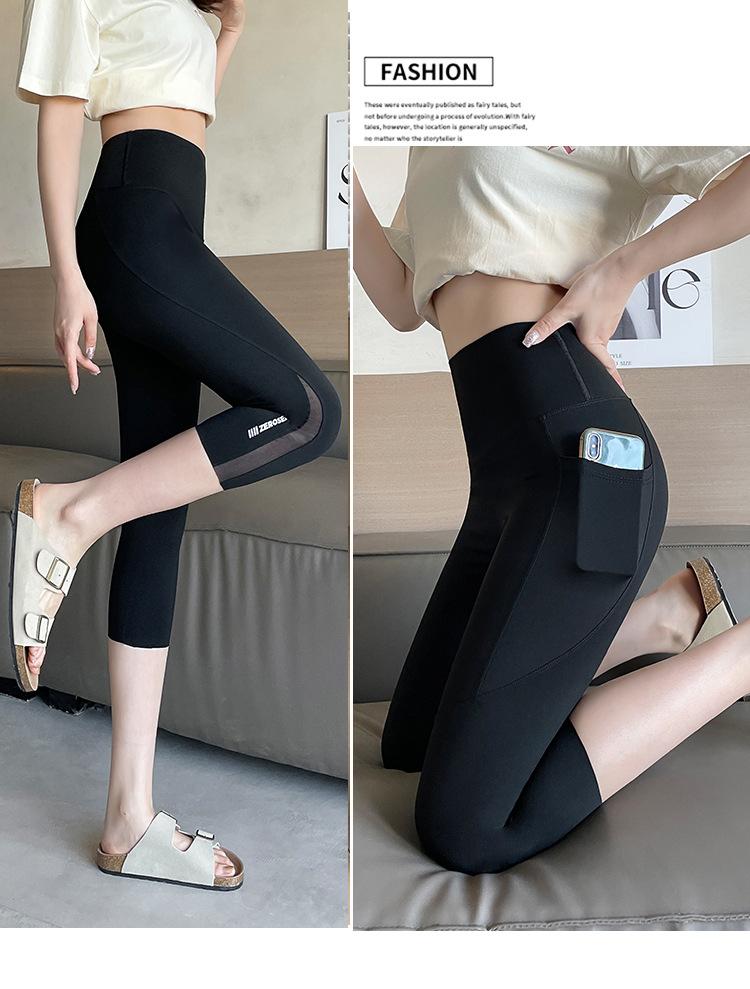 Pantalones de tiburón recortados de malla con bolsillo para mujer, ropa exterior de verano, leggings finos que levantan el vientre, pantalones de yoga elásticos tipo Barbie