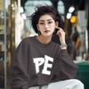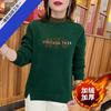 Sudadera de mujer gruesa con forro polar para otoño e invierno, cálida, de moda, con letras, cuello alto, estampada, cuello redondo, manga larga, versátil, para mujer