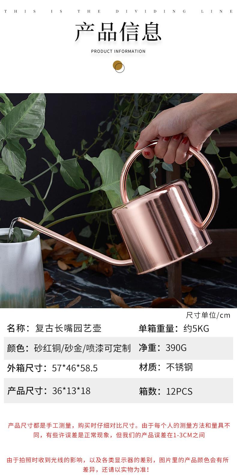 Regadera Nórdica de Acero Inoxidable para Jardinería Doméstica e Irrigación de Plantas Verdes 1.2L Regadera Creativa con Boquilla Curvada Venta al Mayoreo