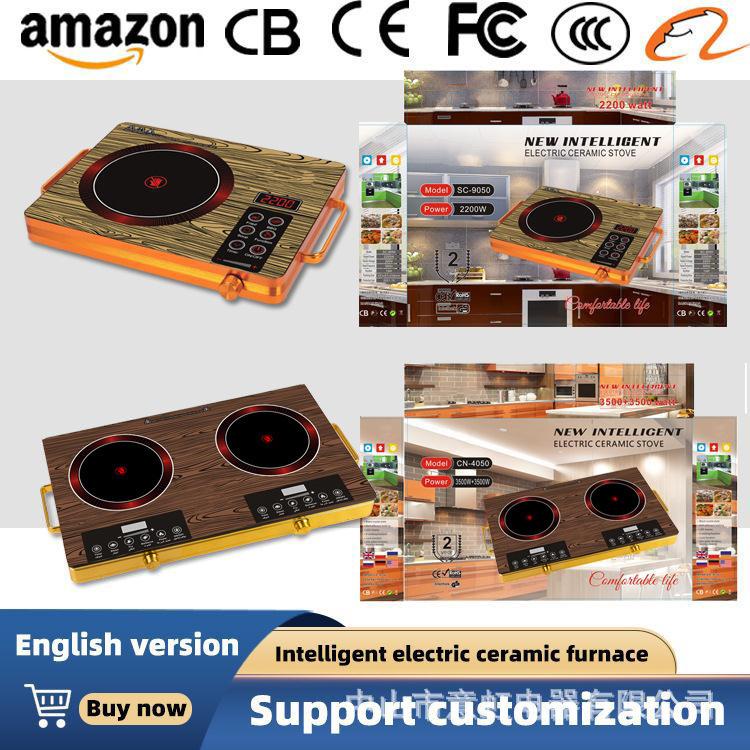 Estufa eléctrica doble inteligente para el hogar, de alta potencia, para saltear, con ondas de luz, de bajo consumo, vitrocerámica eléctrica, cocina de inducción
