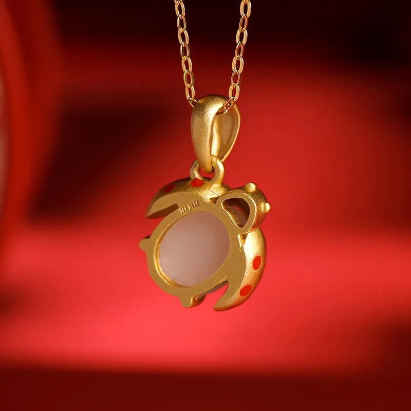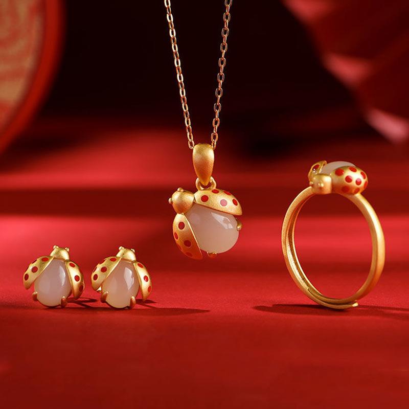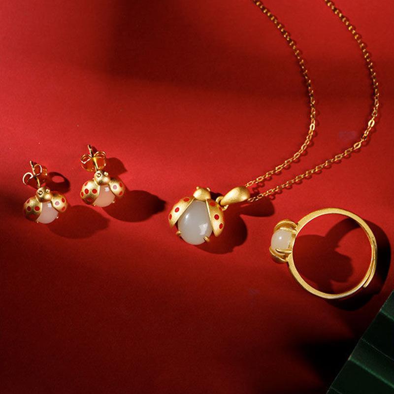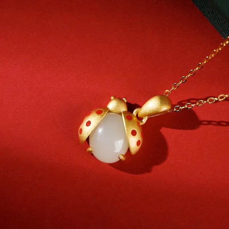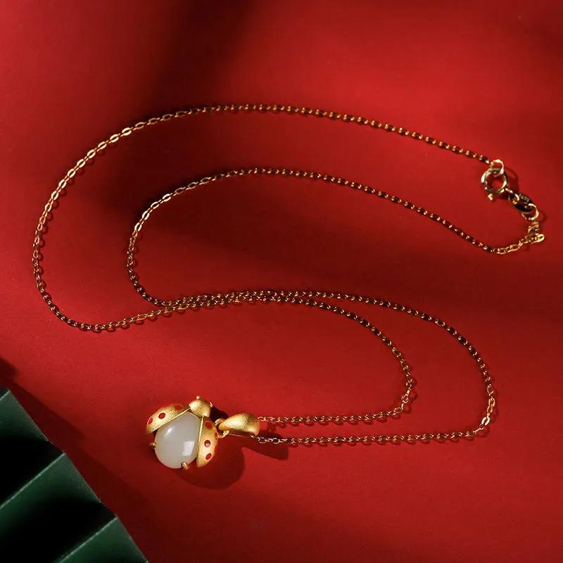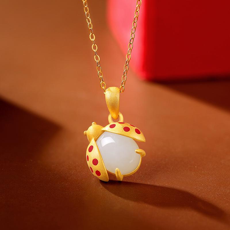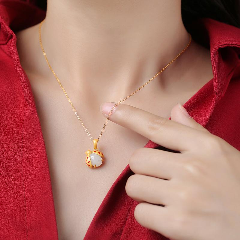 Collar con colgante de jade Hetian de imitación natural de mariquita de siete estrellas para mujer, joyería de moda para novia