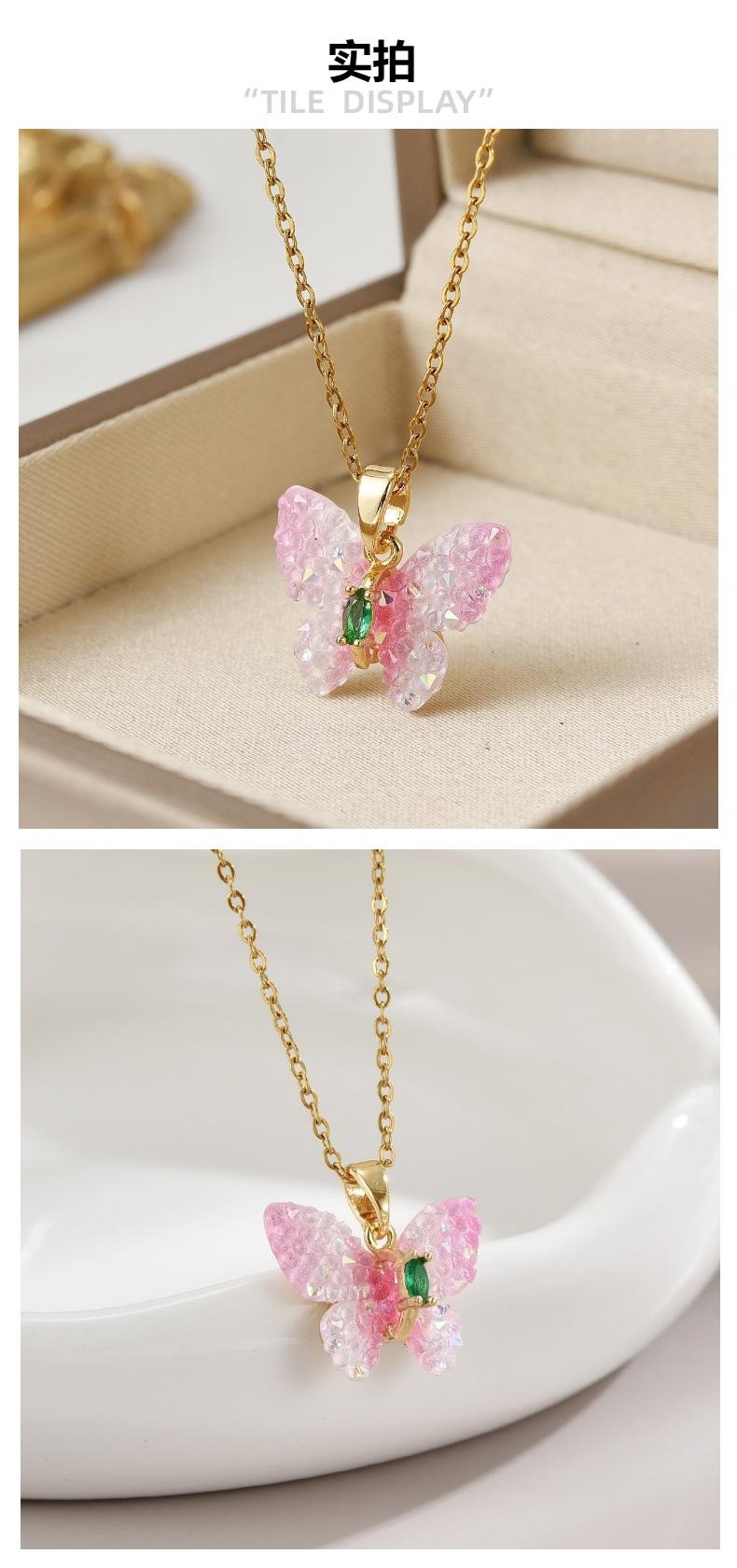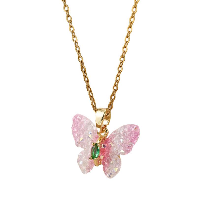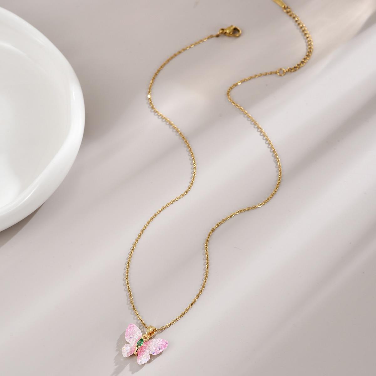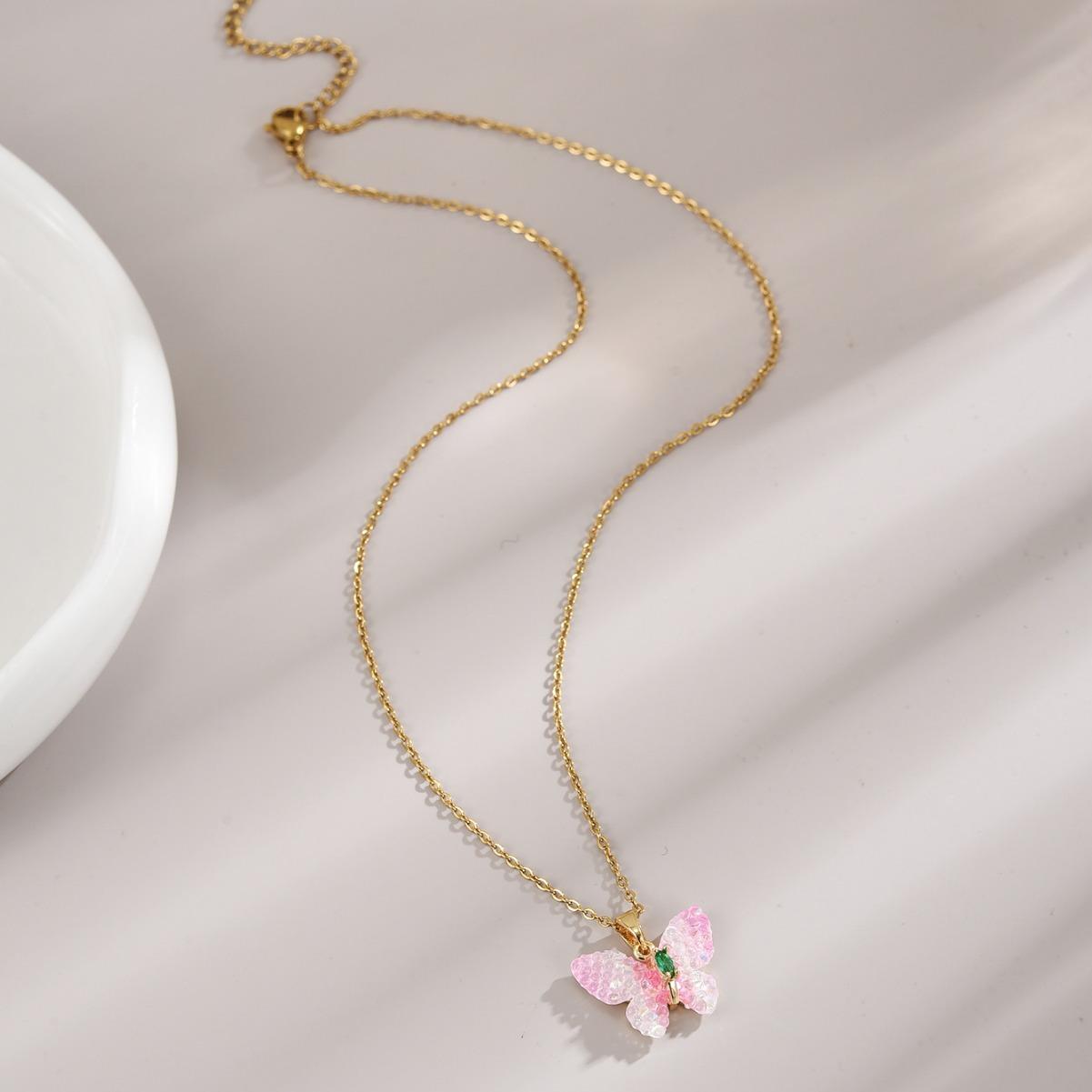 Cadena clavicular de acero de titanio con colgante de mariposa de circonita colorida, moda femenina para combinar con todo, joyería de alta gama, accesorios de Yiwu