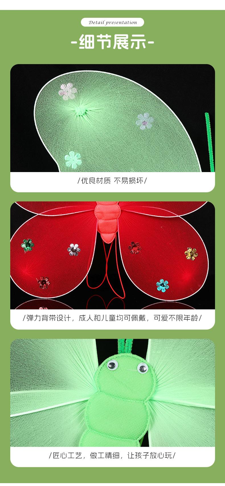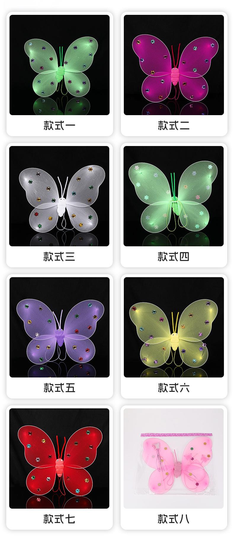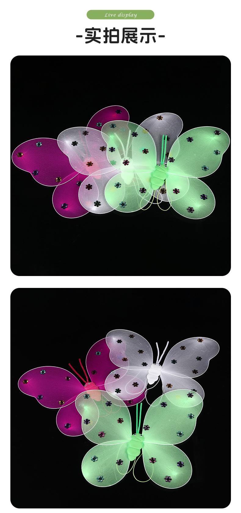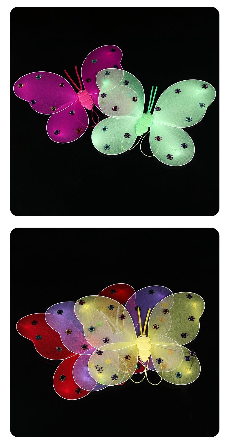 Alas de mariposa luminosas para niños, decoración de espalda de ángel para fiesta transfronteriza, alas de elfo coloridas de doble capa, accesorios