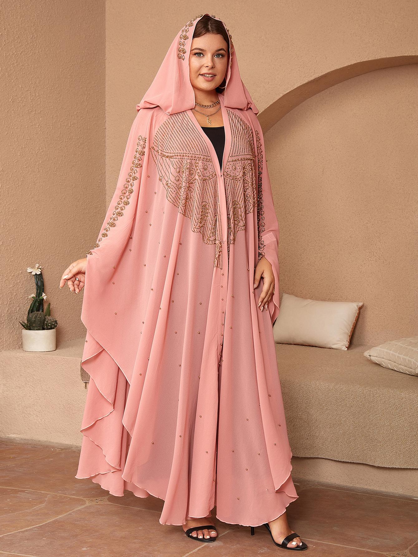 Transfronterizo Medio Oriente Dubái Camiseta Holgada de Murciélago con Capucha y Cuentas de Pedrería Chal Burka Bata Musulmana Ropa de Mujer de Comercio Exterior