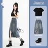 Falda vaquera versátil para mujer, falda midi, nuevo resorte y verano 2025, cintura alta, adelgazante, deshilachada, línea A, falda ajustada a la cadera