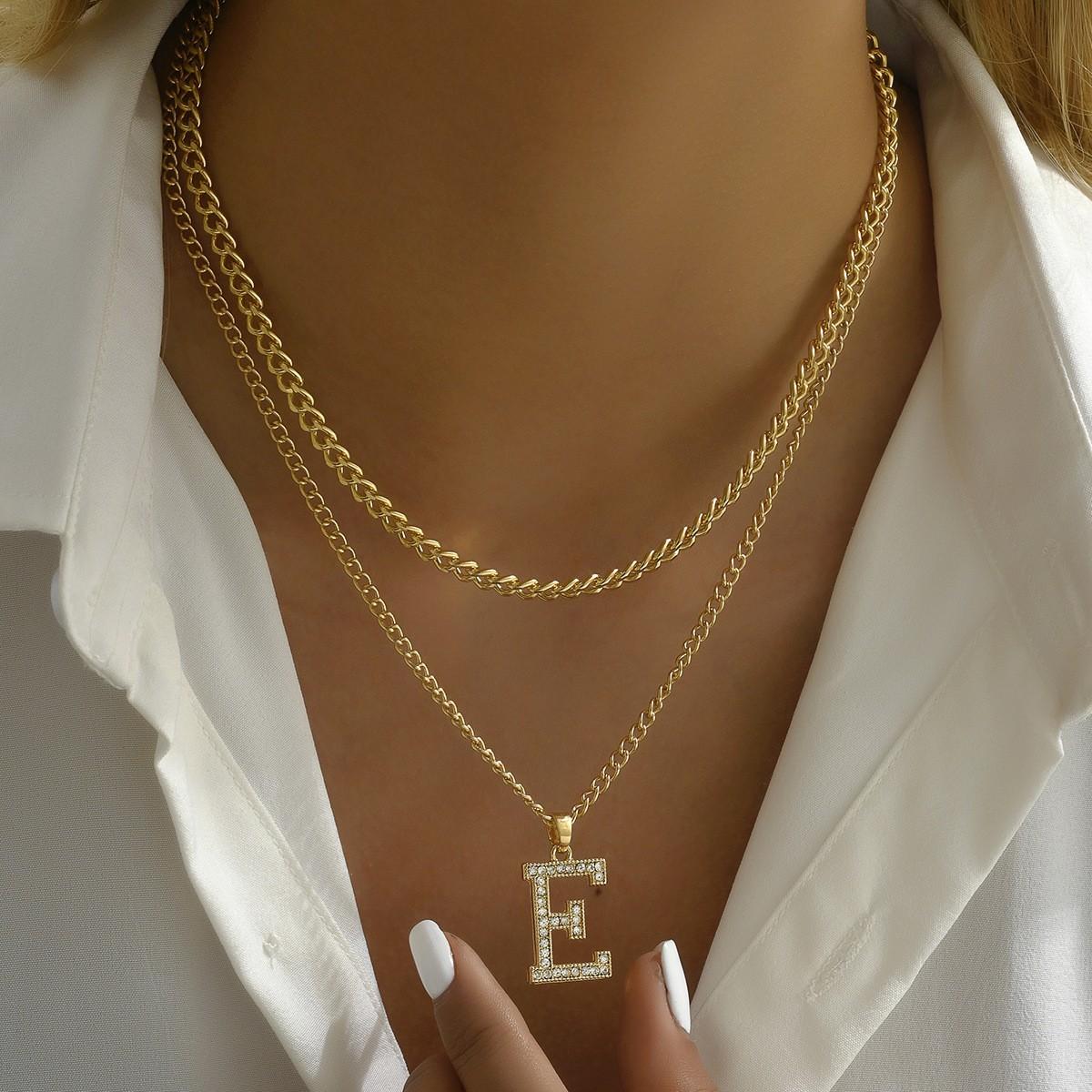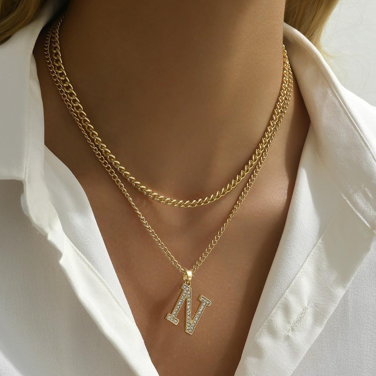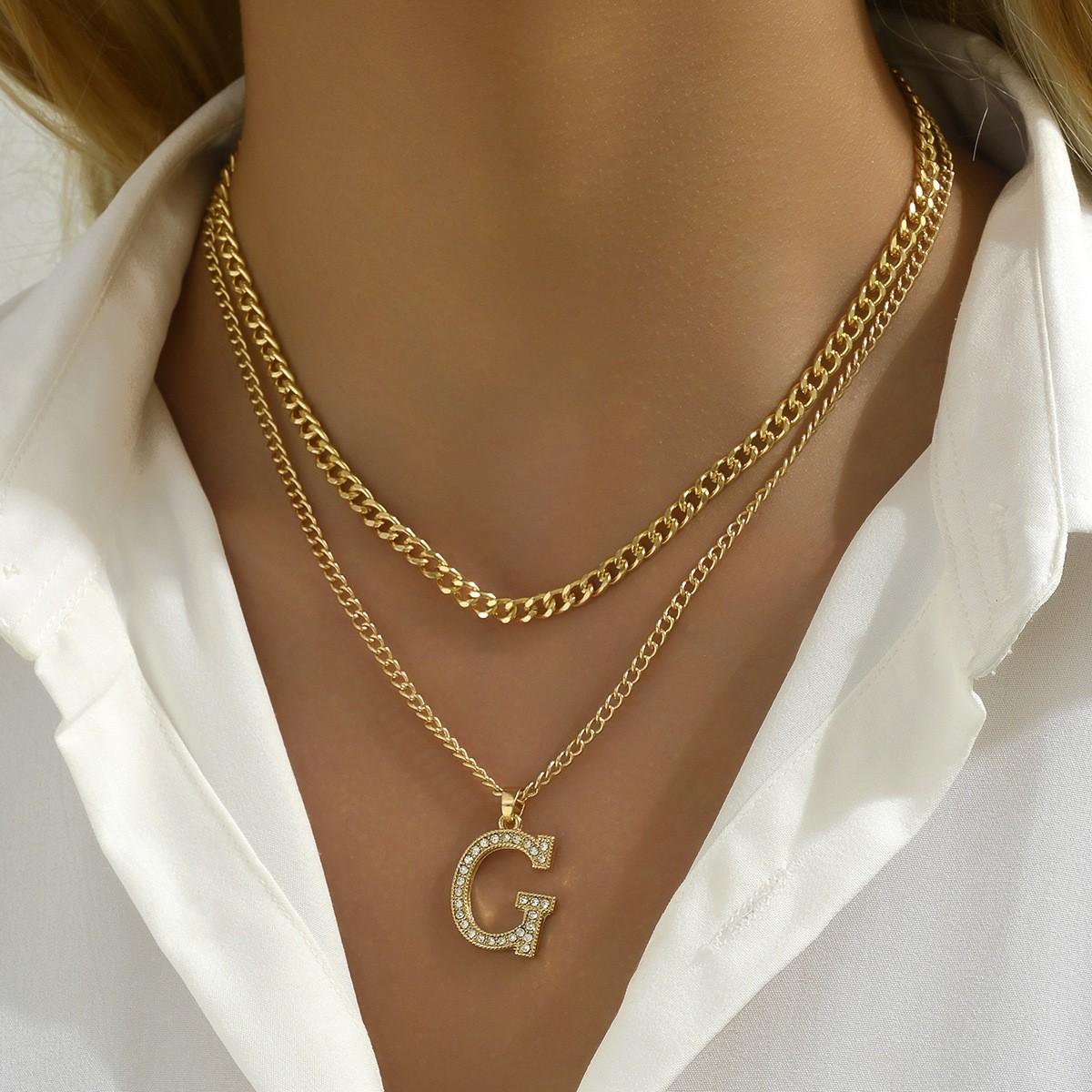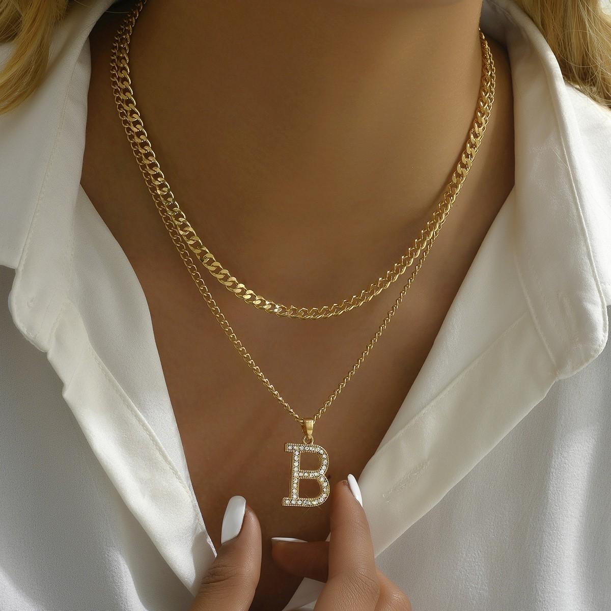 Collar Retro de Cadena de Aleación Transfronterizo Europeo y Americano con Letra Inglesa y Pedrería para Mujer Lujo Ligero Europeo y Americano Moda Exagerada Mujer