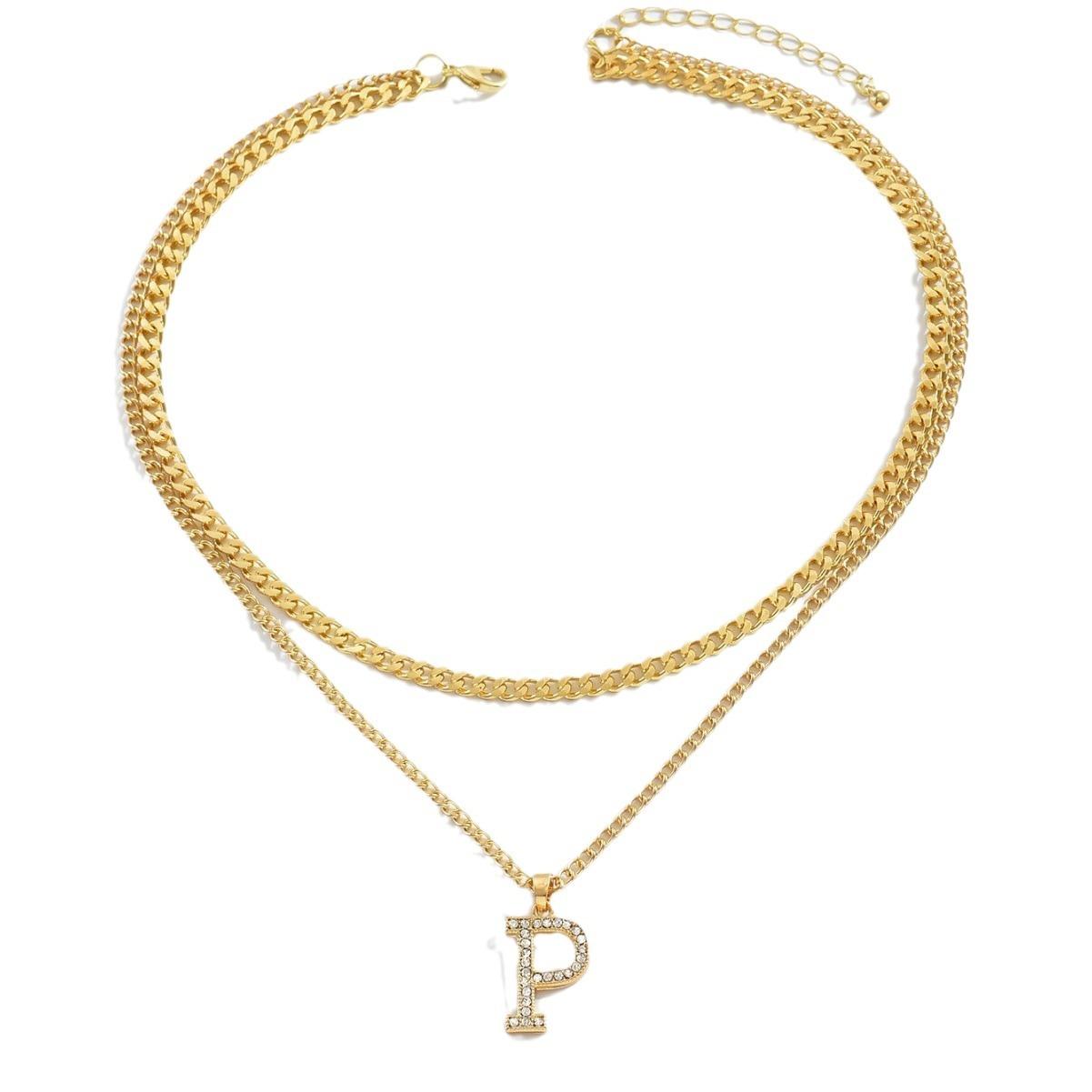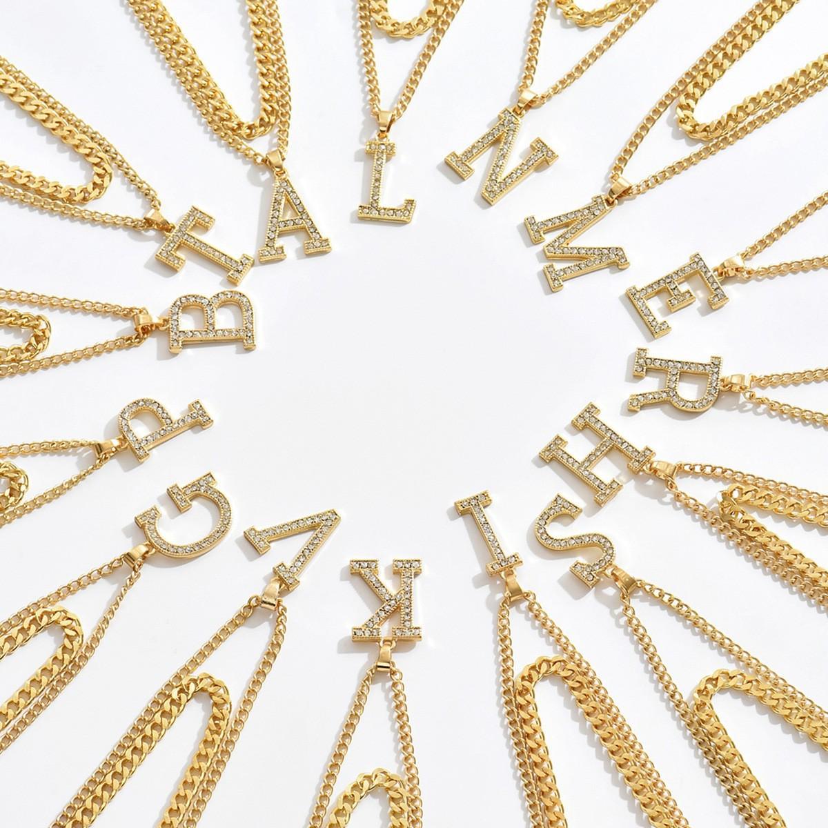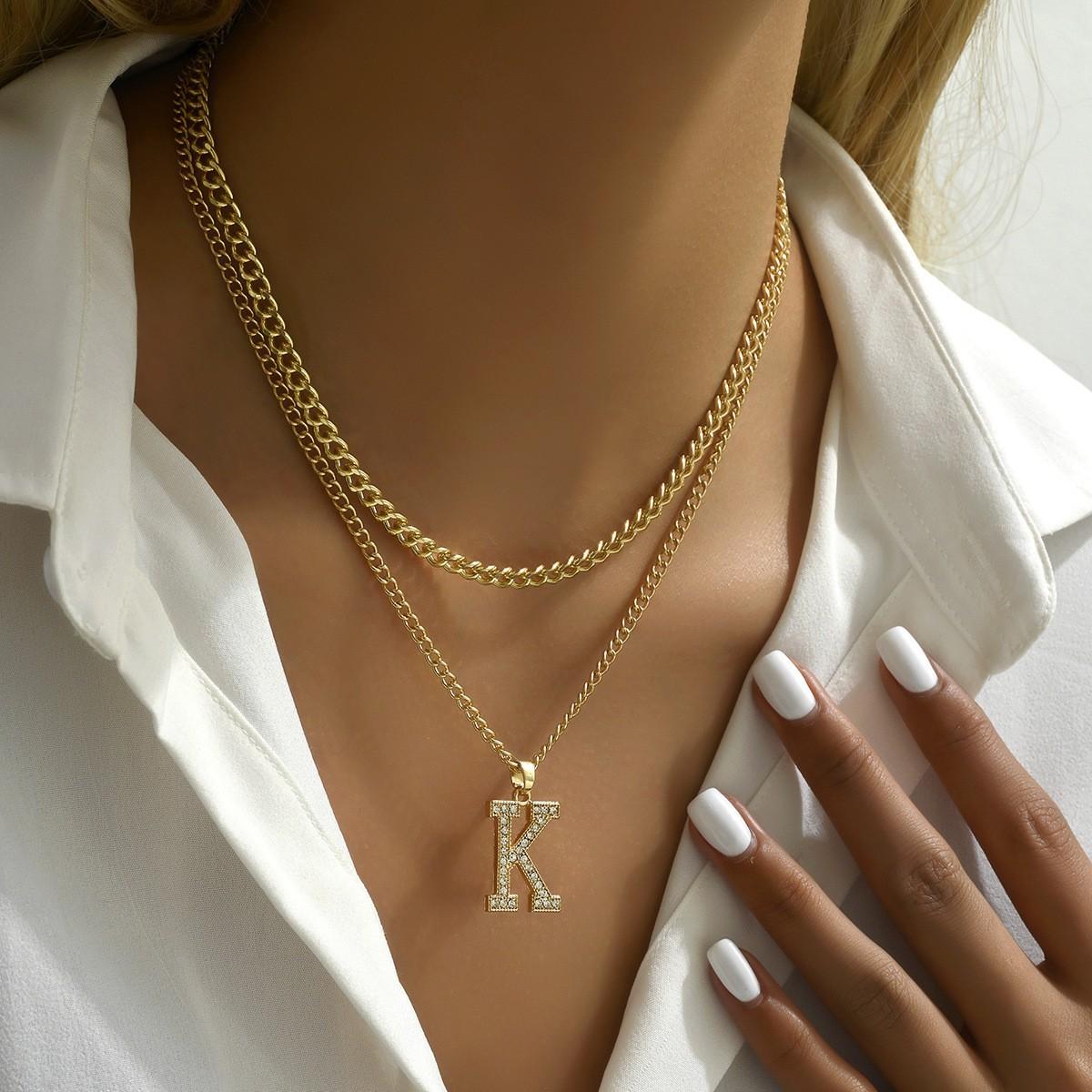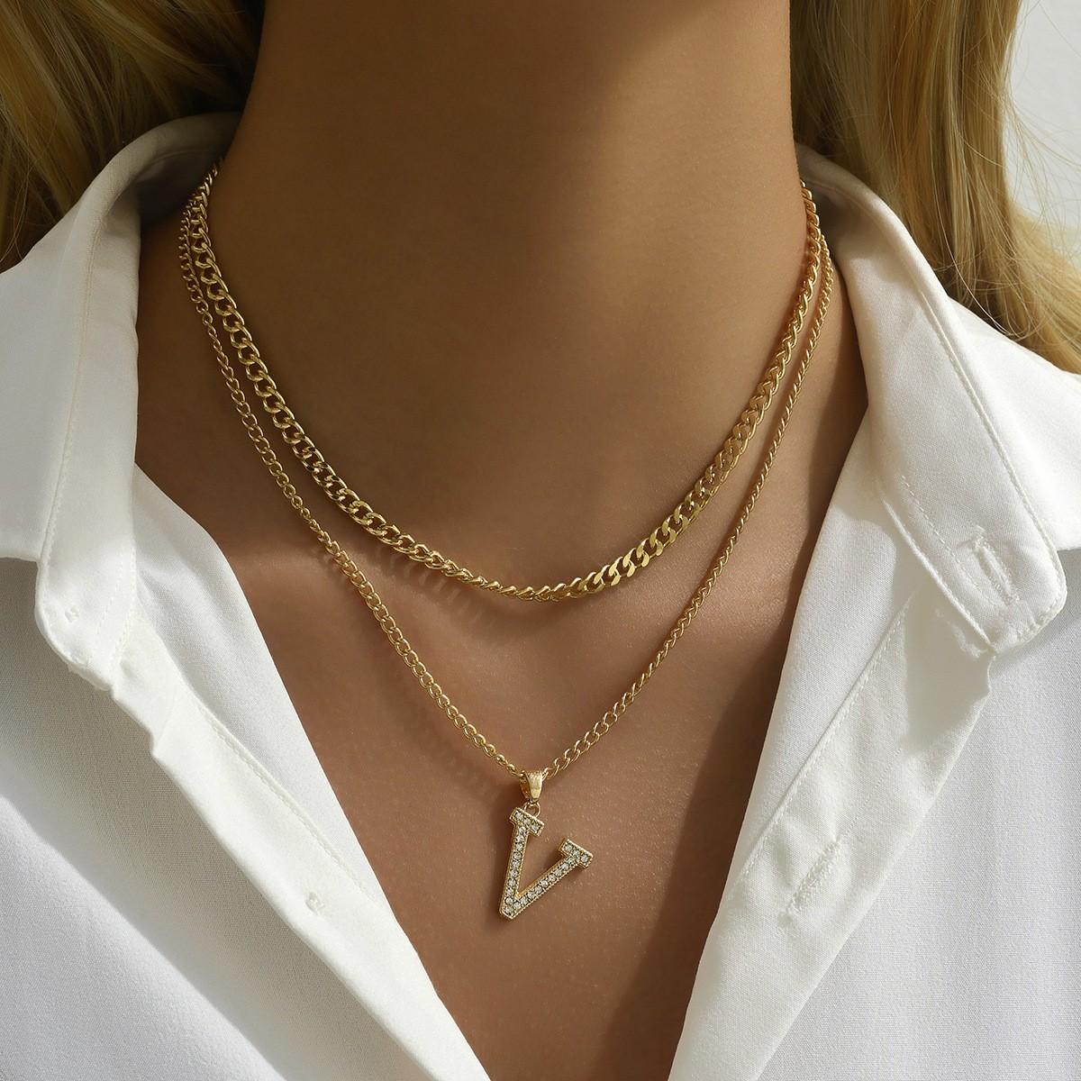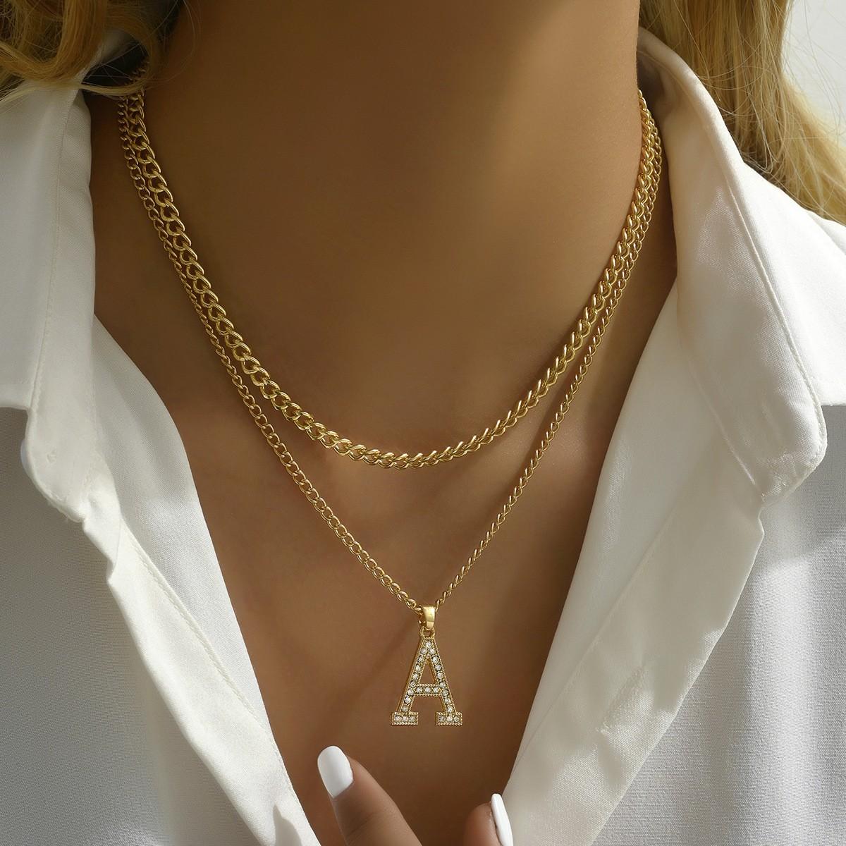 Collar Retro de Cadena de Aleación Transfronterizo Europeo y Americano con Letra Inglesa y Pedrería para Mujer Lujo Ligero Europeo y Americano Moda Exagerada Mujer