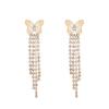 Pendientes de borlas con cadena exagerada de diamantes de lujo ligeros europeos y americanos, pendientes de diamantes de imitación de amor con temperamento femenino, pendientes rojos de red al por mayor