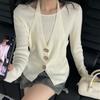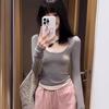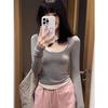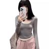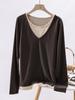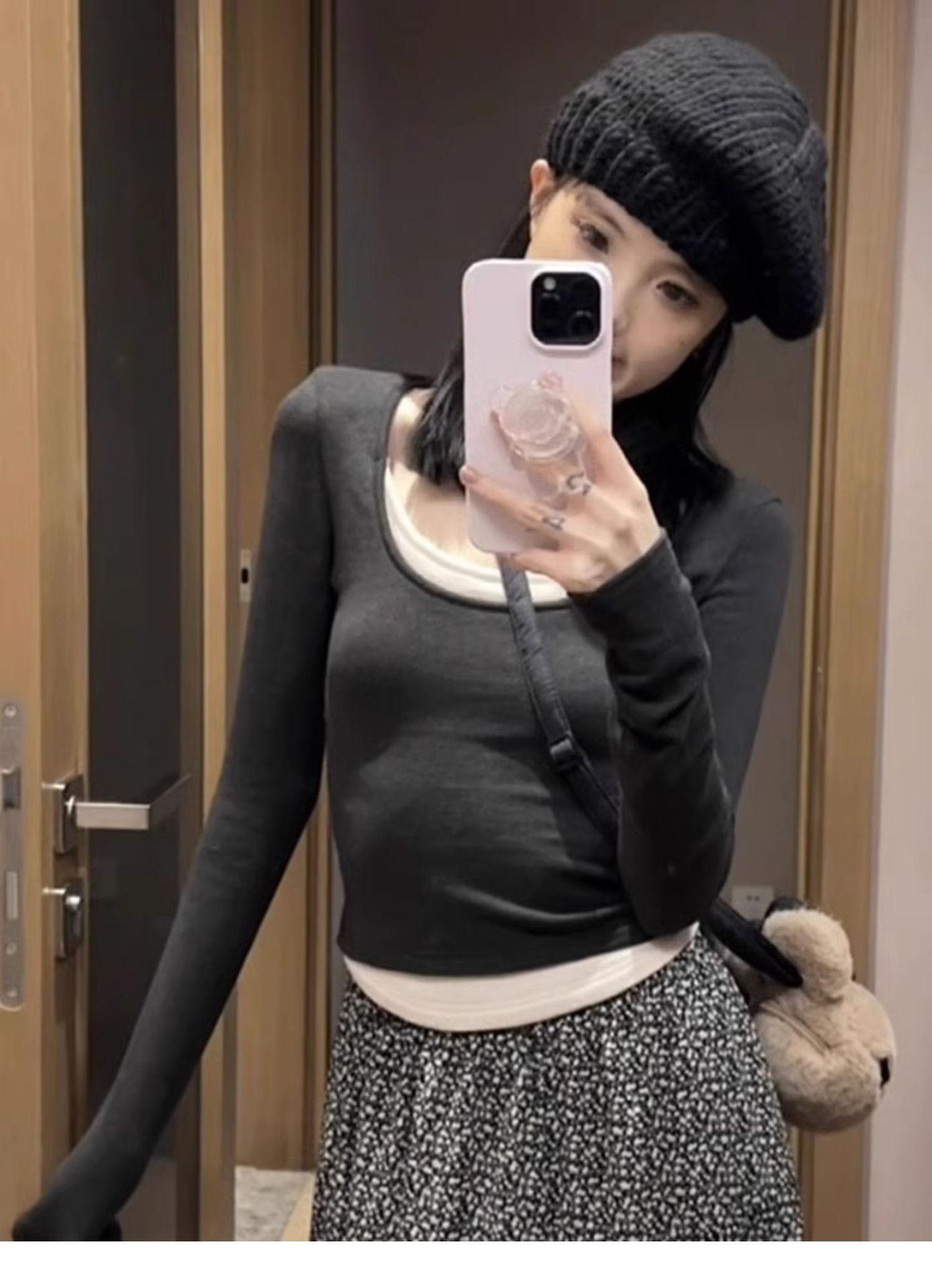 Camiseta de manga larga apilada de dos piezas con contraste de color falso para mujer, primavera y otoño, estilo coreano, diseño adelgazante ajustado, base interior Sense, parte superior de moda