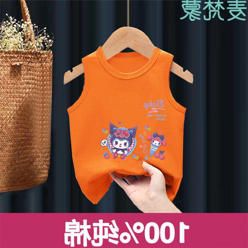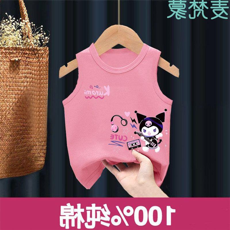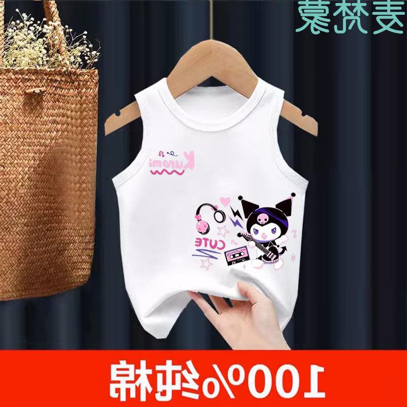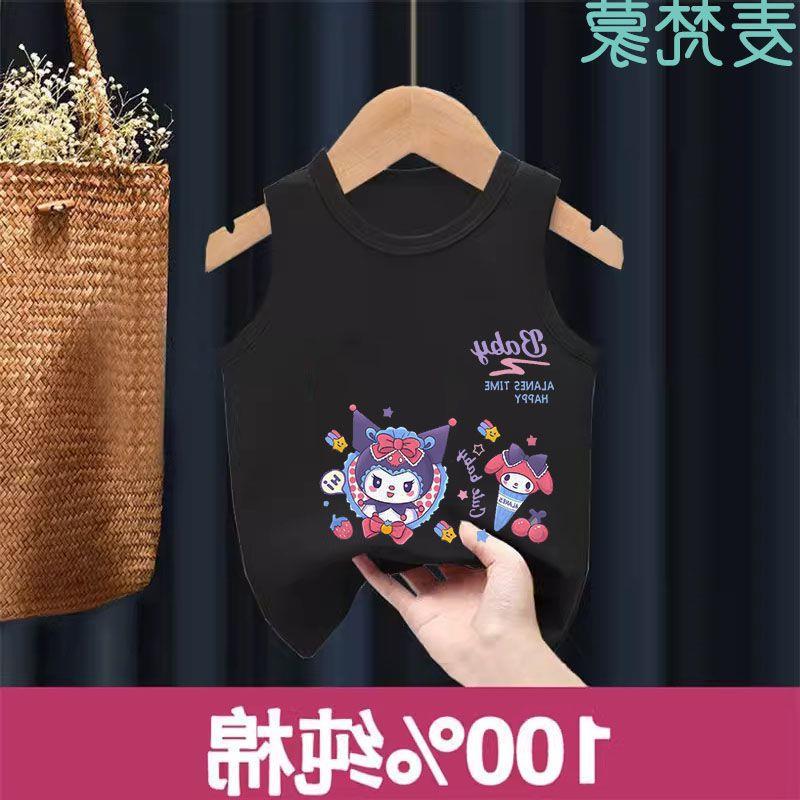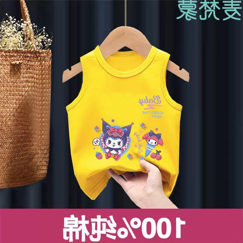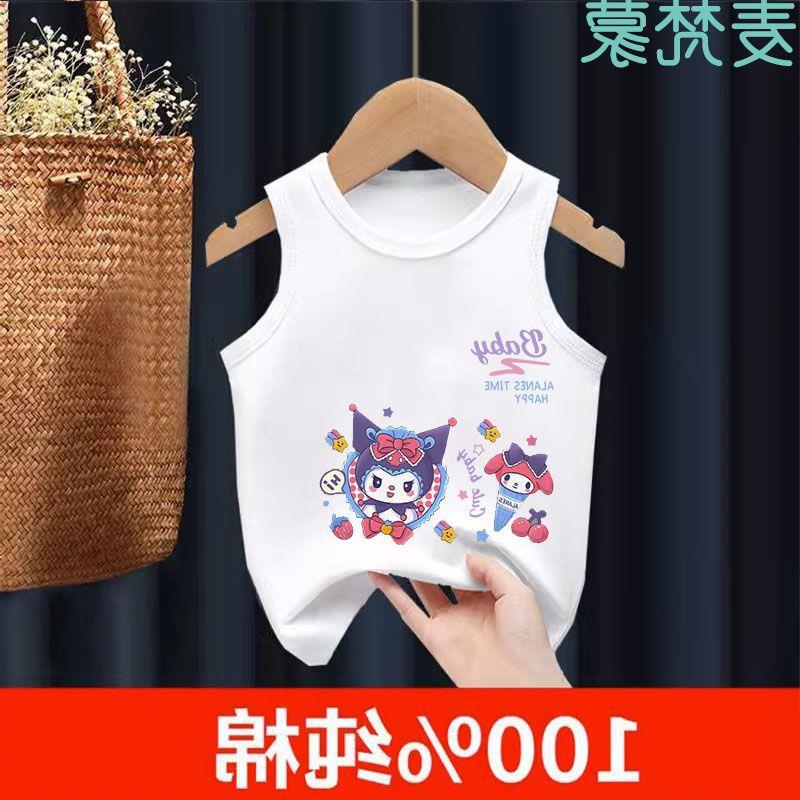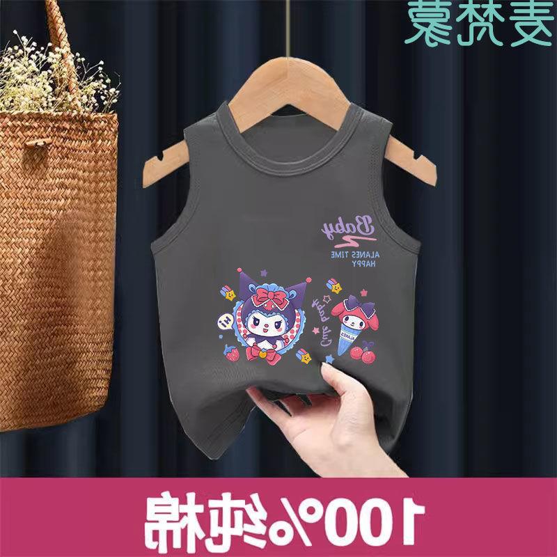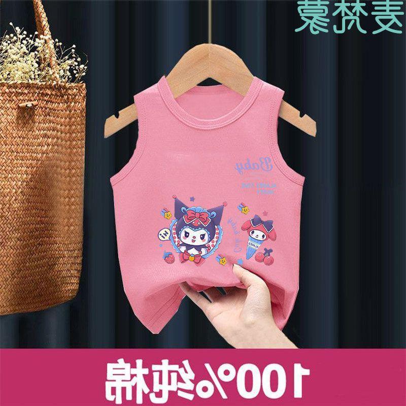 Chaleco de algodón para niños, camiseta sin mangas Sanrio para niñas, de verano, fino, transpirable, para niños grandes y pequeños.
