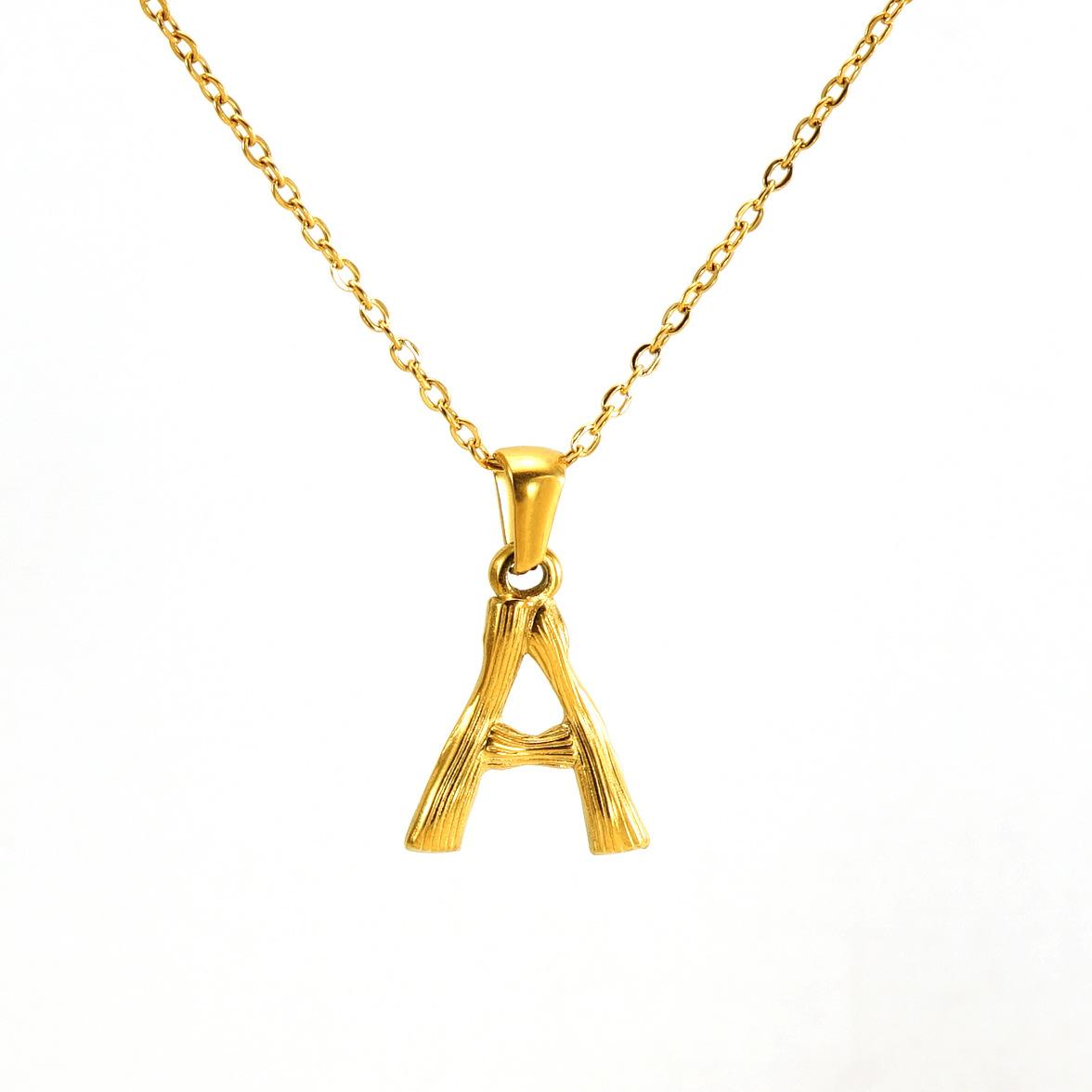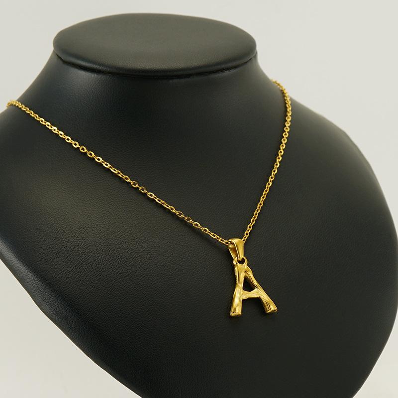 2024 nuevo collar con colgante de letra de bambú transfronterizo temperamento estilo europeo y americano collar de acero inoxidable con 26 letras inglesas