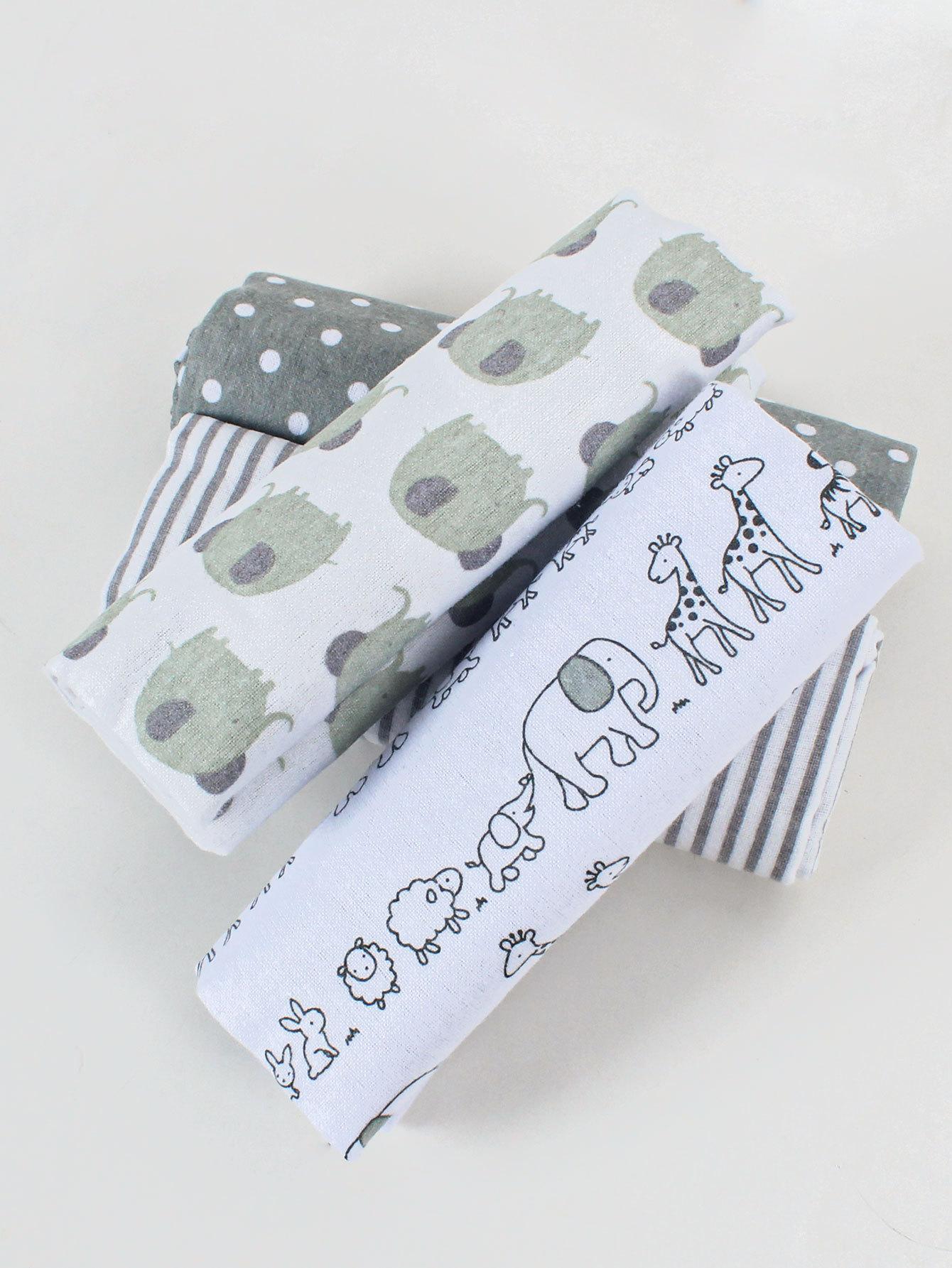 Toalla Envolvente para Bebé Franela Envoltorio Recién Nacido Paño Envolvente Manta Estampada de Cuatro Piezas Suministros para Bebé Suministro Transfronterizo