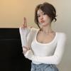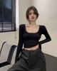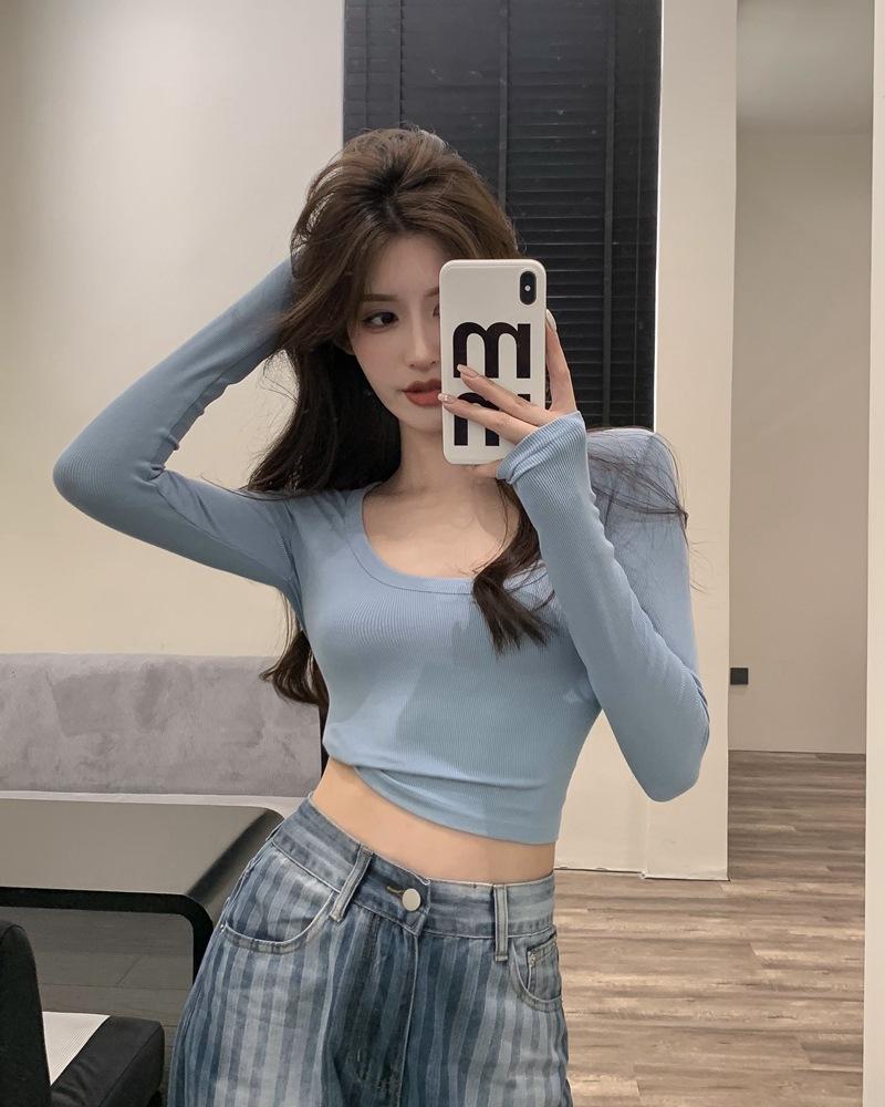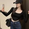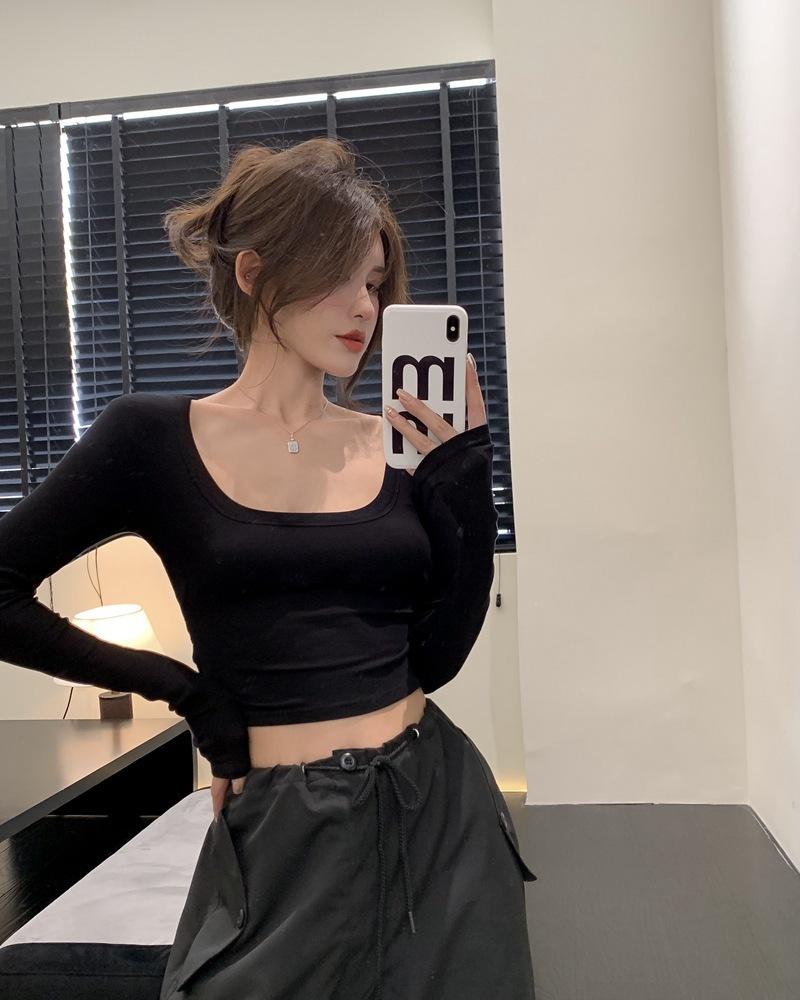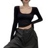 Camiseta estilo puro deseo dulce y picante, corte entallado, diseño de manga larga, camiseta básica, top corto para chica sexy con ombligo, top de estudiante para mujer de principios de otoño