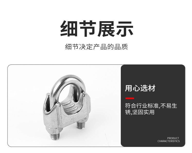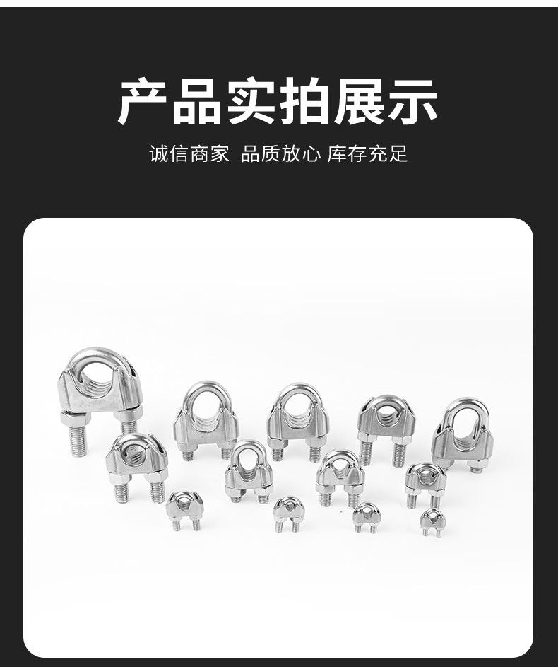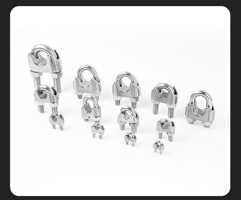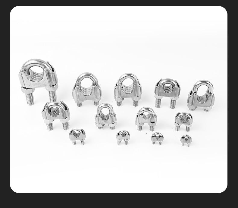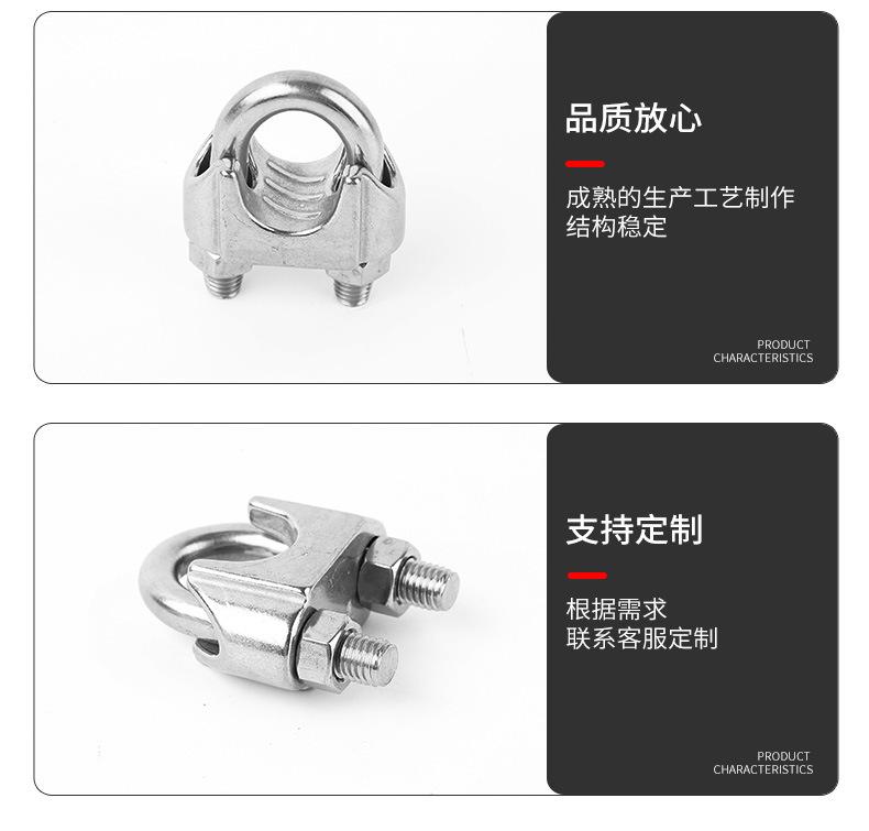 Abrazadera de cable de acero inoxidable 304 con bloqueo de mandril, abrazadera de cable con clip, cabezal rodante, abrazadera en forma de U, fabricante de abrazaderas de alambre