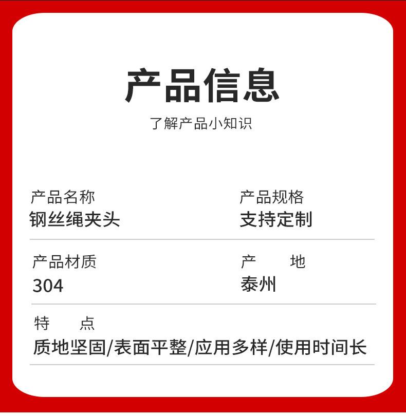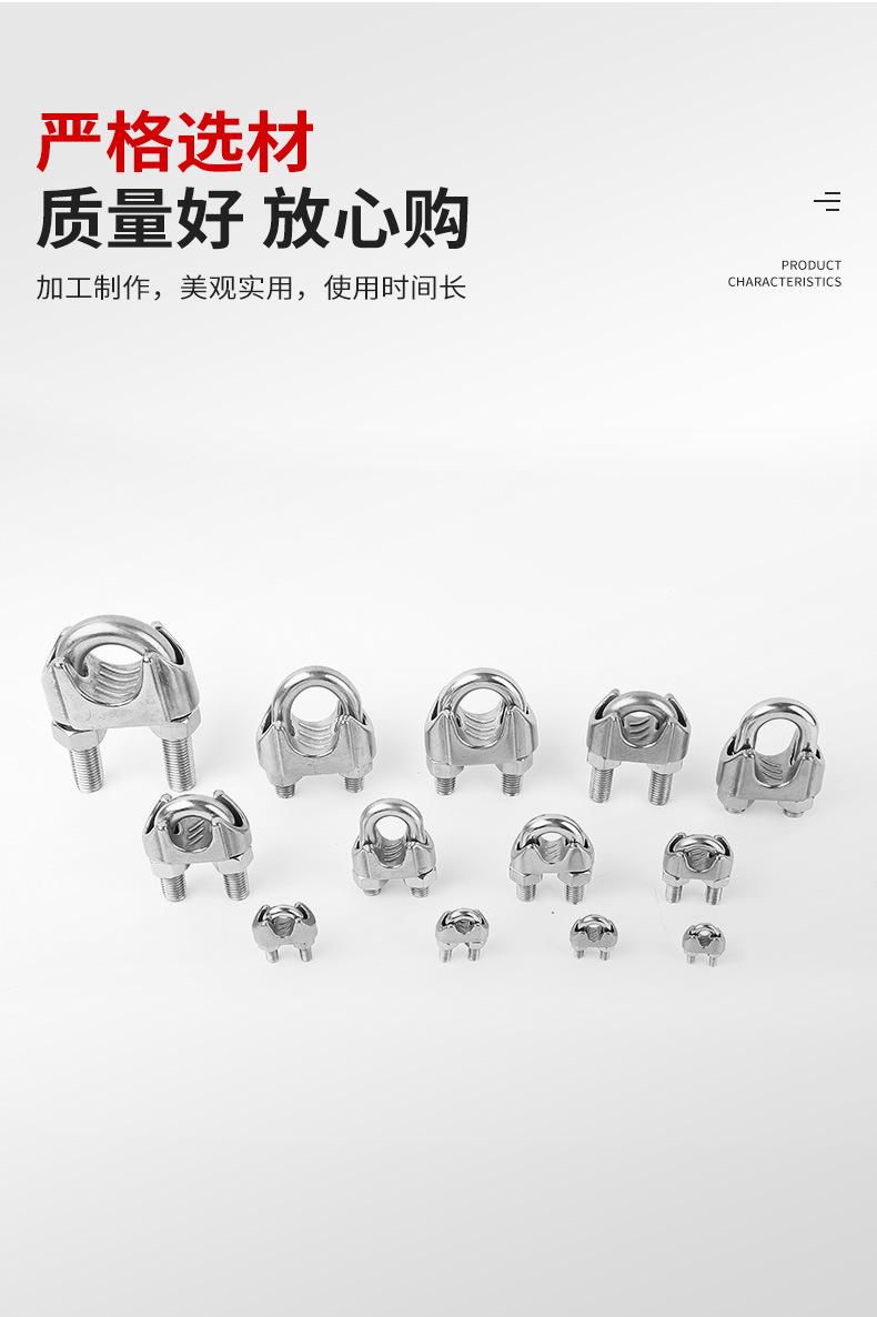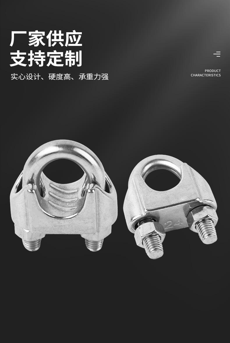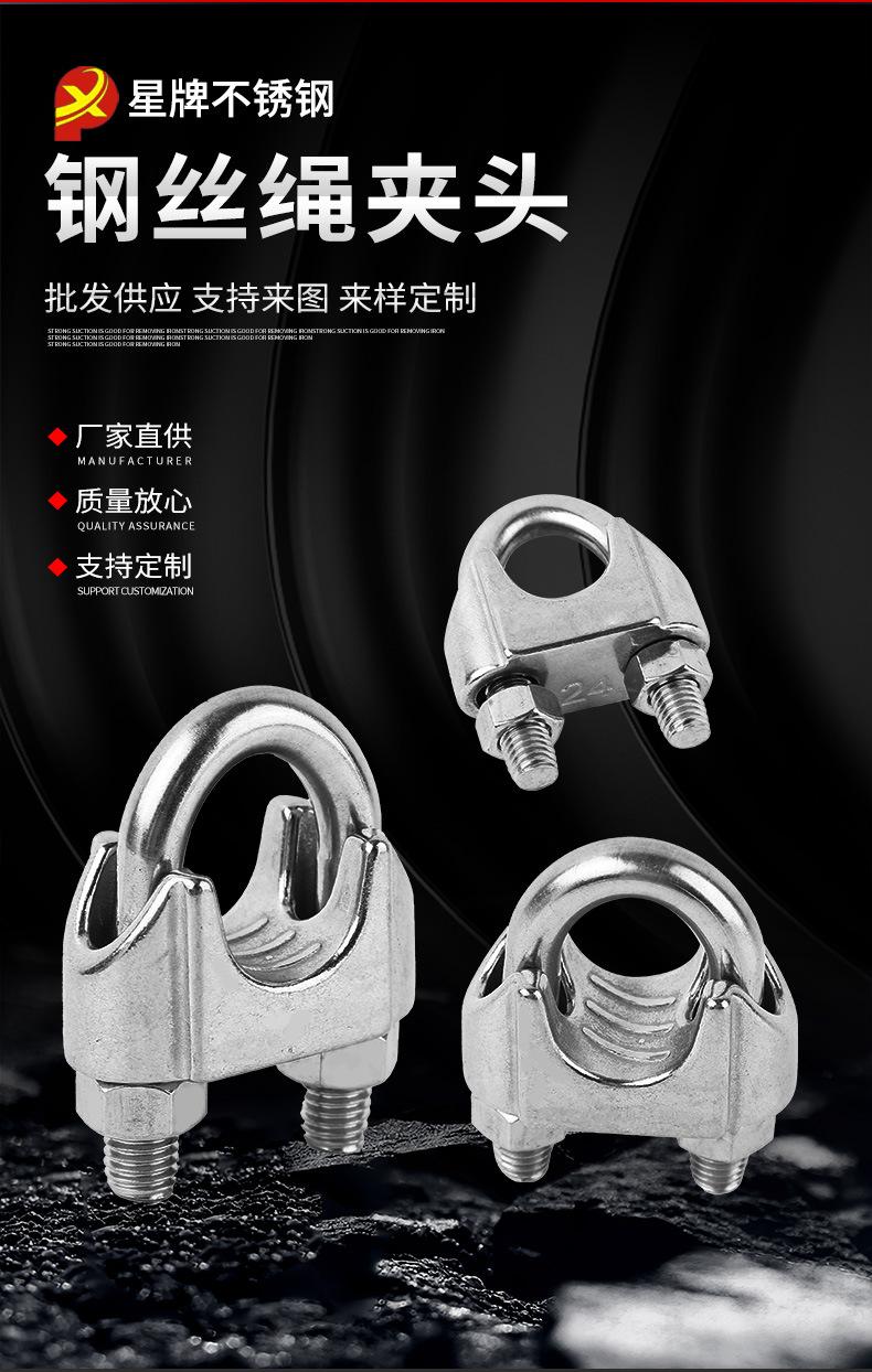 Abrazadera de cable de acero inoxidable 304 con bloqueo de mandril, abrazadera de cable con clip, cabezal rodante, abrazadera en forma de U, fabricante de abrazaderas de alambre