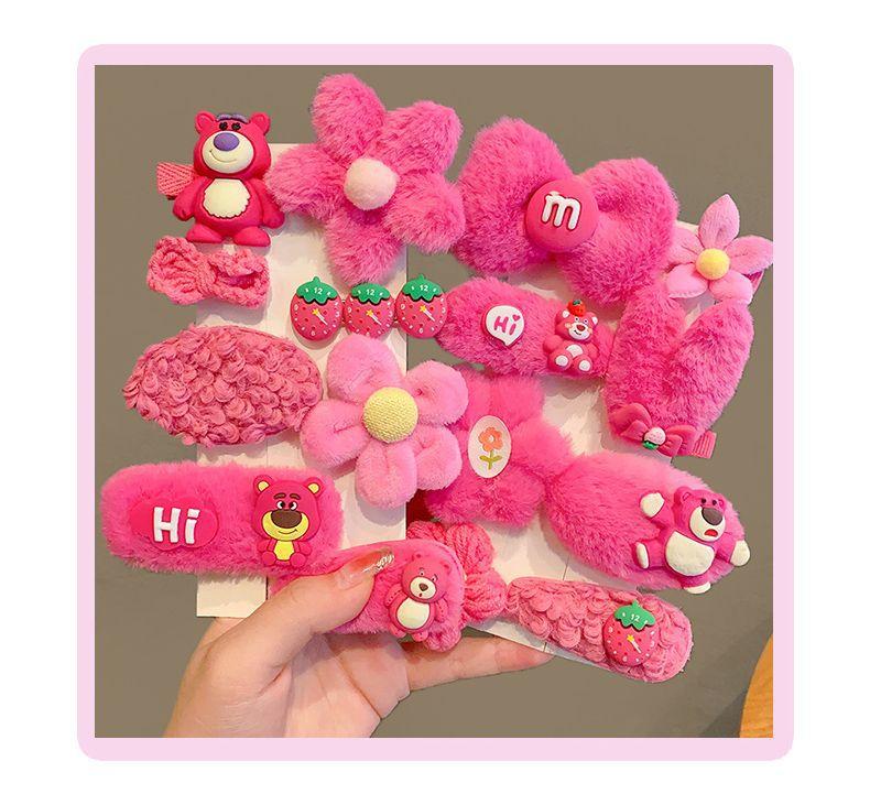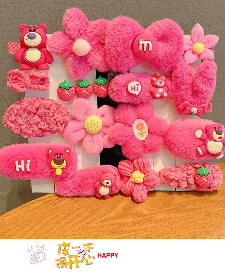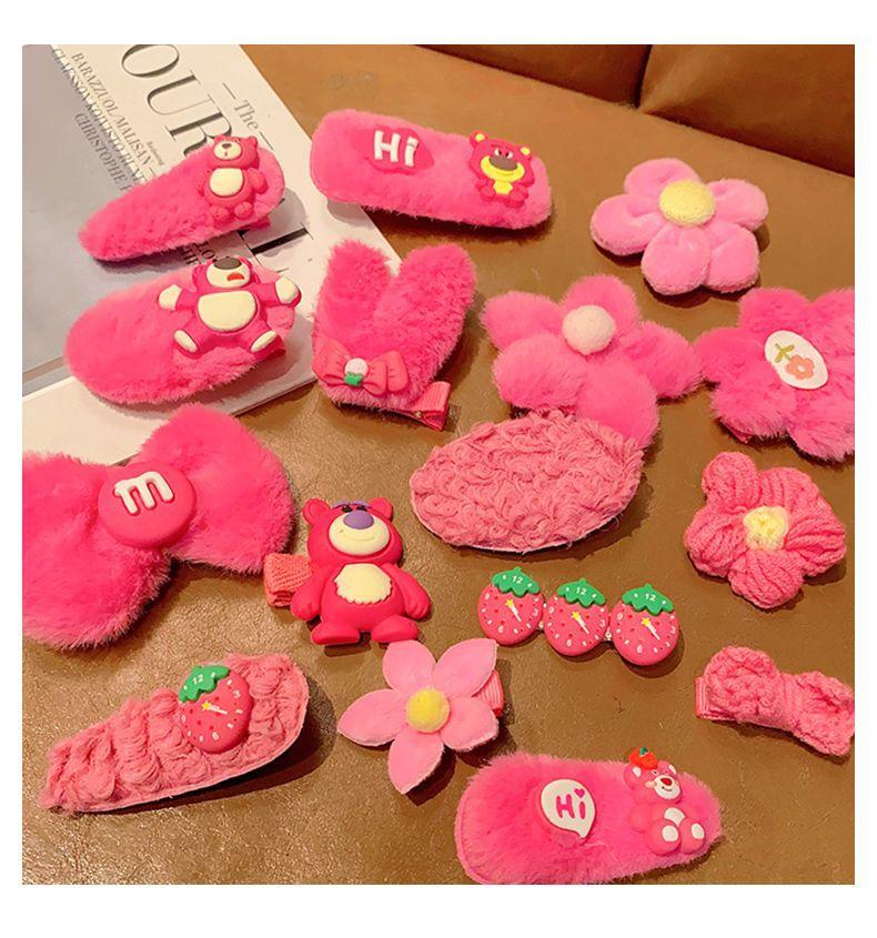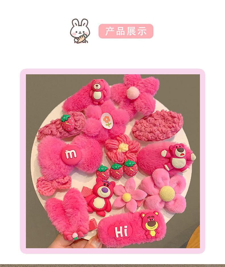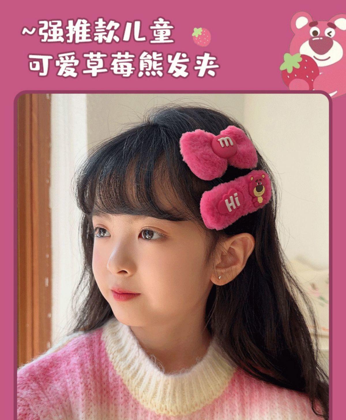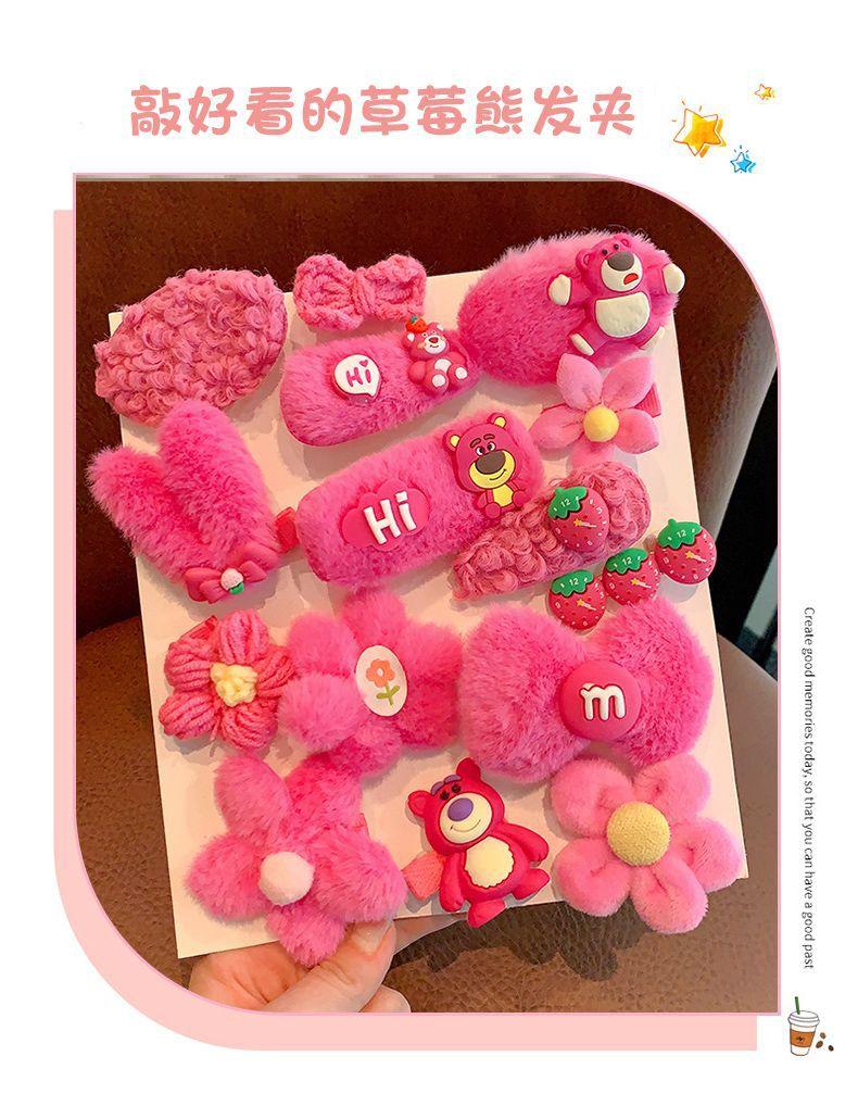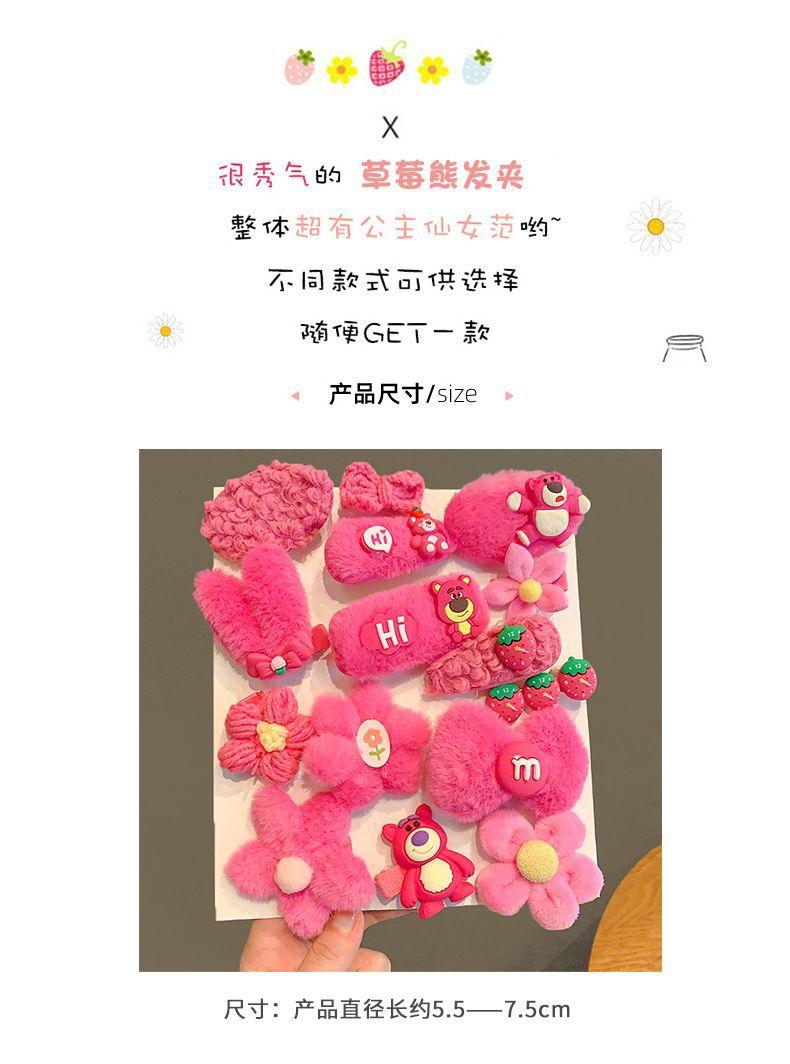 Horquilla Infantil de Oso Fresa Princesa de Peluche Linda Clip para Flequillo Adorno para el Cabello Accesorios para el Cabello de Niñas Horquilla para el Cabello de Bebé