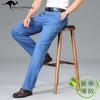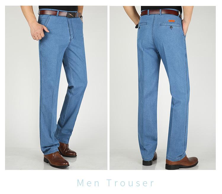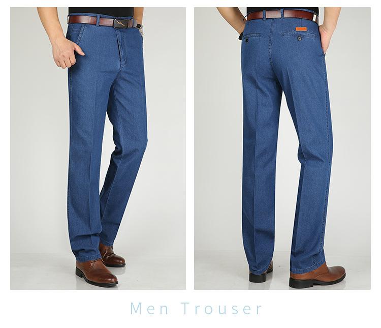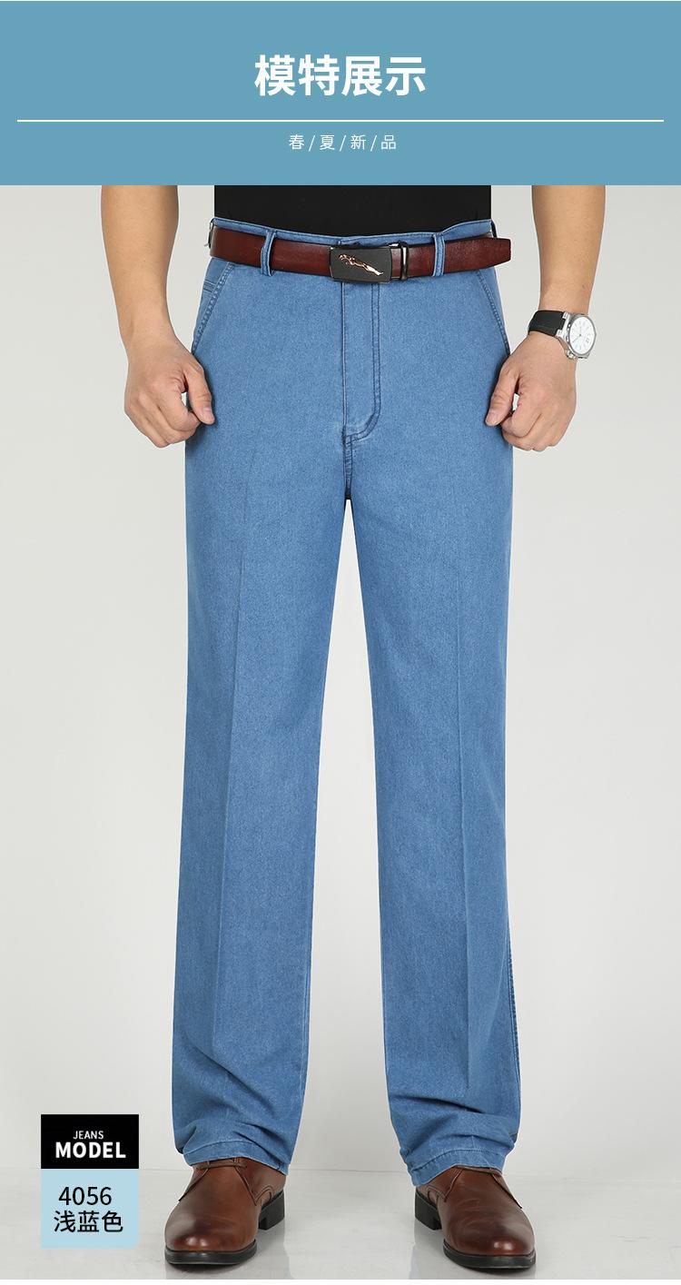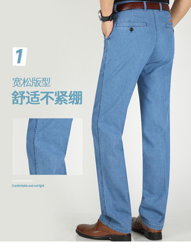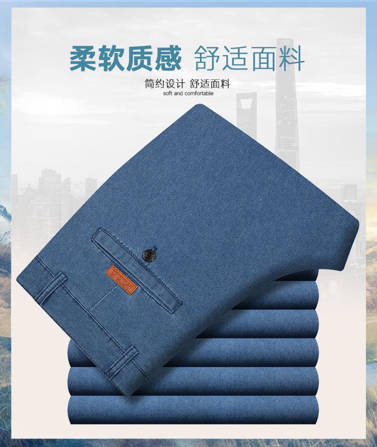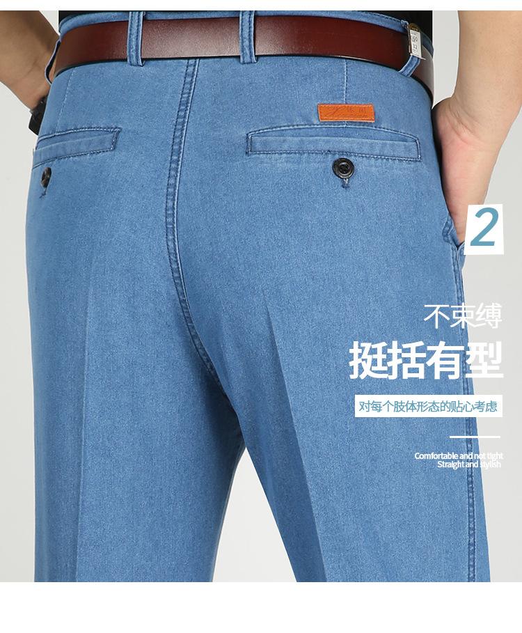 Pantalones vaqueros finos de primavera y verano Perki Kangaroo para hombre de mediana edad, informales, elásticos, holgados y largos.