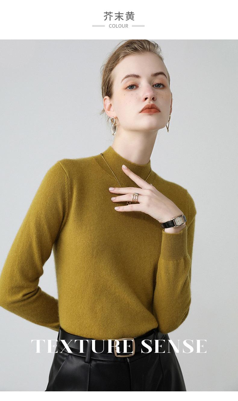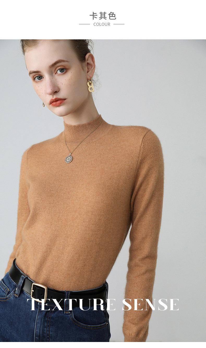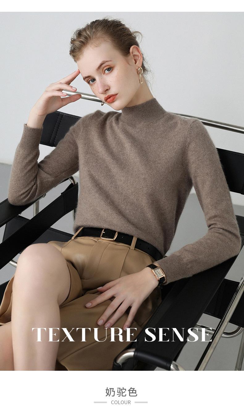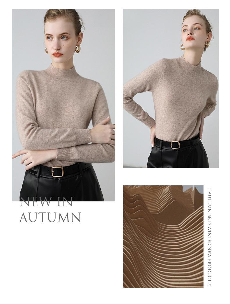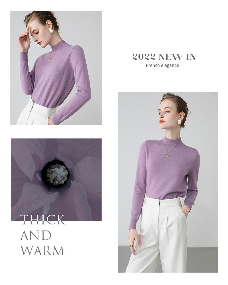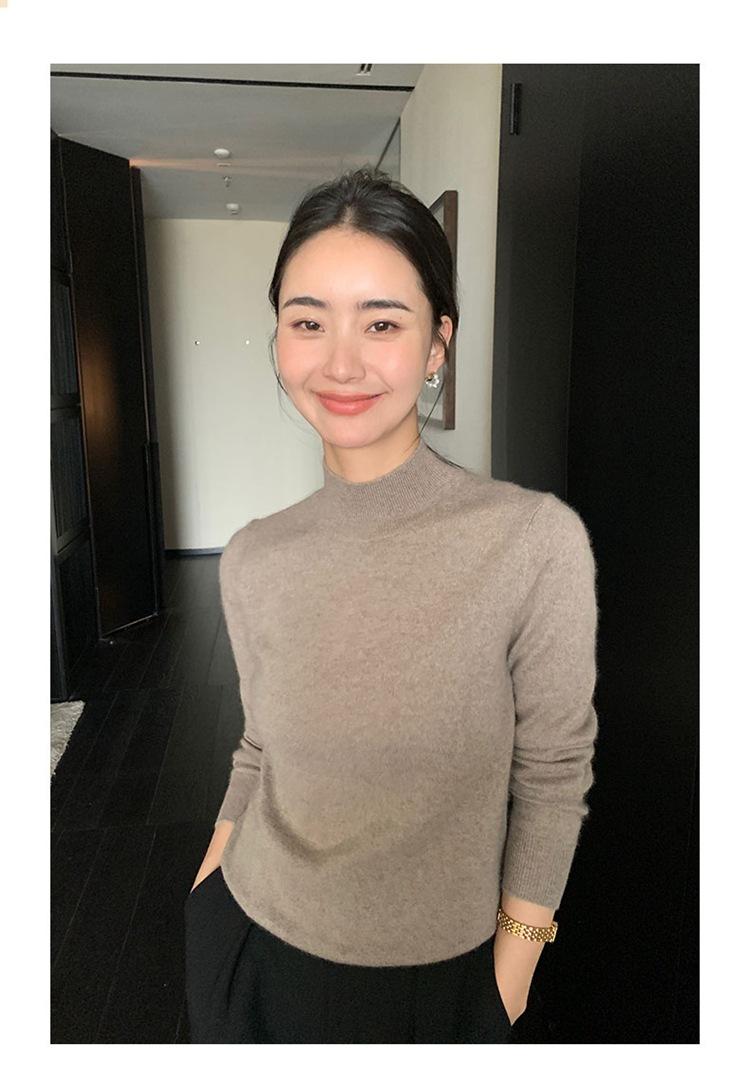 Suéter de Cachemira de Cuello Alto para Mujer 2023 Otoño e Invierno Nuevo Jersey de Manga Larga para Interior Camisa Básica Tejida de Color Puro