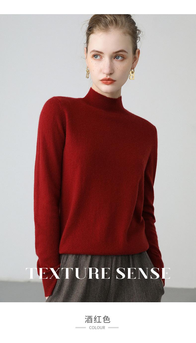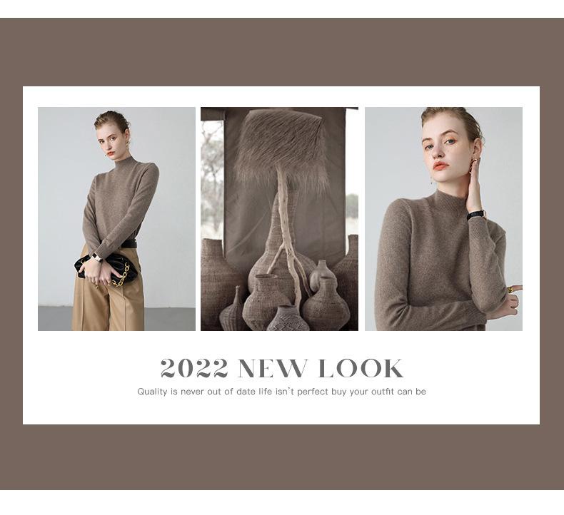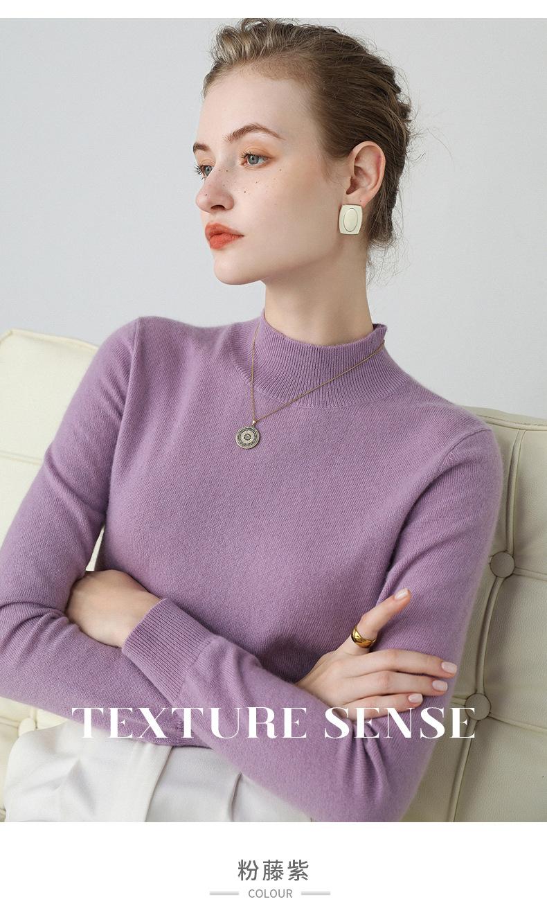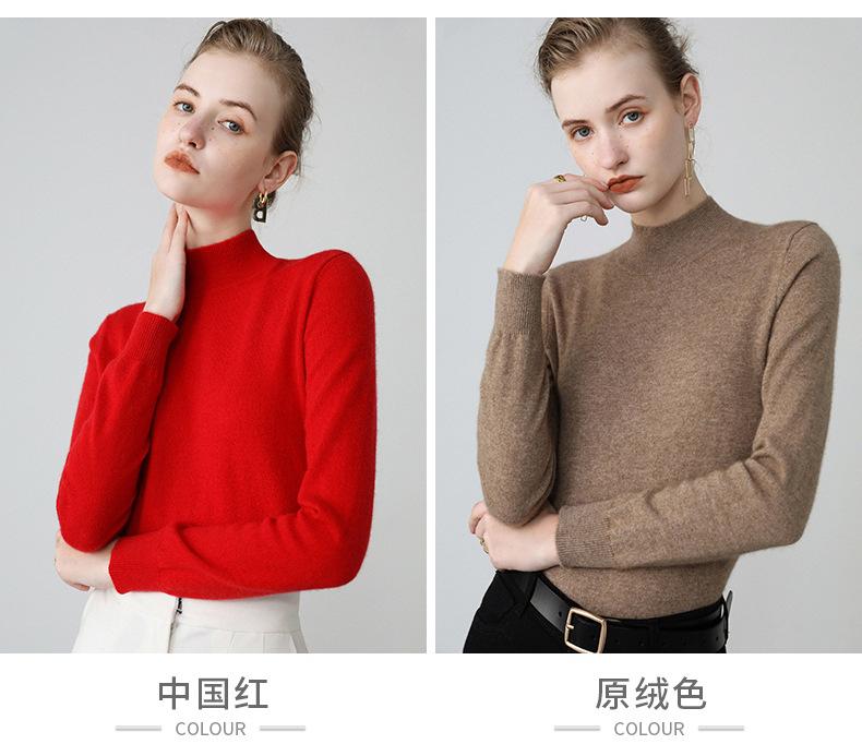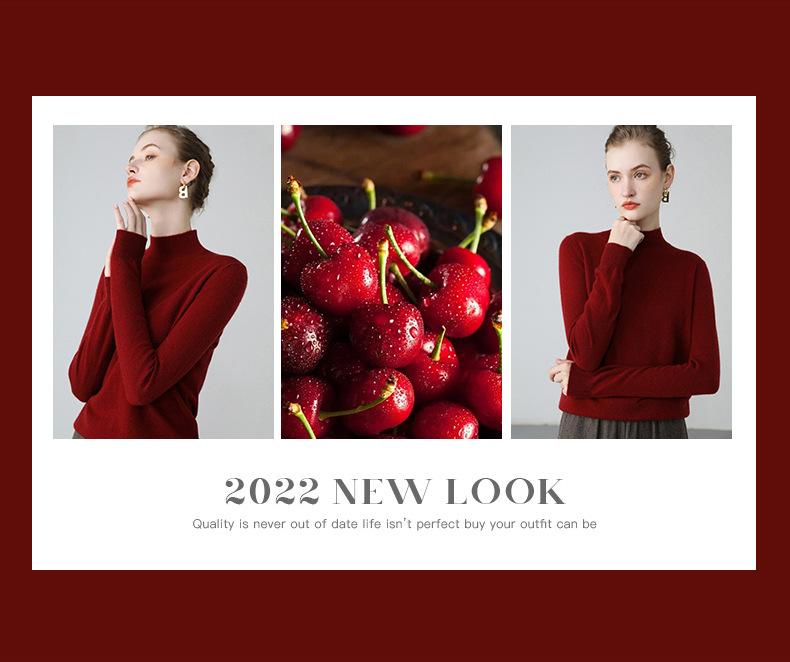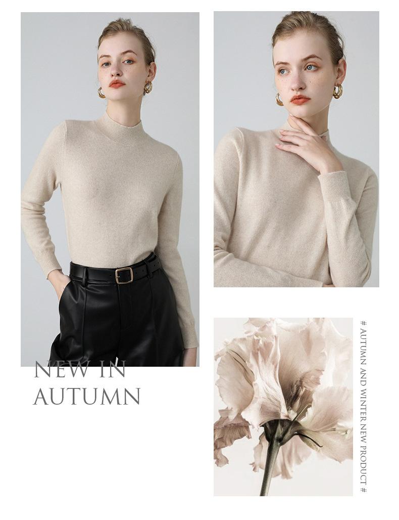 Suéter de Cachemira de Cuello Alto para Mujer 2023 Otoño e Invierno Nuevo Jersey de Manga Larga para Interior Camisa Básica Tejida de Color Puro