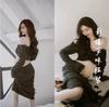 Nuevo estudio fotográfico para mujeres embarazadas, ropa para fotografía, retrato artístico, traje de punto dividido, ropa de maternidad de moda negra