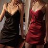 Lencería sexy sexy de encaje con tirantes camisón de verano delgado de seda de hielo para mujer pijamas sin espalda al por mayor