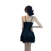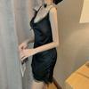 Camisón sexy negro de encaje con tirantes para mujer, pijama fino de seda de hielo para verano sin espalda, se puede usar como vestido para estar en casa.