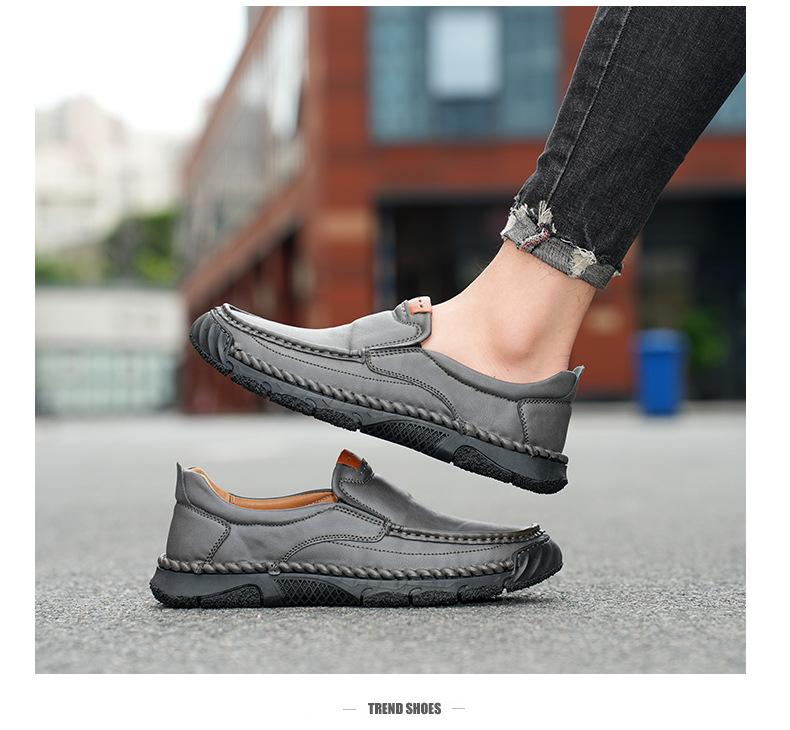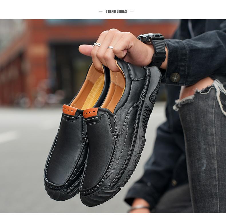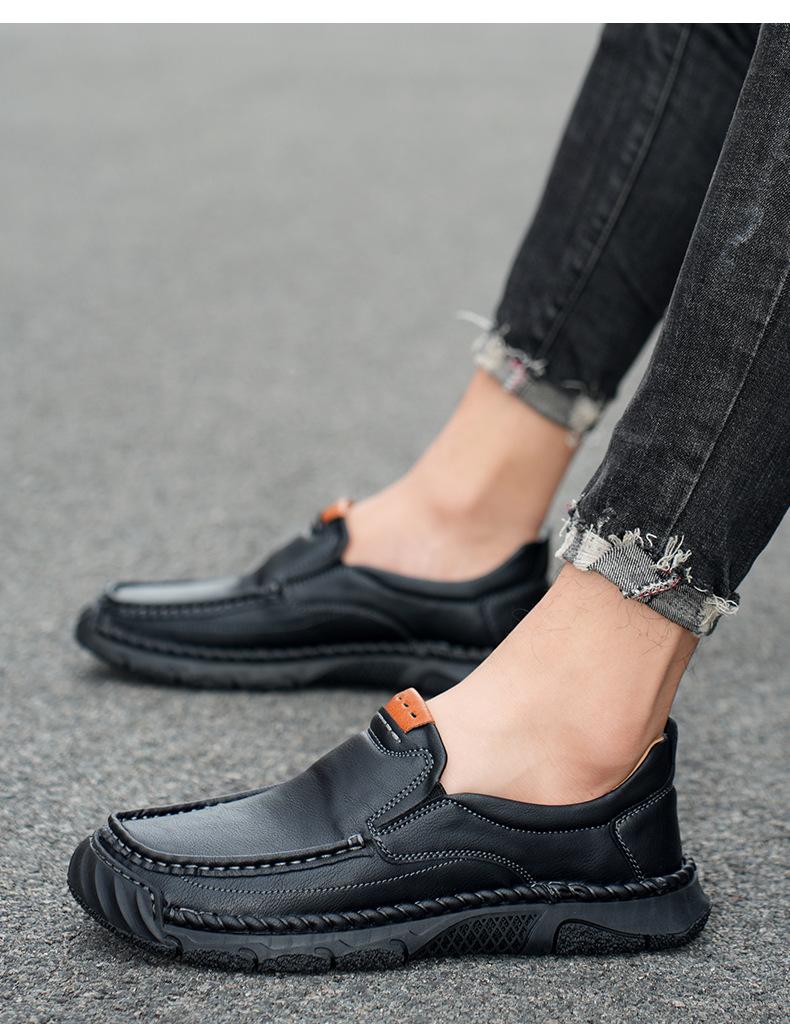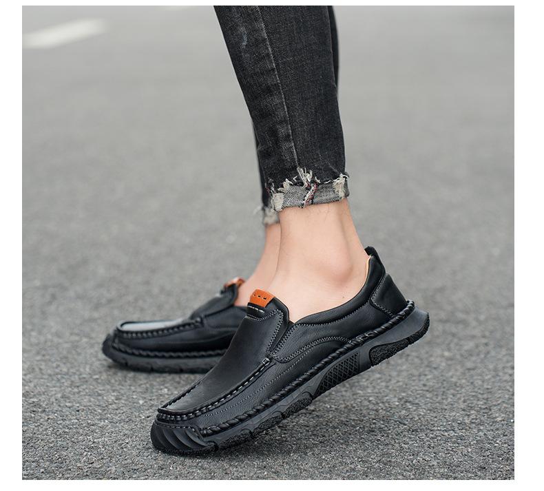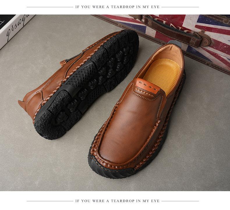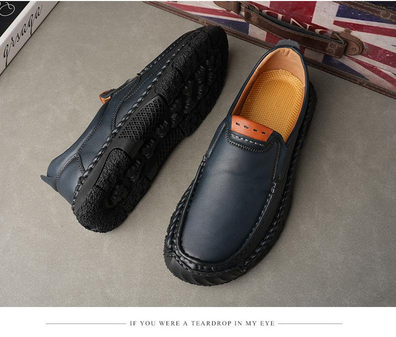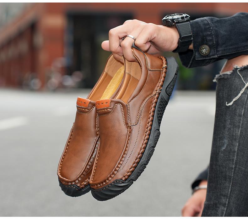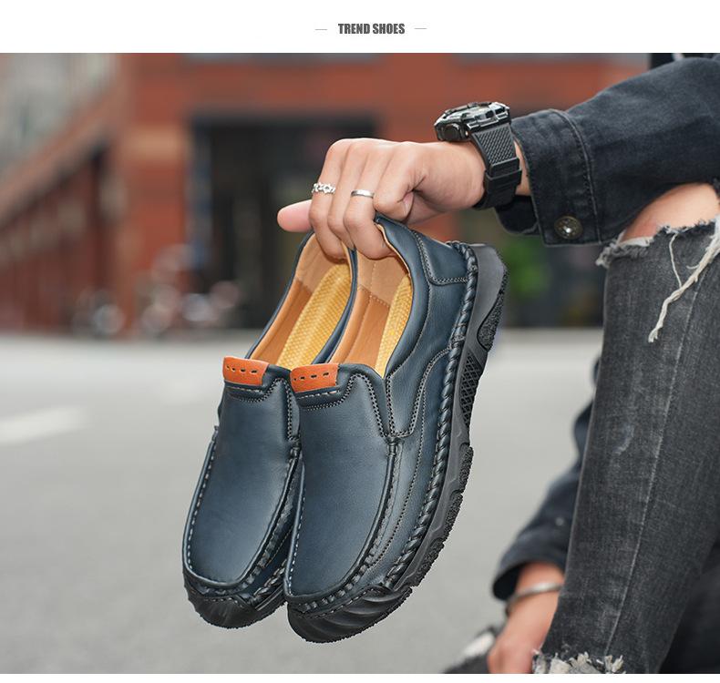 2023 nuevos zapatos casuales de cuero con costuras hechas a mano de talla grande transfronterizas -