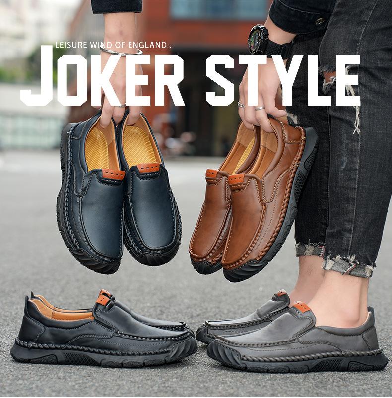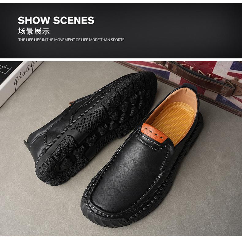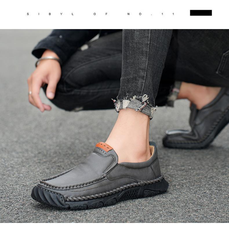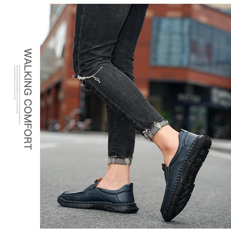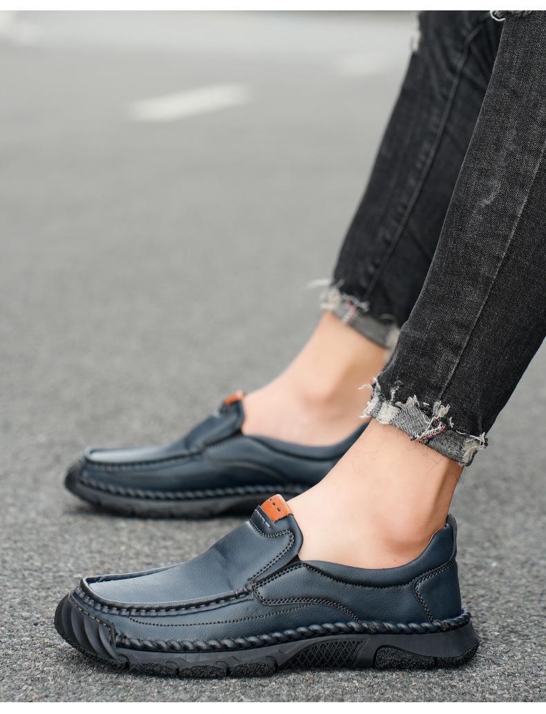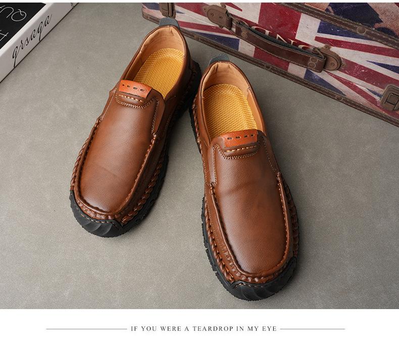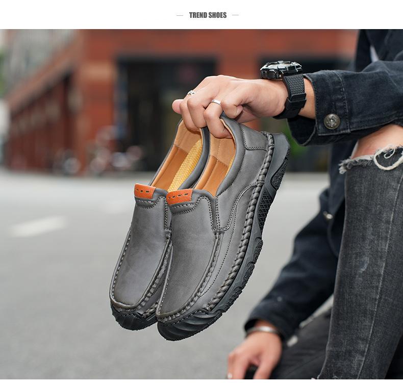 2023 nuevos zapatos casuales de cuero con costuras hechas a mano de talla grande transfronterizas -