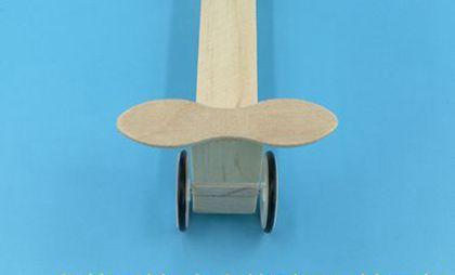 Otro bloque de madera con un agujero se pega a 3 cm del otro extremo de la pieza de madera. |