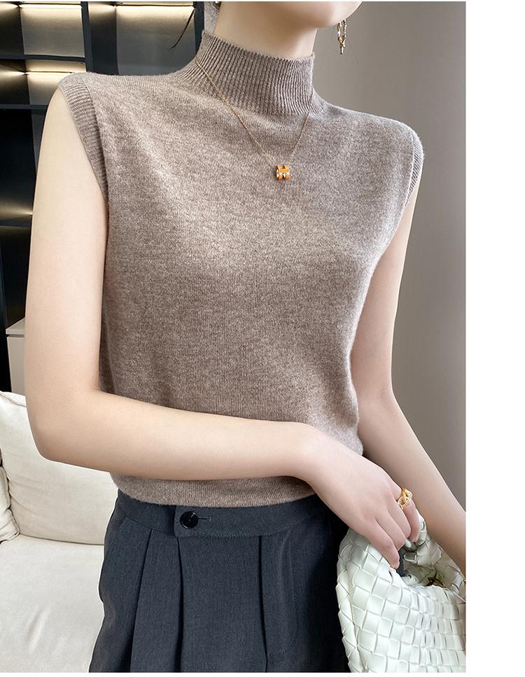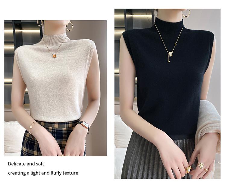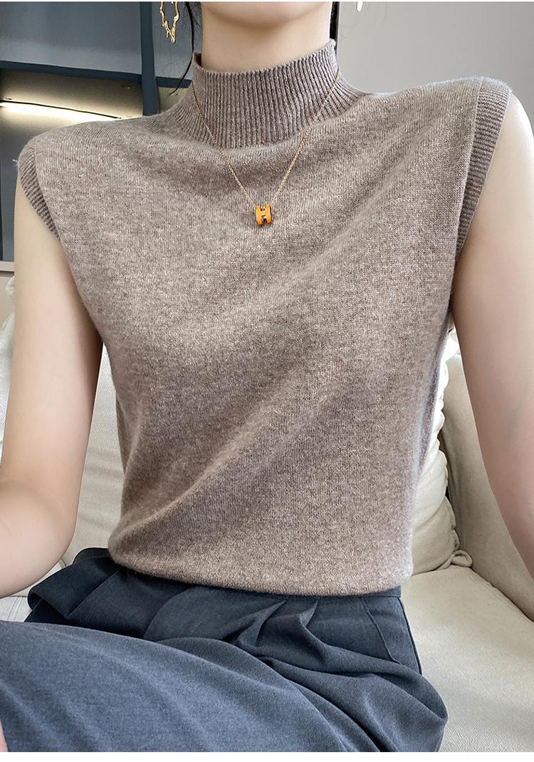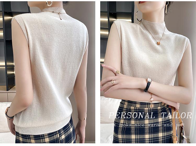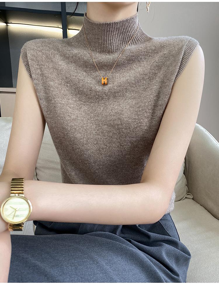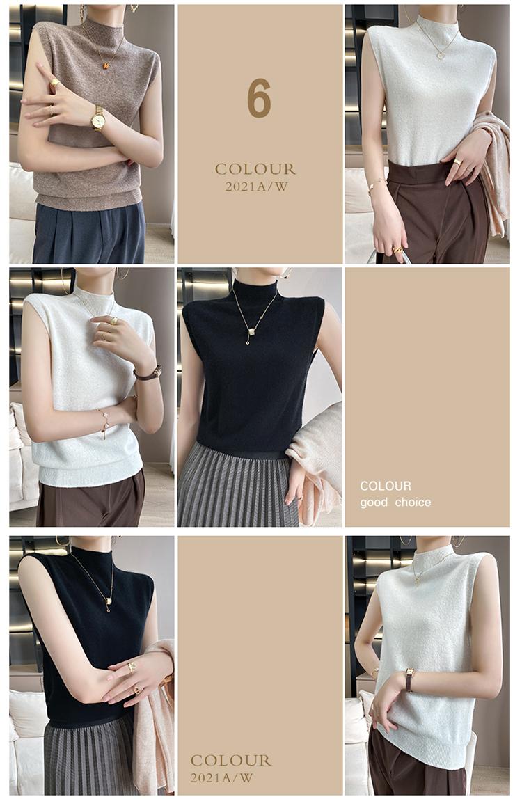 Otoño/Invierno 2023 Nuevo Chaleco Tejido de Cachemira para Mujer sin Mangas de Cuello Alto de Lana Tejida Suéter Sling Joker