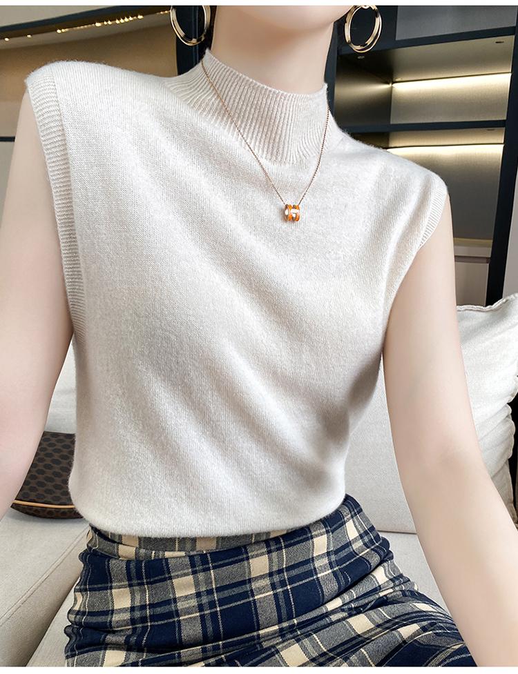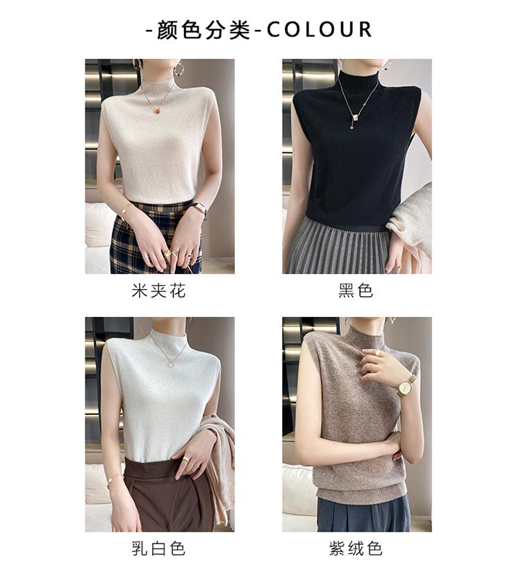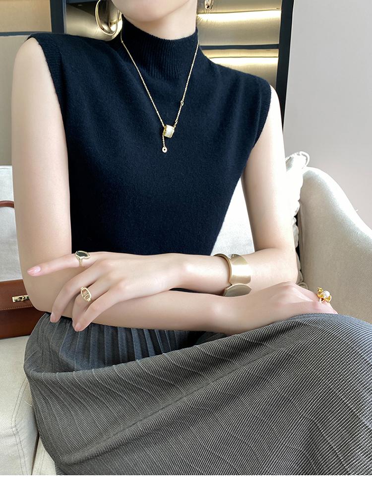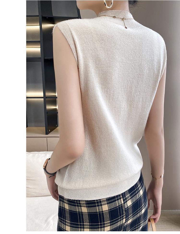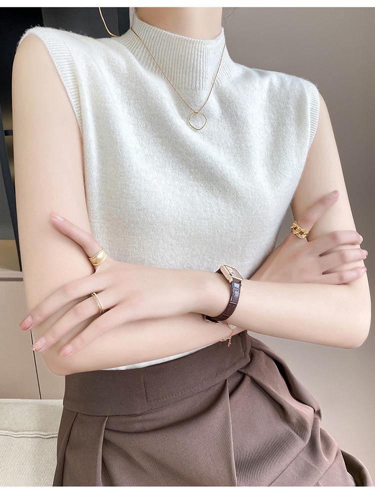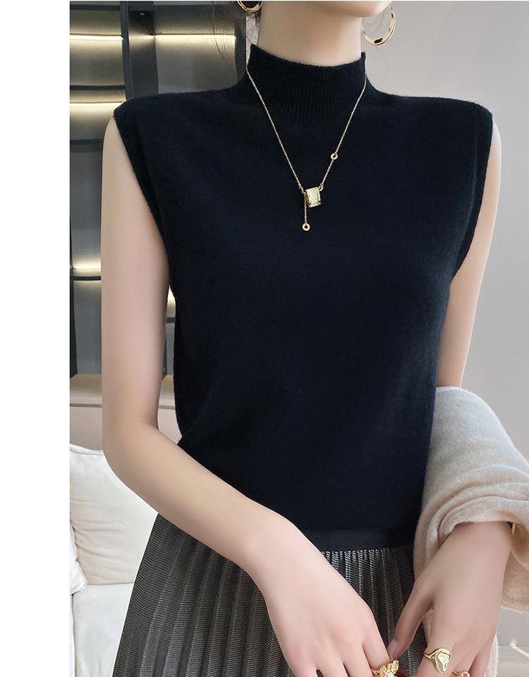 Otoño/Invierno 2023 Nuevo Chaleco Tejido de Cachemira para Mujer sin Mangas de Cuello Alto de Lana Tejida Suéter Sling Joker
