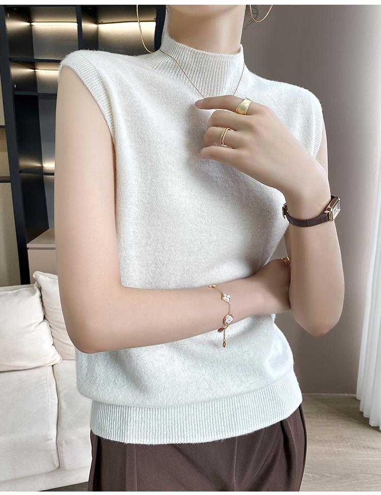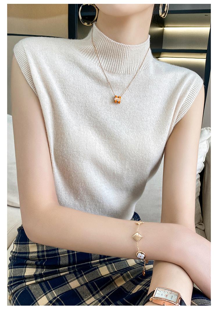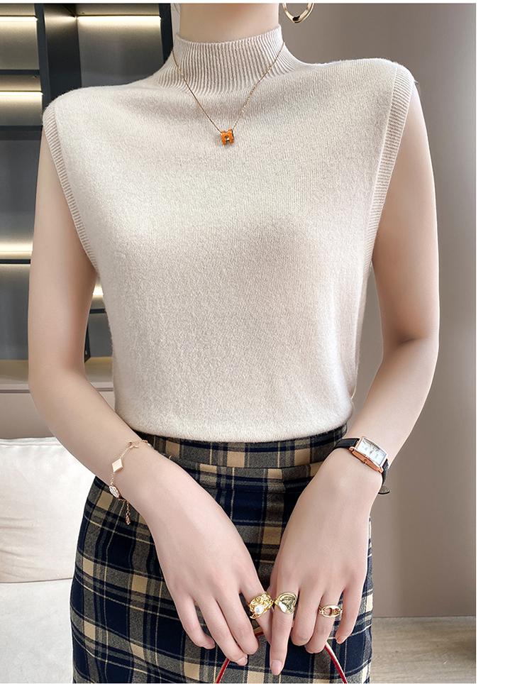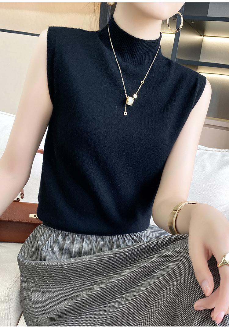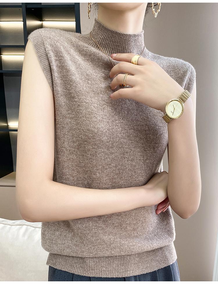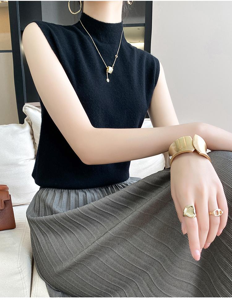 Otoño/Invierno 2023 Nuevo Chaleco Tejido de Cachemira para Mujer sin Mangas de Cuello Alto de Lana Tejida Suéter Sling Joker