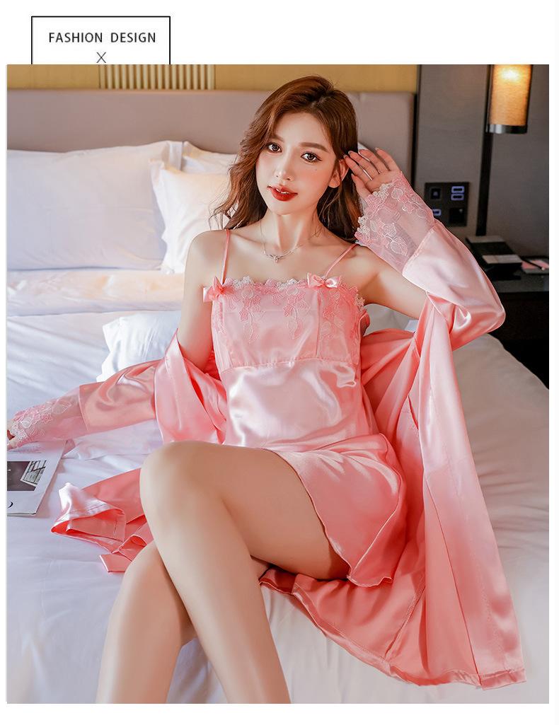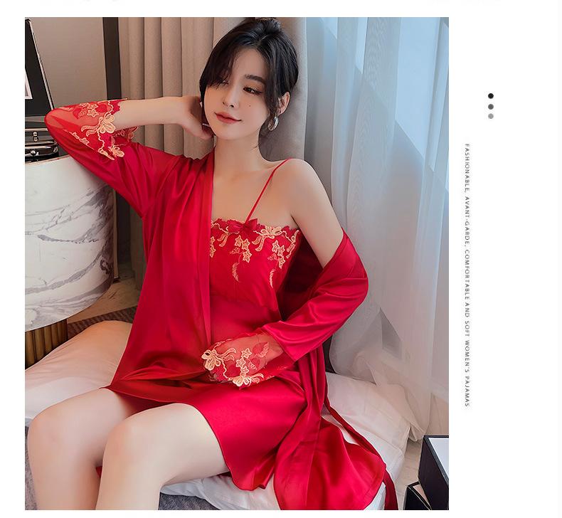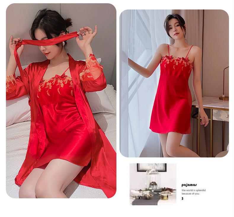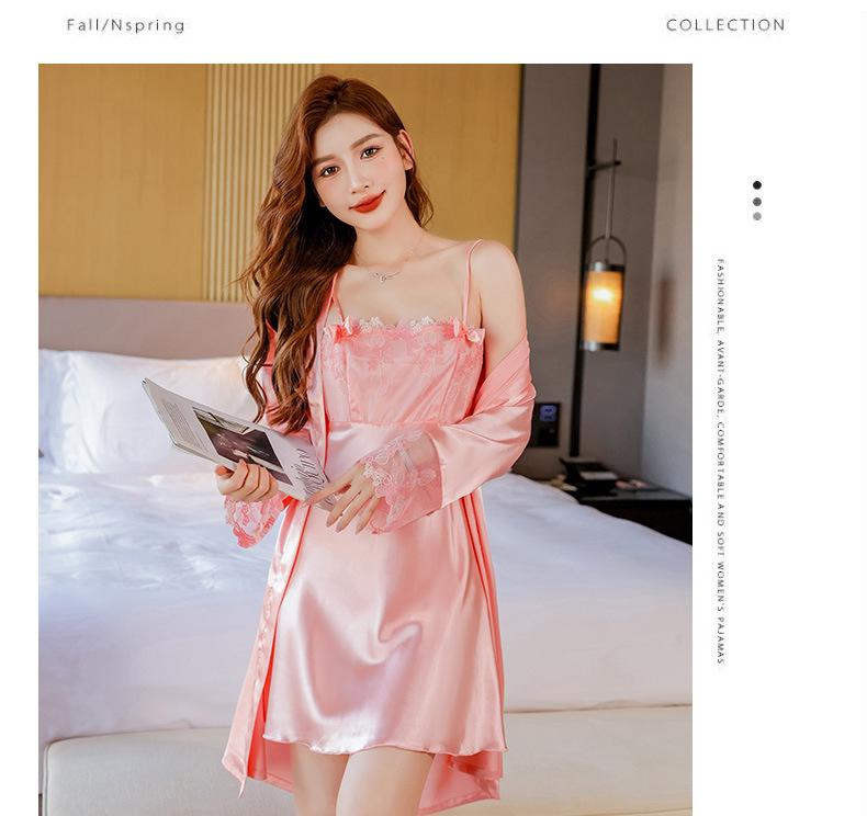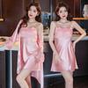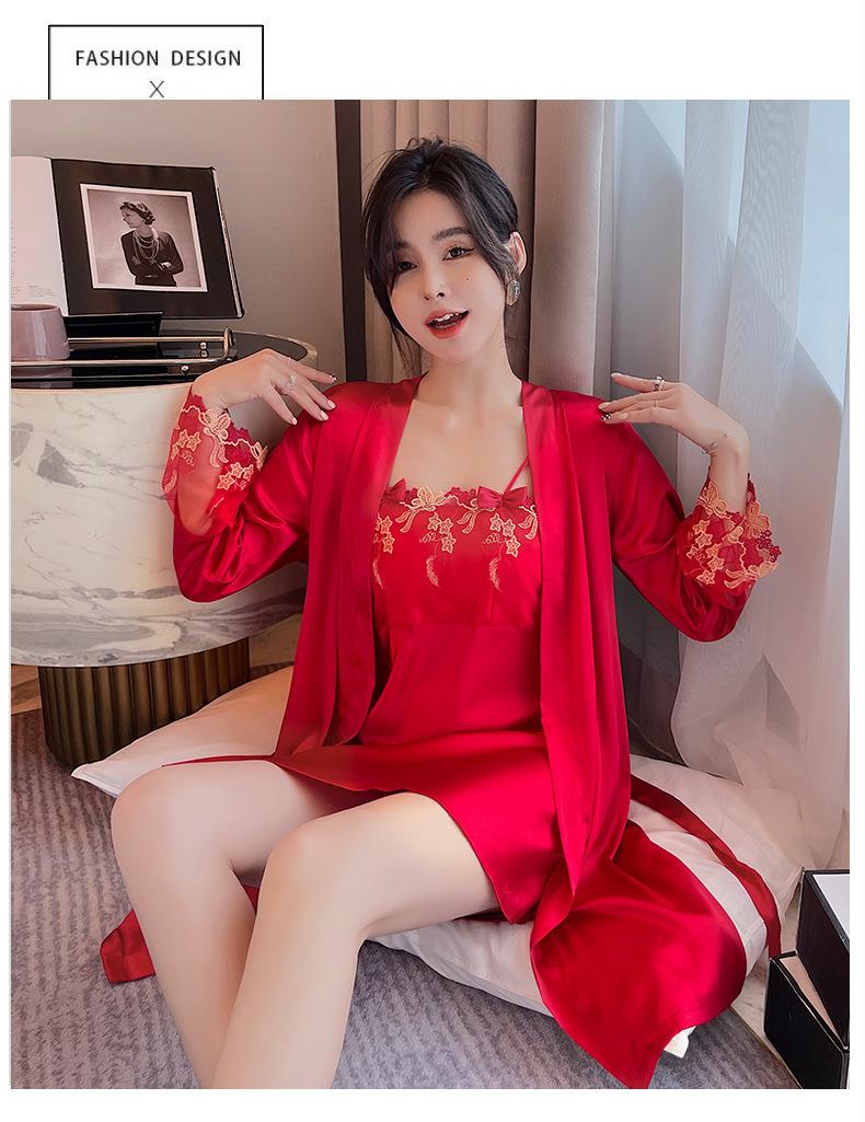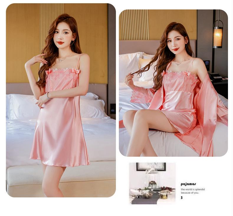 Pijama de verano para mujer, fino, sexy, de seda helada, camisón de dos piezas, conjunto de alta gama de seda para primavera y otoño, ropa para el hogar