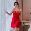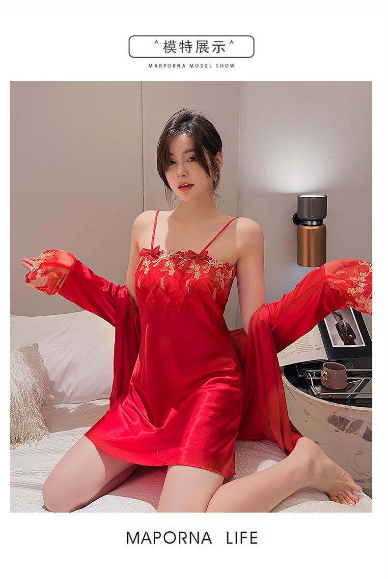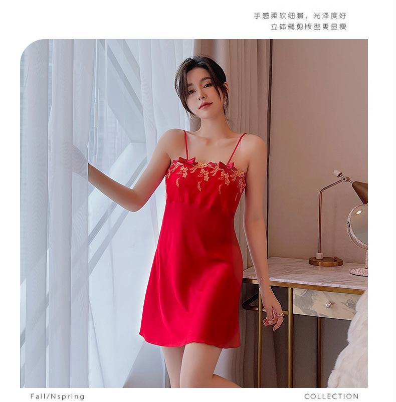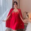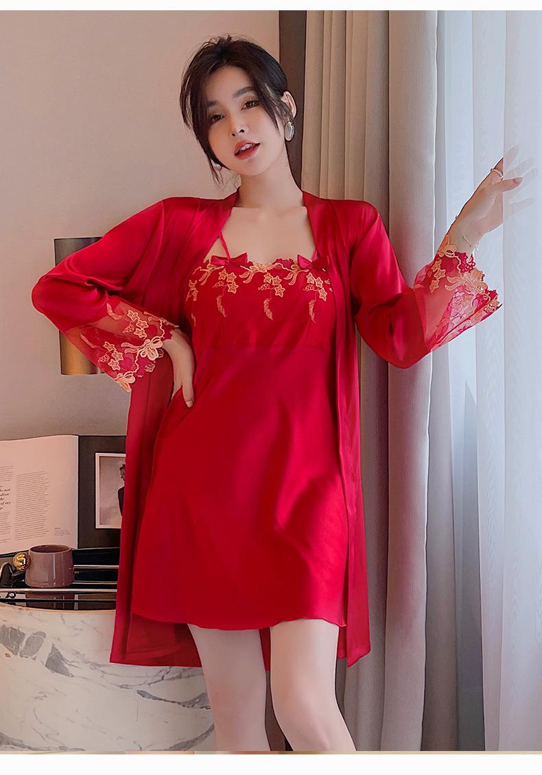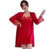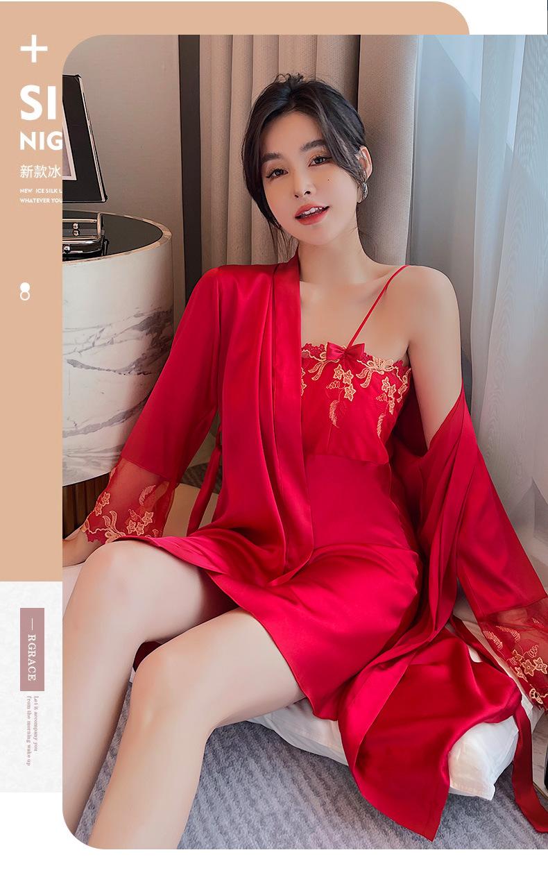 Pijama de verano para mujer, fino, sexy, de seda helada, camisón de dos piezas, conjunto de alta gama de seda para primavera y otoño, ropa para el hogar