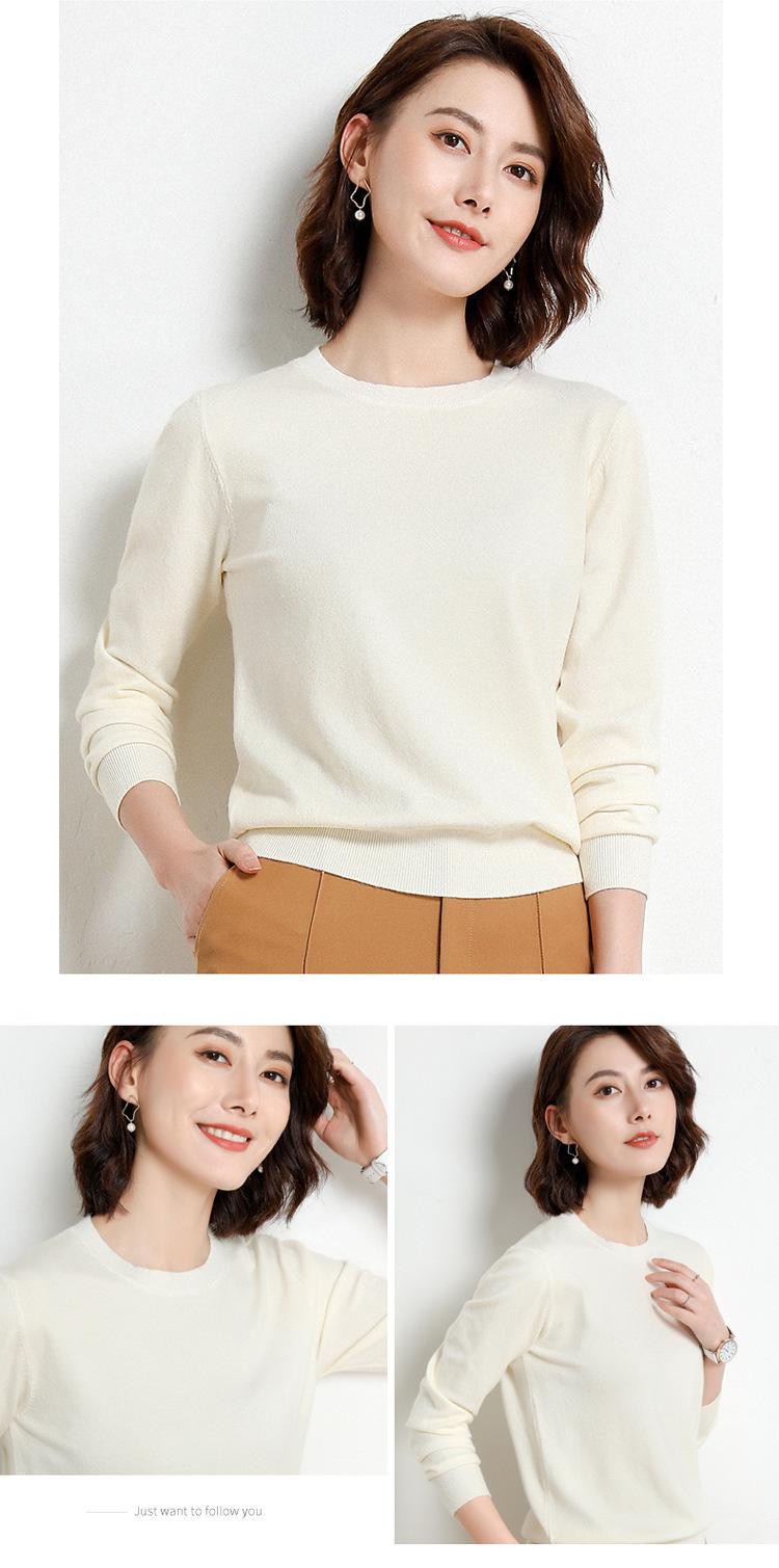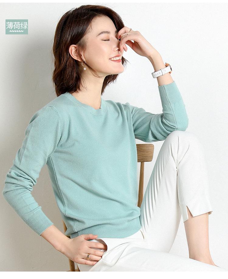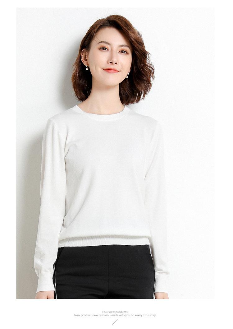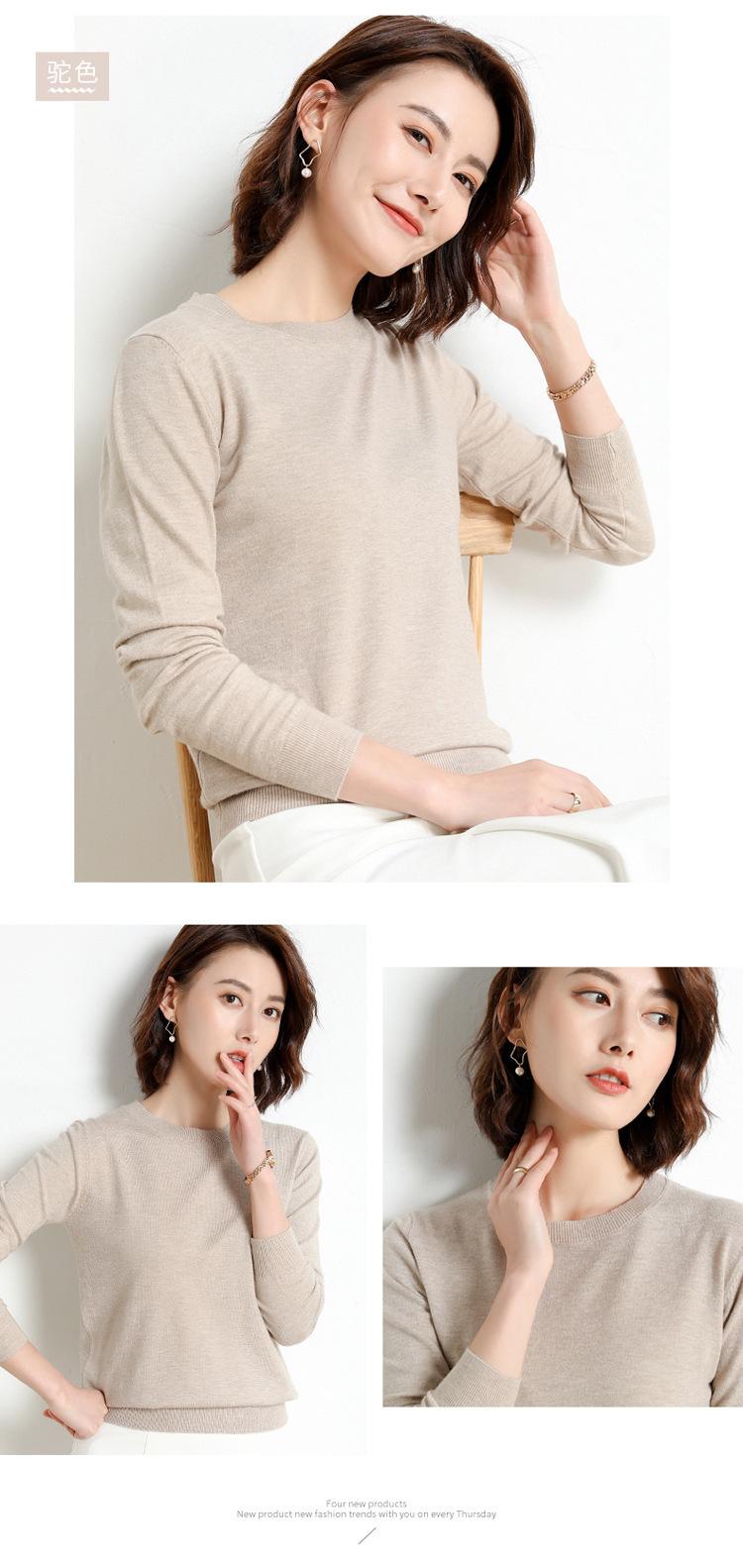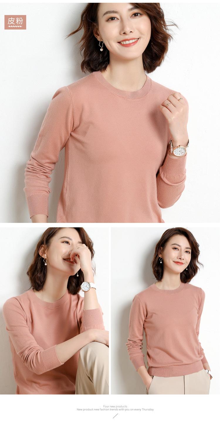 2025 Nuevo Otoño e Invierno Tejido de Punto para Mujer Color Puro Cuello Redondo Jersey Tejido de Punto para Mujer Manga Larga Suelto Camiseta Básica