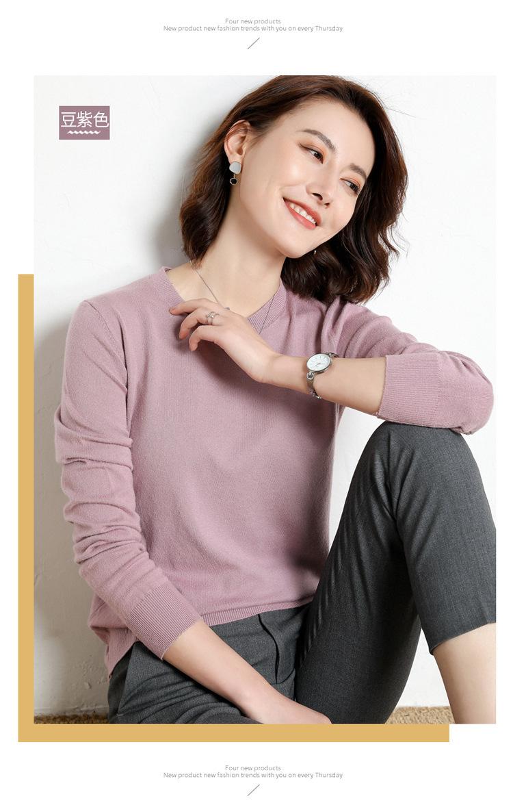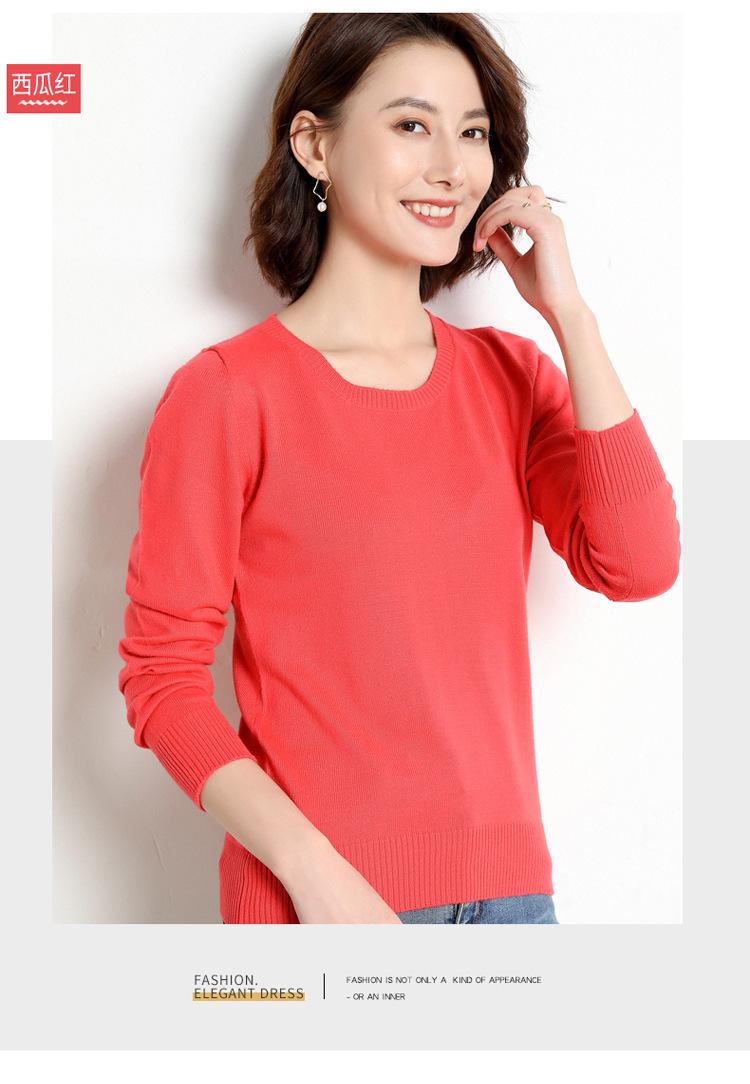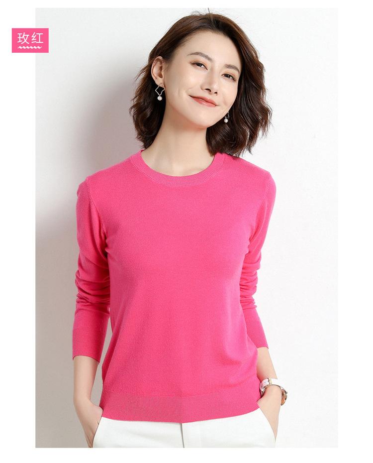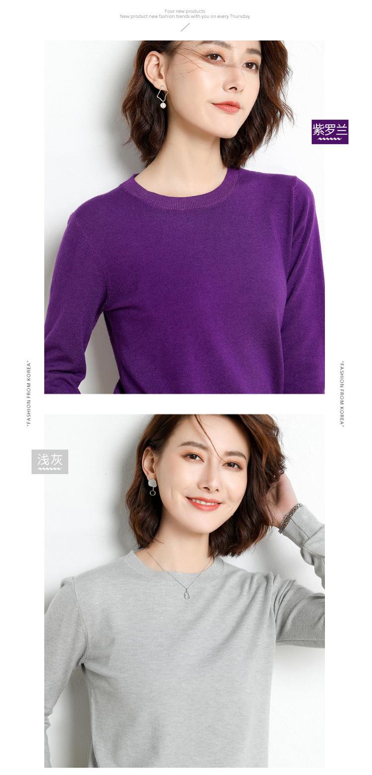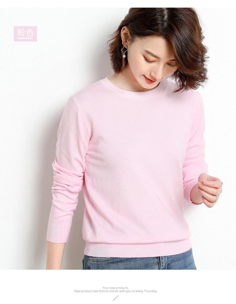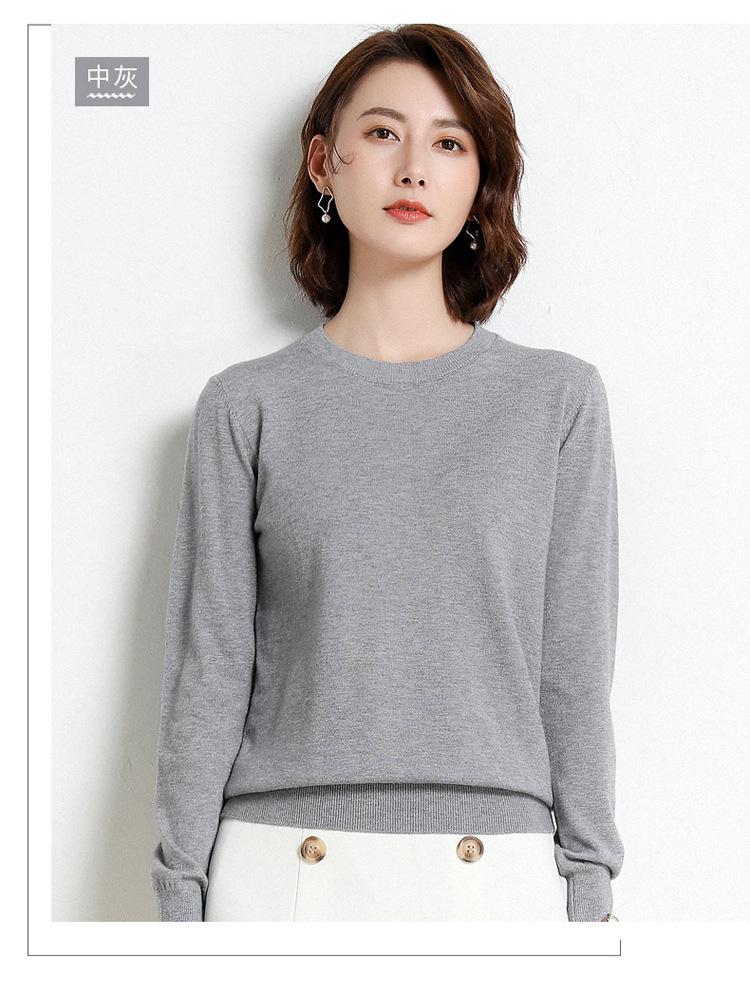 2025 Nuevo Otoño e Invierno Tejido de Punto para Mujer Color Puro Cuello Redondo Jersey Tejido de Punto para Mujer Manga Larga Suelto Camiseta Básica