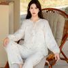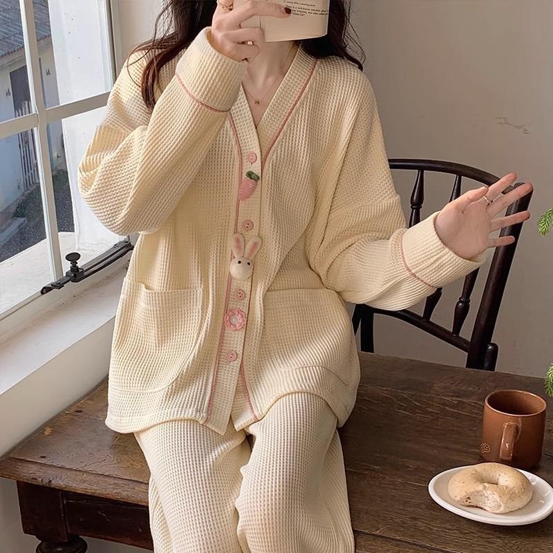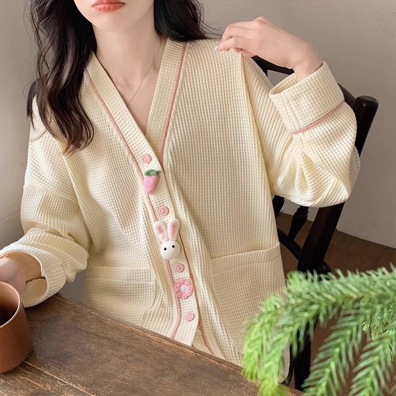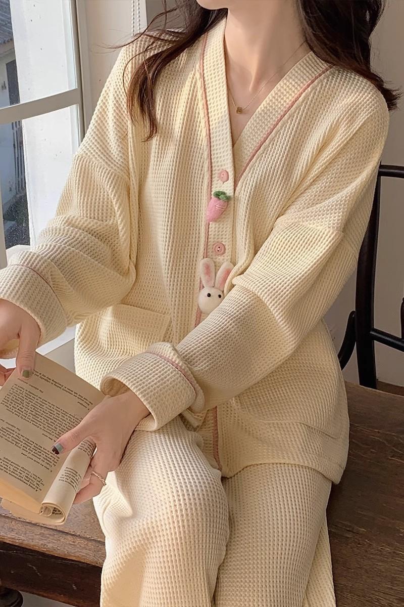 2024 Primavera y Otoño nuevo pijama de pantalones largos de manga larga de conejo de dibujos animados para mujer, ropa de casa simple de alta calidad