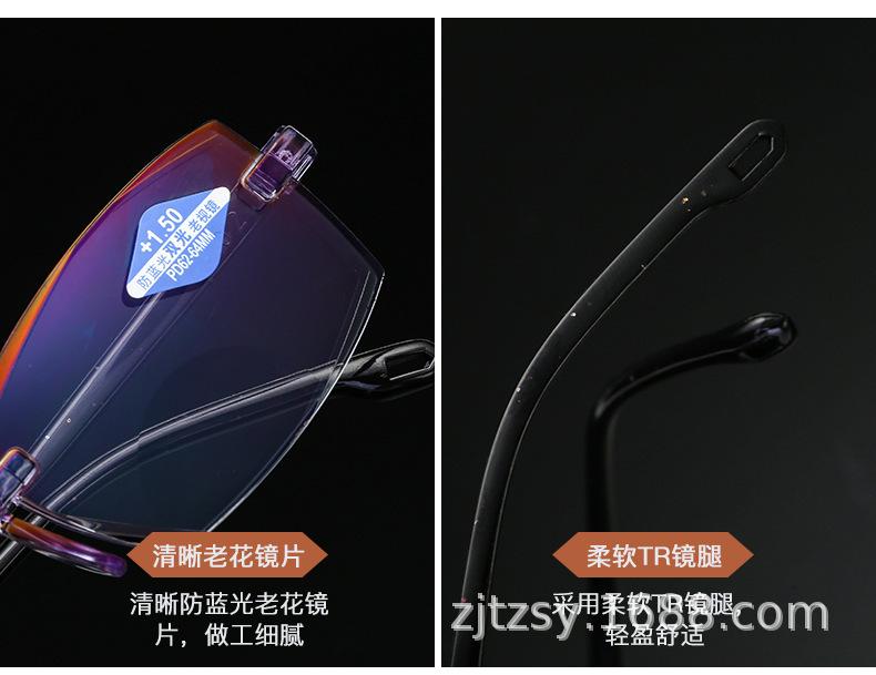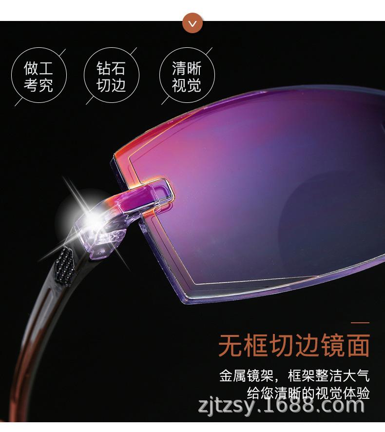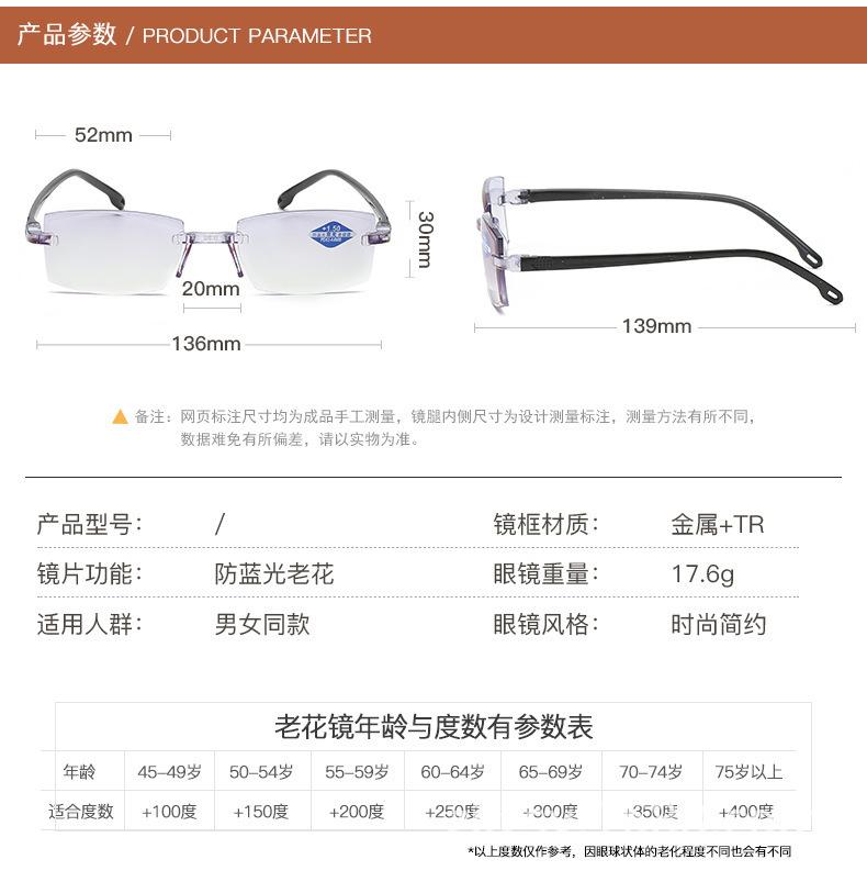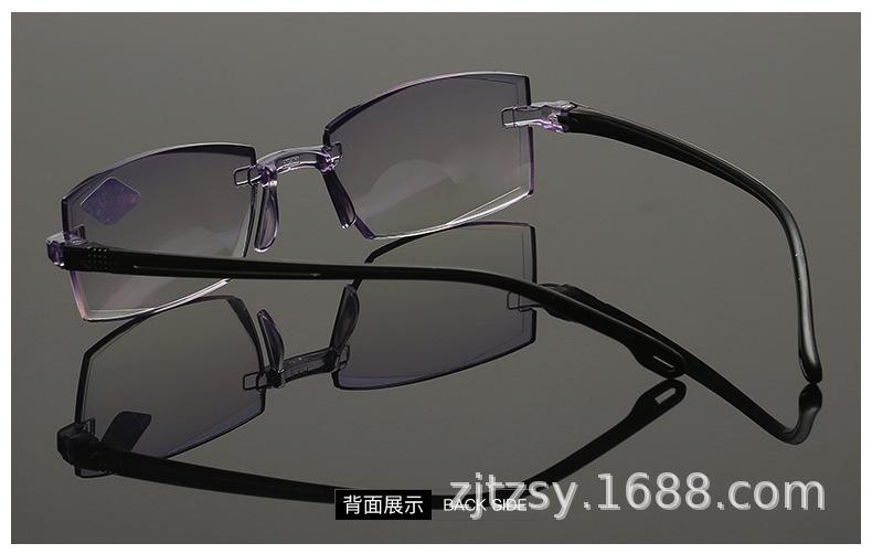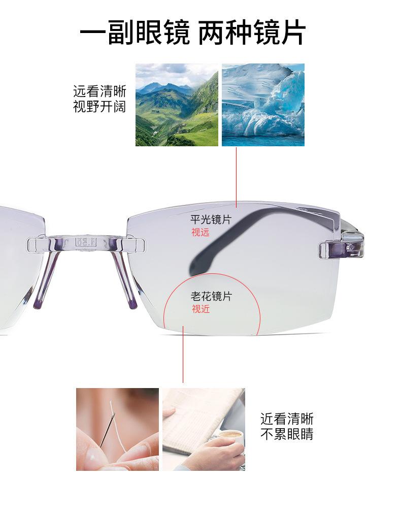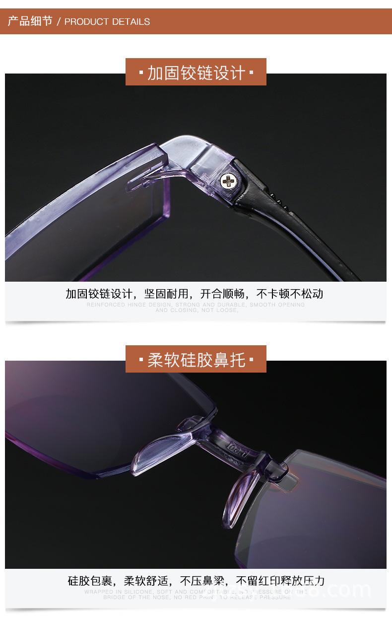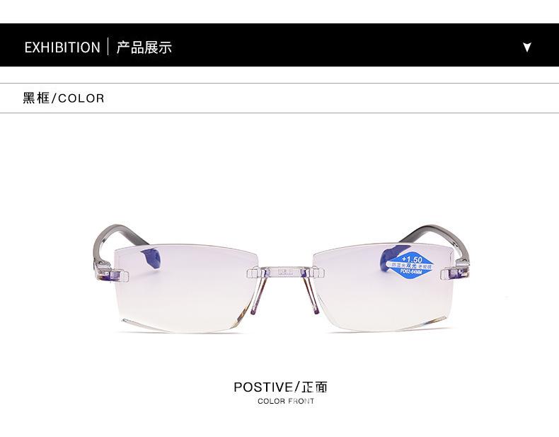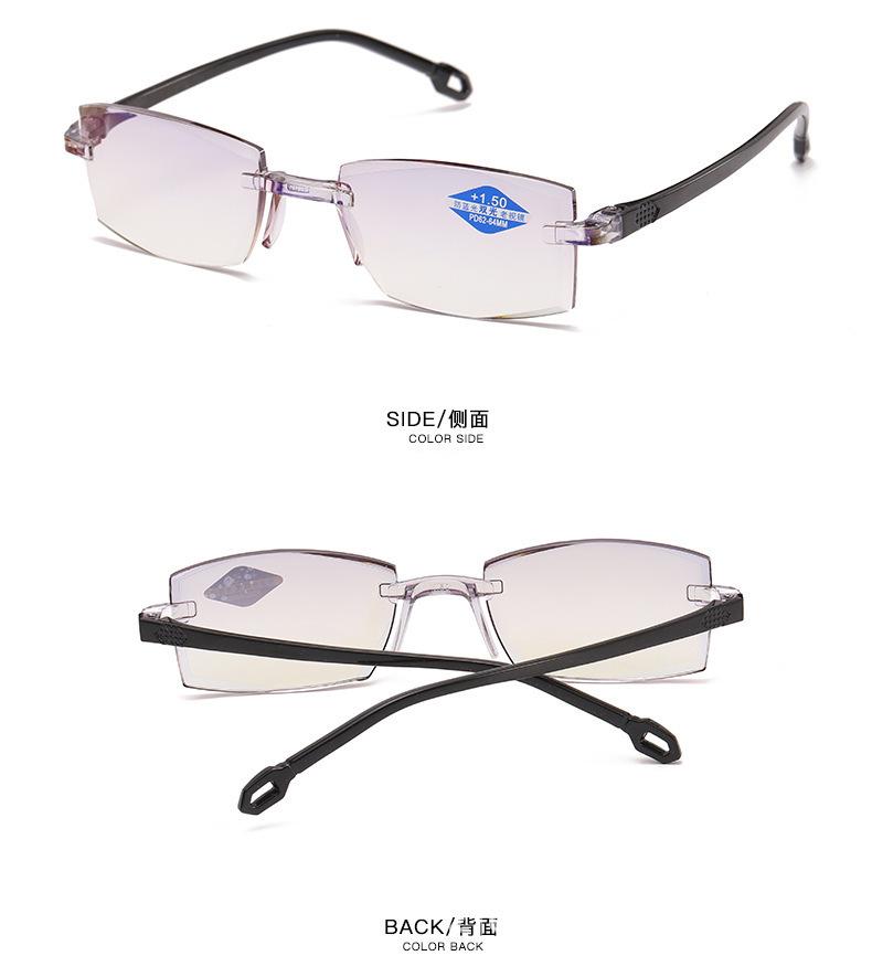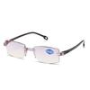 Populares gafas de moda para presbicia de solo aumento, sin montura, HD, anti luz azul, con borde de diamante, de resina de PC, de doble uso