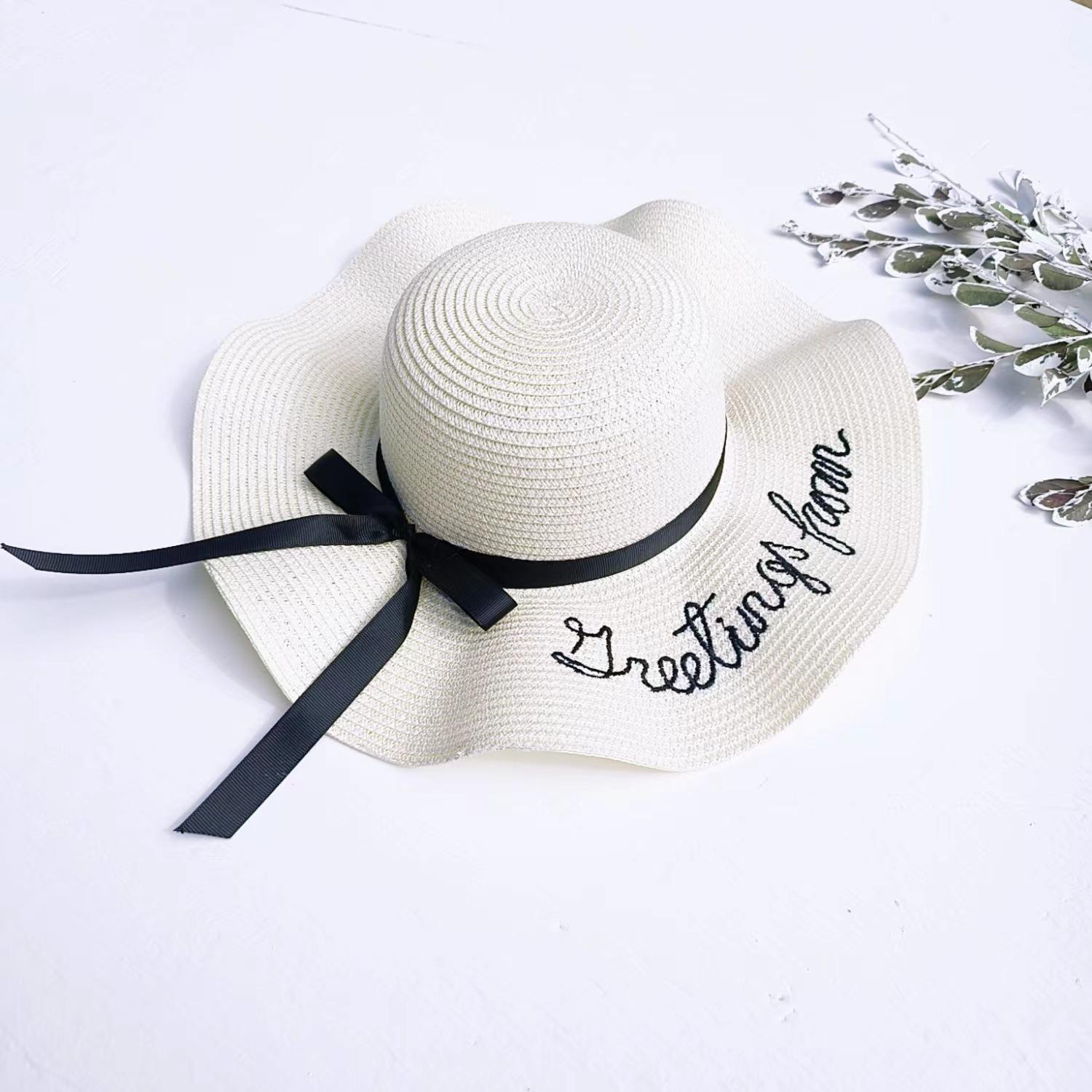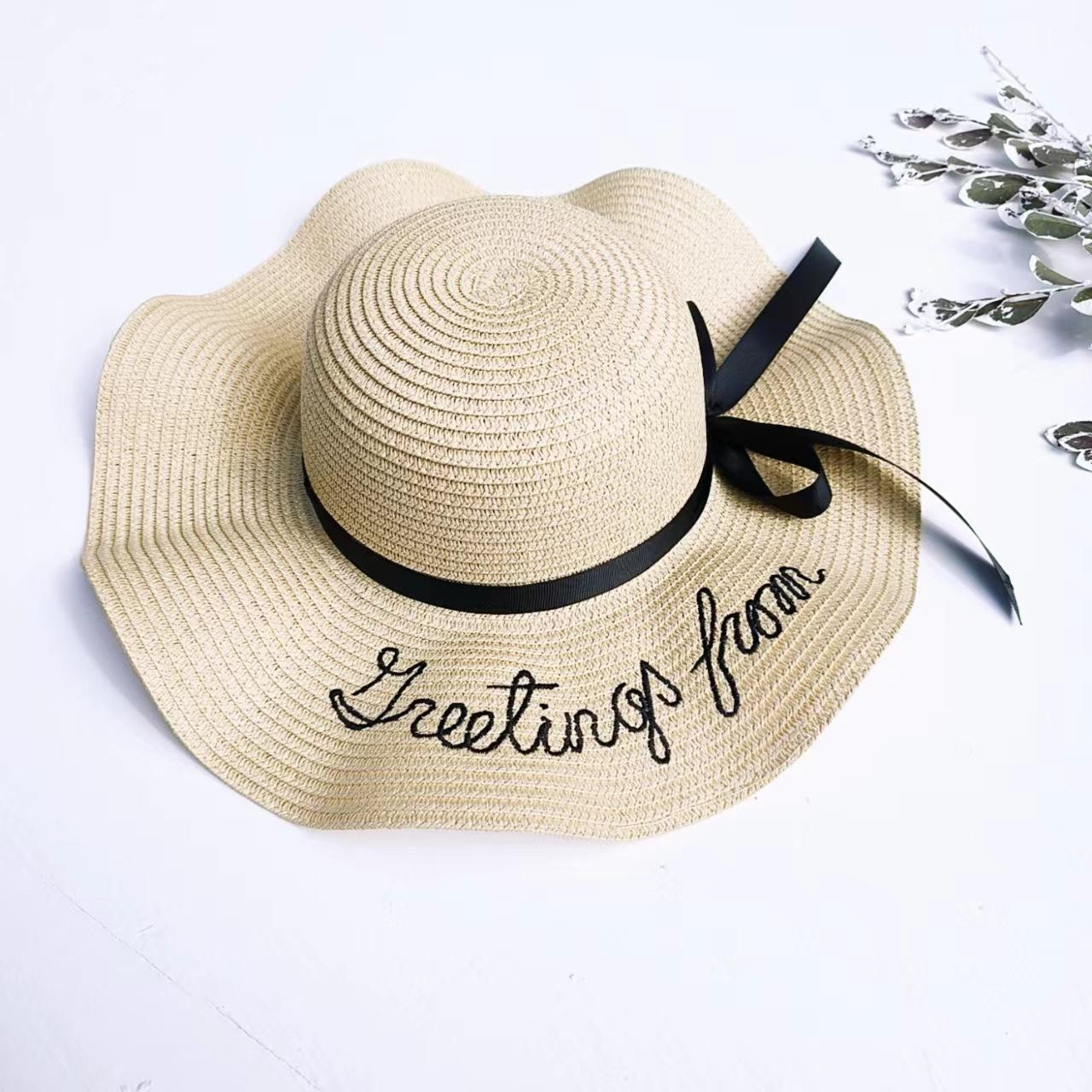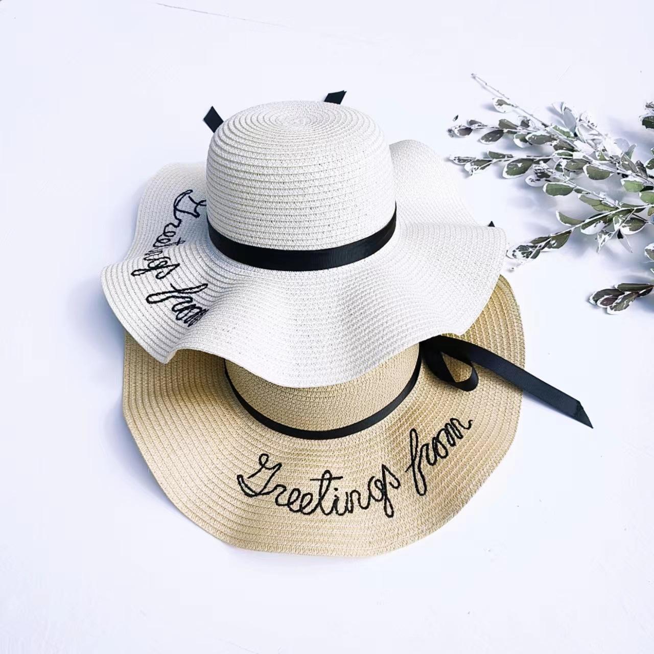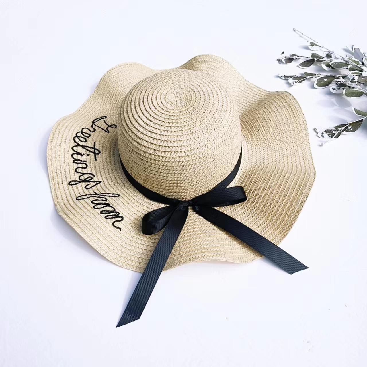 Sombrero de paja con letras bordadas para mujer, sombrero para el sol de verano, sombrero de playa, sombrero casual versátil de estilo vacacional.