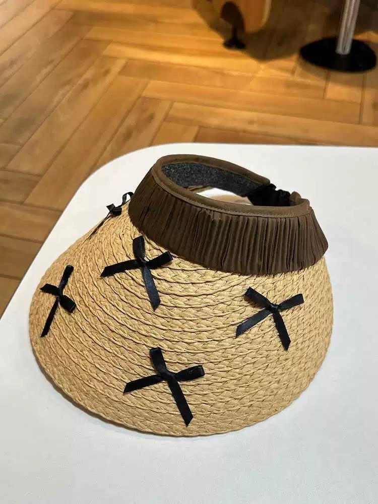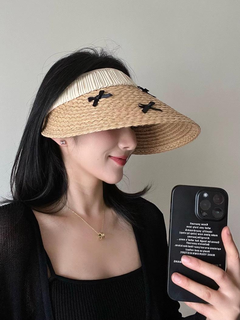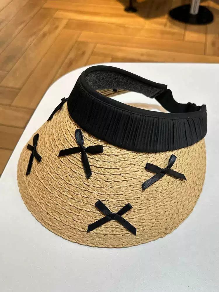 Sombrero de copa transparente con lazo, protección UV, combina con todo, sombrero de playa, paja bordada, sombrero de verano para mujer, para salir, parasol