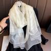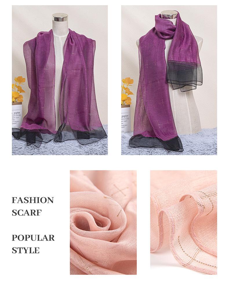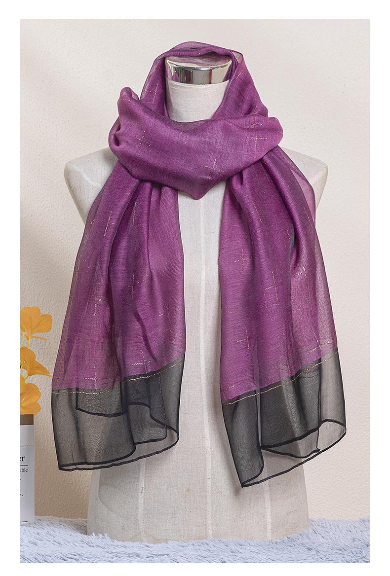 Bufanda de Lana Imitación Tejida en Oro y Seda de Morera para Mujer, Bufanda de Seda Sintética de Color Sólido, Chal Delgado para Viajes y Protección Solar para la Playa