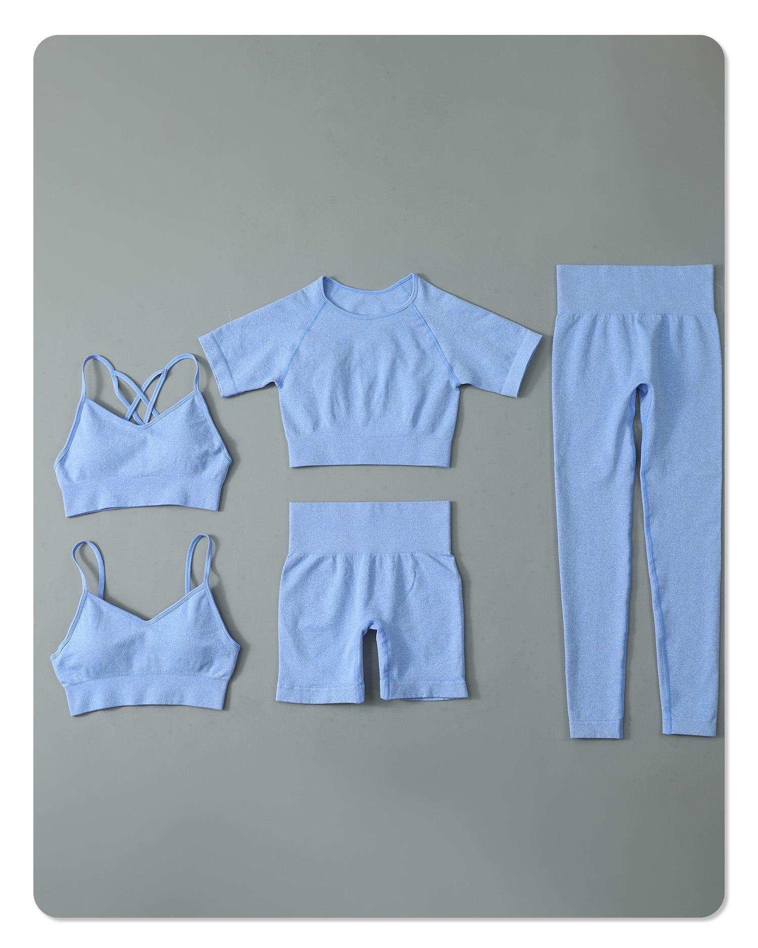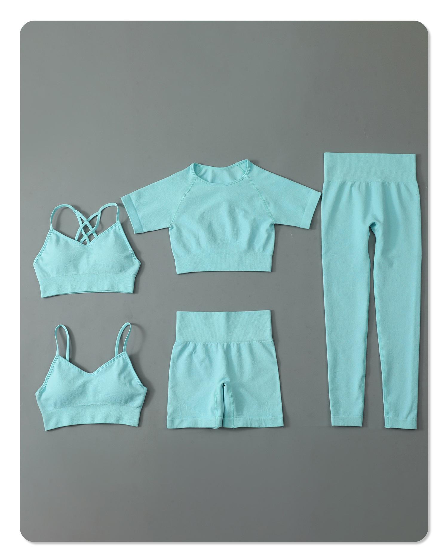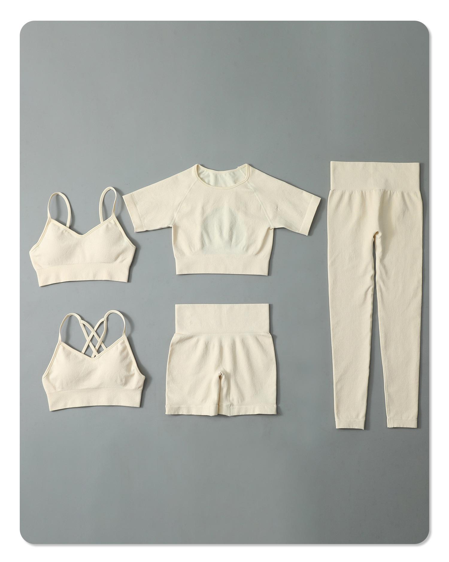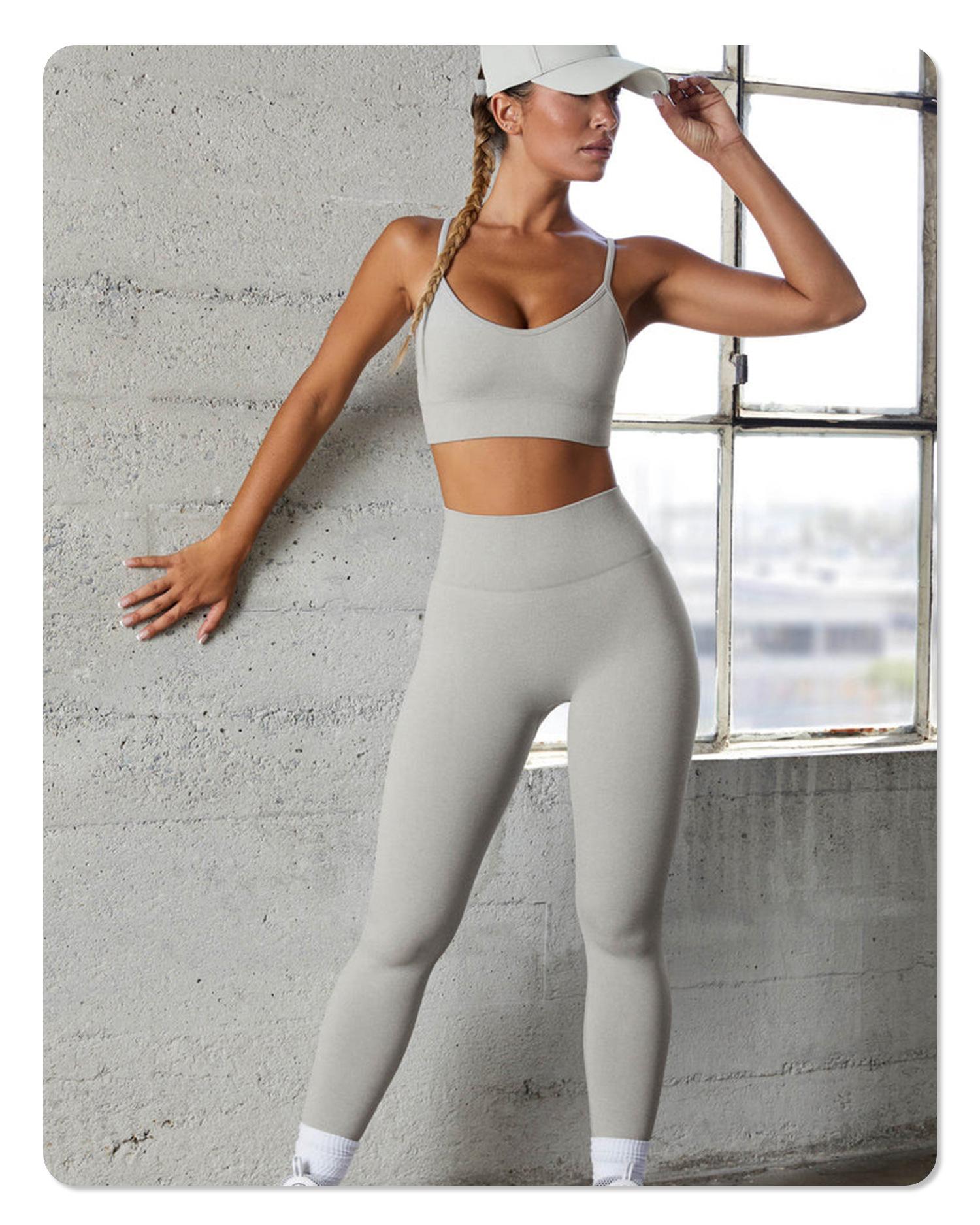 Nuevo conjunto de yoga sin costuras para mujer, con sujetador deportivo cruzado y cintura alta, pantalones de fitness que levantan la cadera.