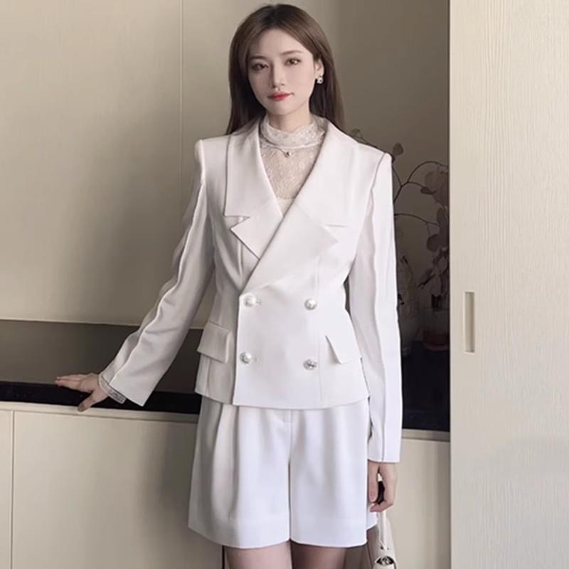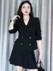 Moda Nueva para Mujer 2024 Otoño e Invierno Commuter Cruzado Ajustado con Cintura Blazer Top para Mujer