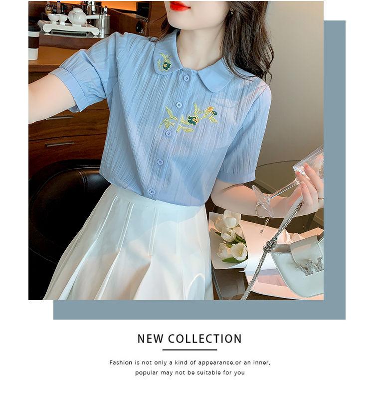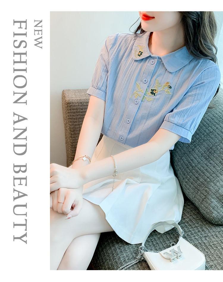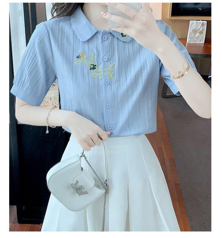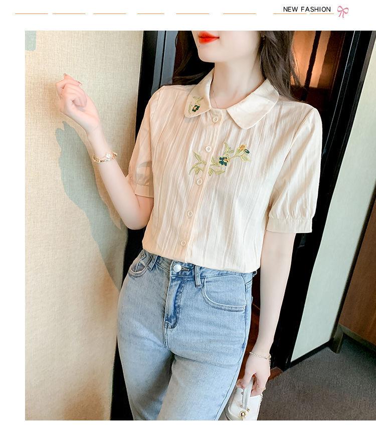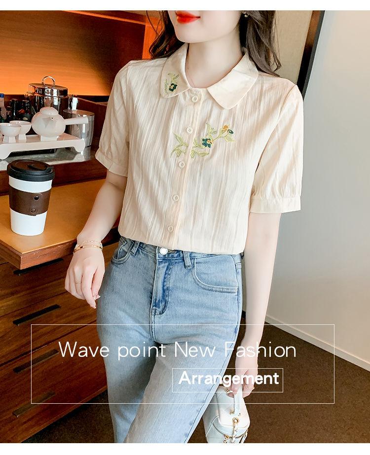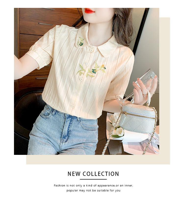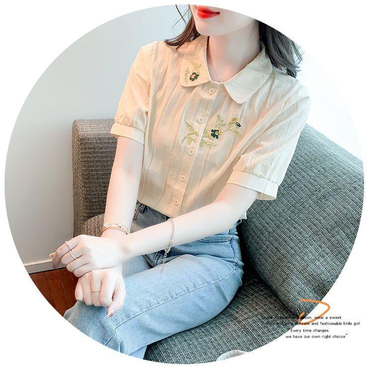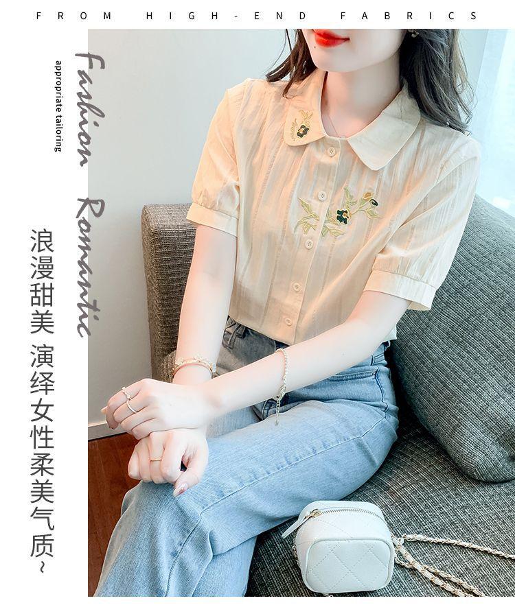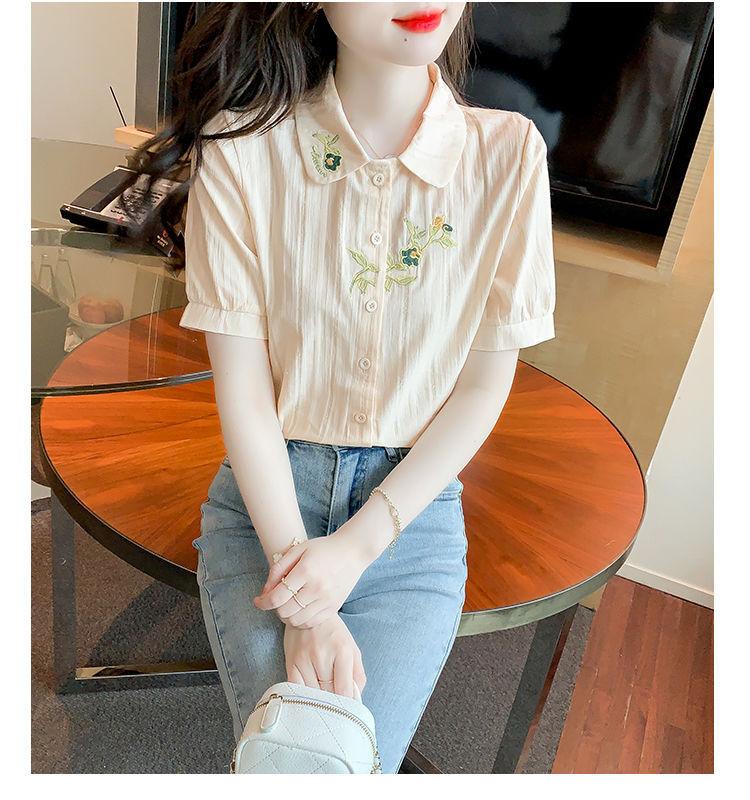 Verano 2024 Nueva camisa de algodón fino Camisa de mujer de estilo occidental de algodón de manga corta elegante camisa de mujer top bordada