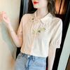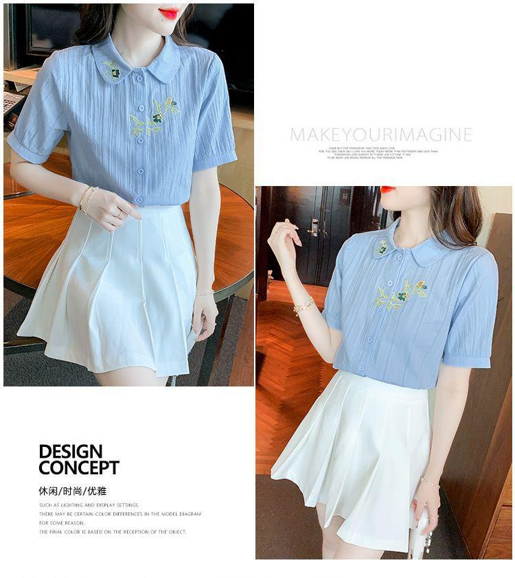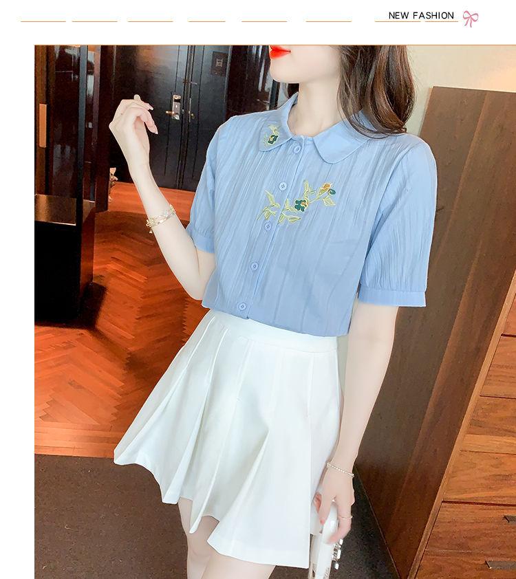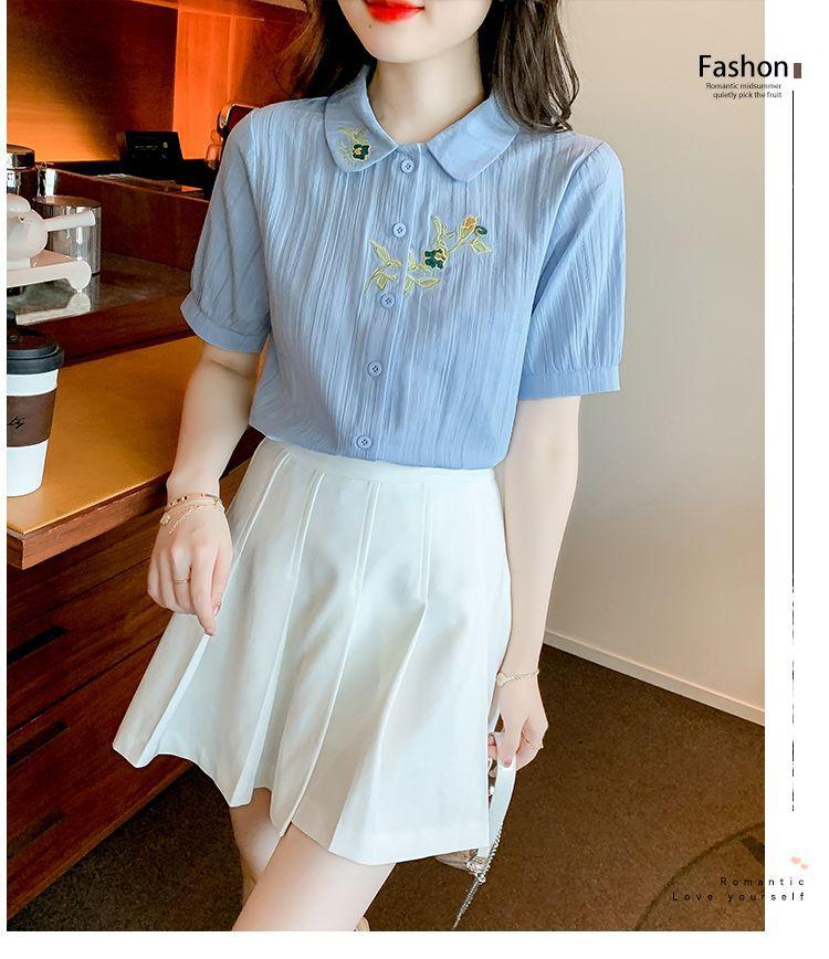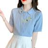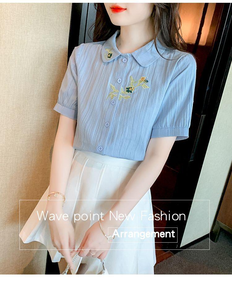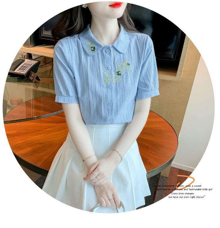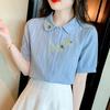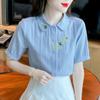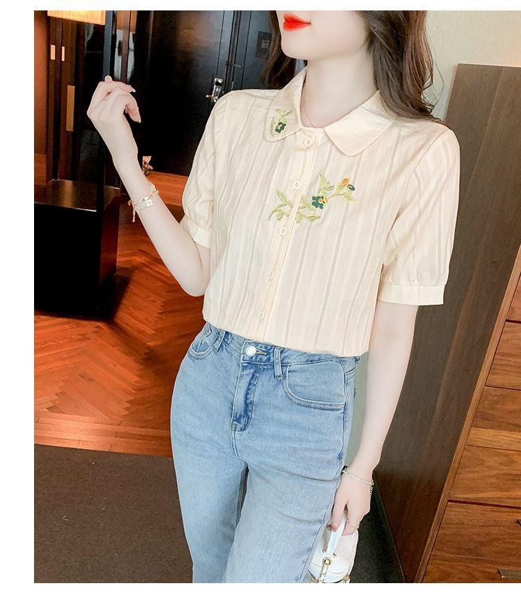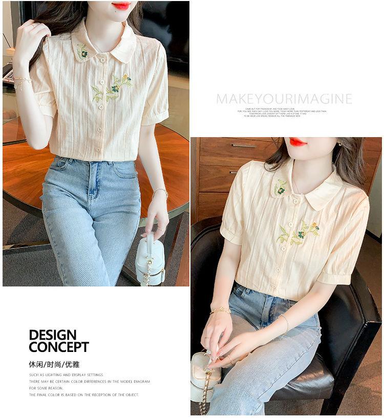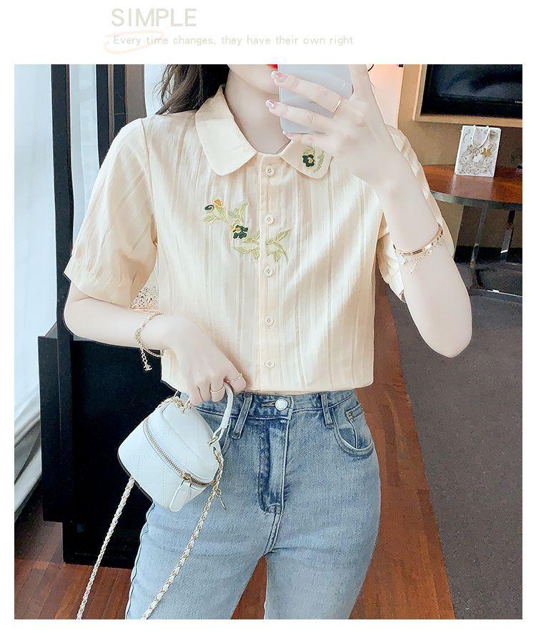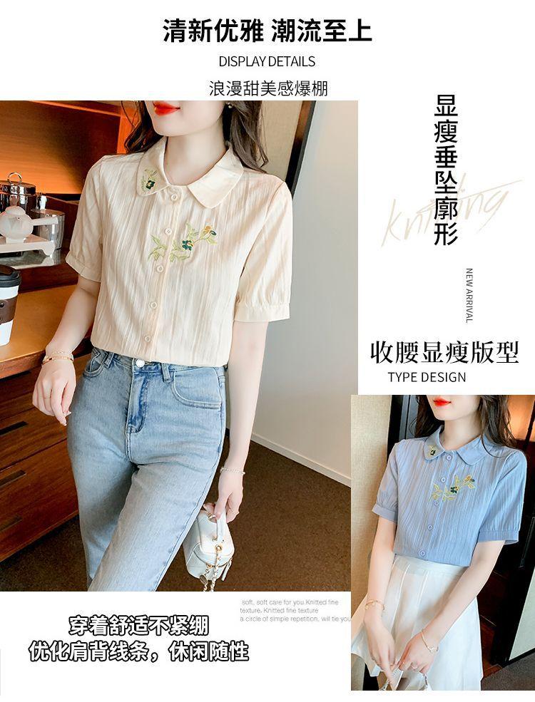 Verano 2024 Nueva camisa de algodón fino Camisa de mujer de estilo occidental de algodón de manga corta elegante camisa de mujer top bordada