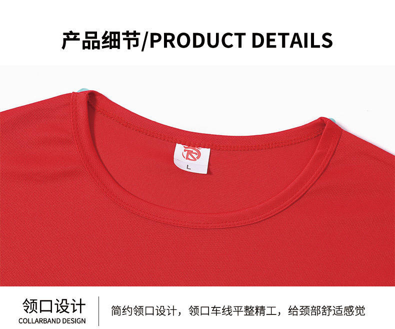092SJLDF Camiseta de cuello redondo de manga corta de secado rápido, ropa de trabajo para grupos, ropa de clase, color liso, combinable, informal, con estampado de logotipo.