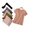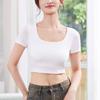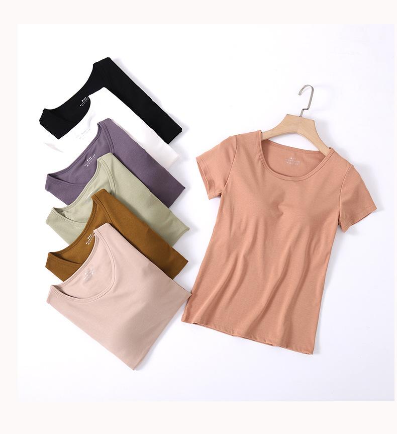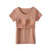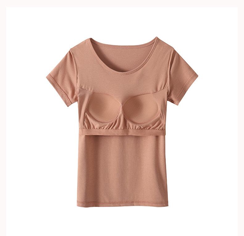 Nueva camiseta de manga corta con almohadilla para el pecho, top plisado sin sujetador para mujer, ropa interior adelgazante, camiseta deportiva de yoga.