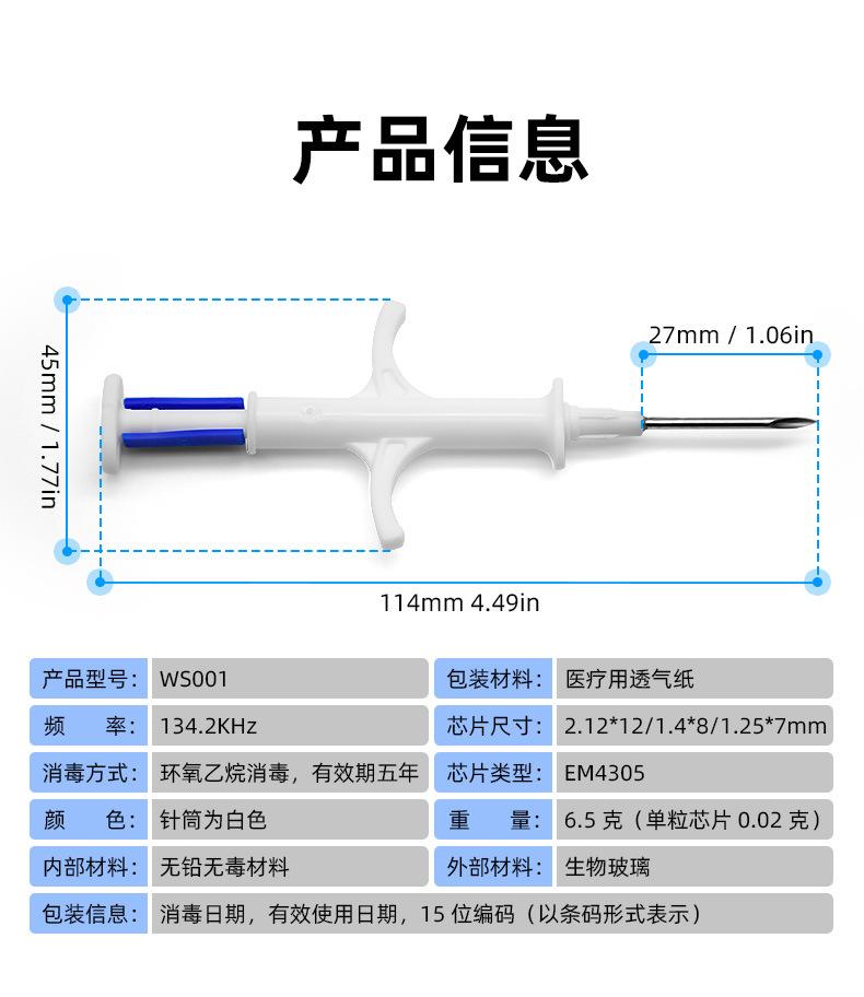 Etiqueta electrónica RFID implantable para animales, con chip para mascotas, gatos, perros y jeringa de 134 KHz