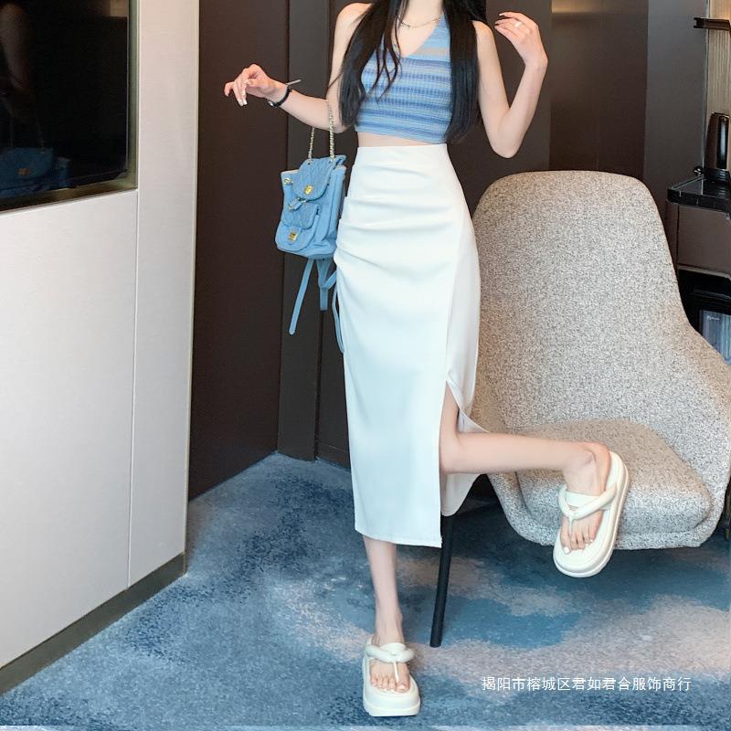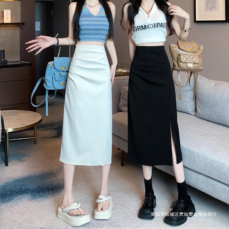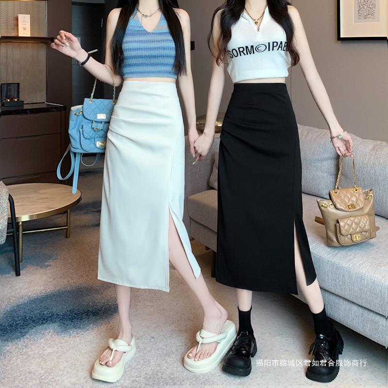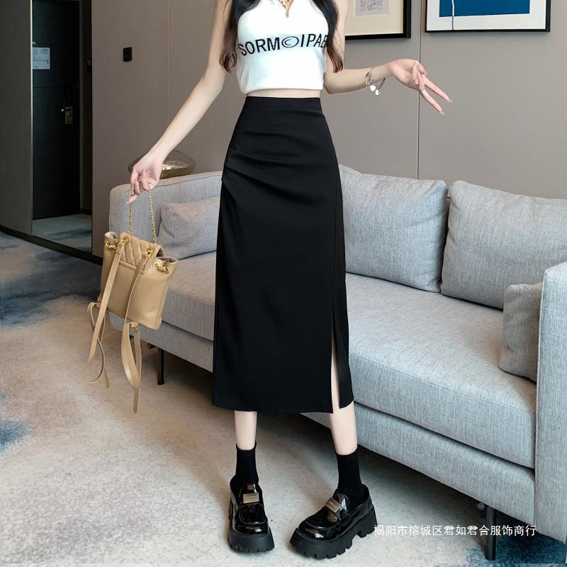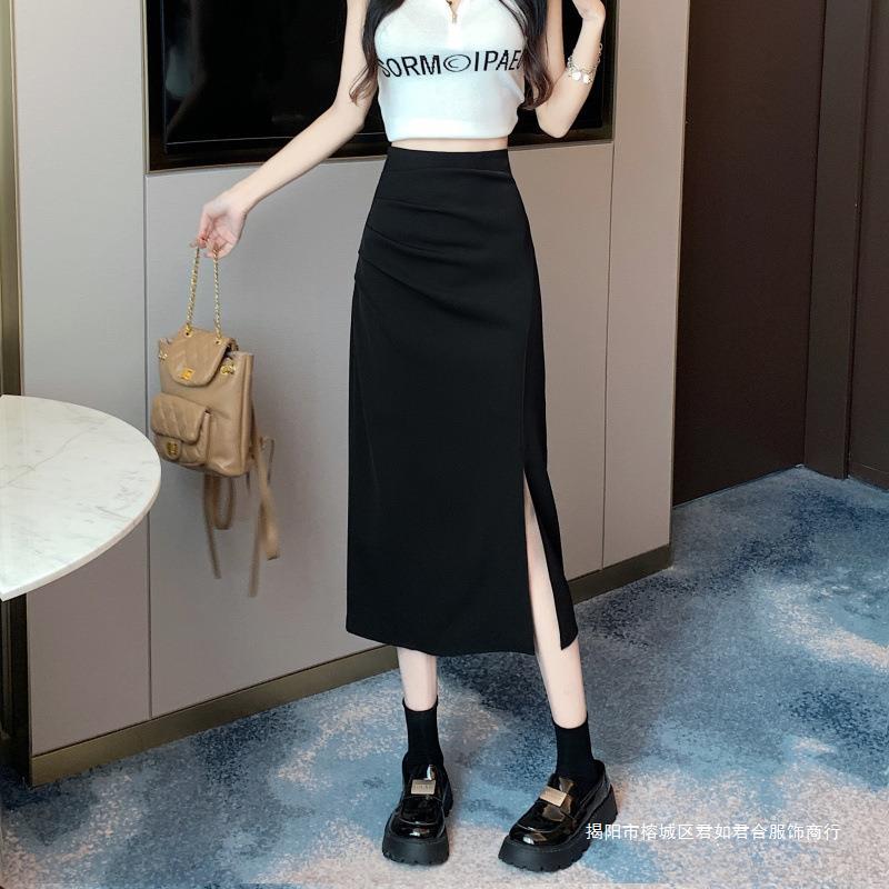 Falda dividida para mujer, otoño de principios de 2024, nueva falda adelgazante de cintura alta, falda de corte A de longitud media, falda de un solo paso
